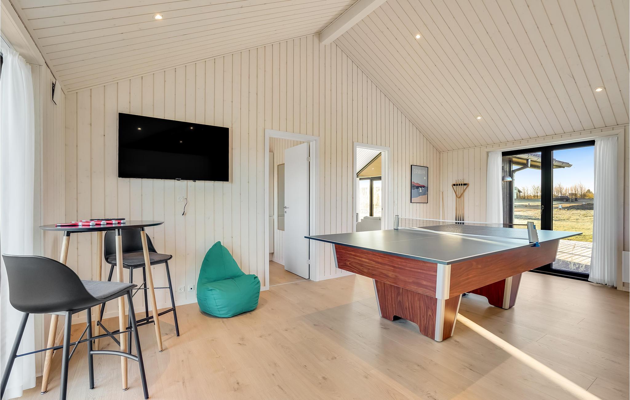 Die hellen, wohnlich möblierten Räume bilden den idealen Rahmen für eine schöne gemeinsame Zeit. Entspannen Sie nach einem erlebnisreichen Tag in gemütlichem Ambiente auf dem großzügigen Sofa, bringen Sie nach dem Essen den Kreislauf bei einer Partie Tischtennis wieder in Schwung, oder schauen Sie zusammen einen Film an. Genießen Sie nach einem langen Strandspaziergang die wohltuende Wärme in der hauseigenen Sauna.
