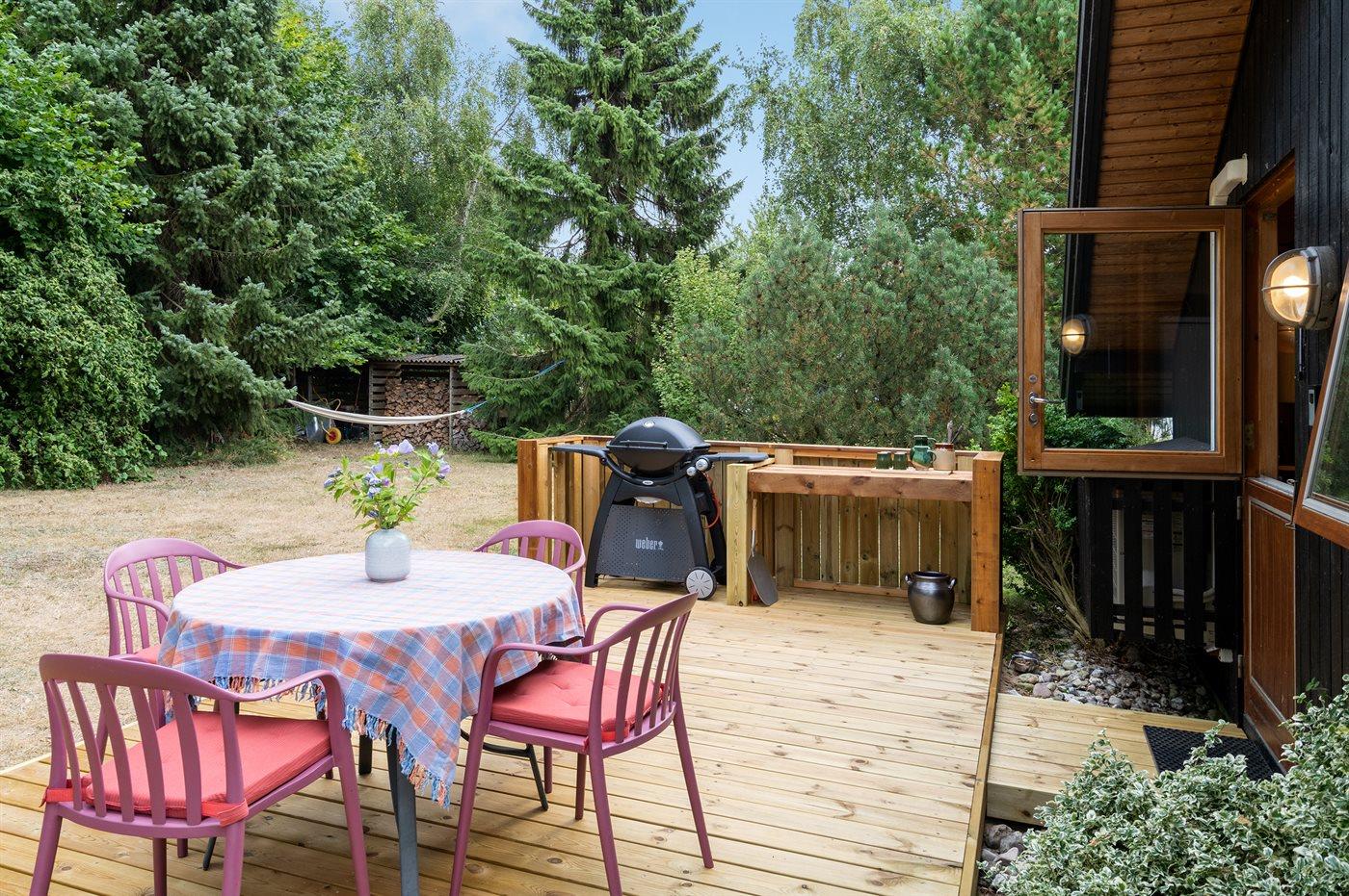 Die Ferienunterkunft liegt auf einem 1200 m² großen Naturgrundstück. Die Entfernung zum Meer beträgt 200 m. Die nächste Einkaufsmöglichkeit liegt 2000 m entfernt. Es steht ein 25 m² Terrassenareal zur Verfügung. Außerdem gibt es 9 m² überdachte Terrasse. Schaukel. Kinderspielhaus. Es steht ein Grill zur Verfügung. Es ist ein Ladestecker für Elektroautos installiert. Ladestecker Typ 2. Parkplatz auf dem Grundstück.
