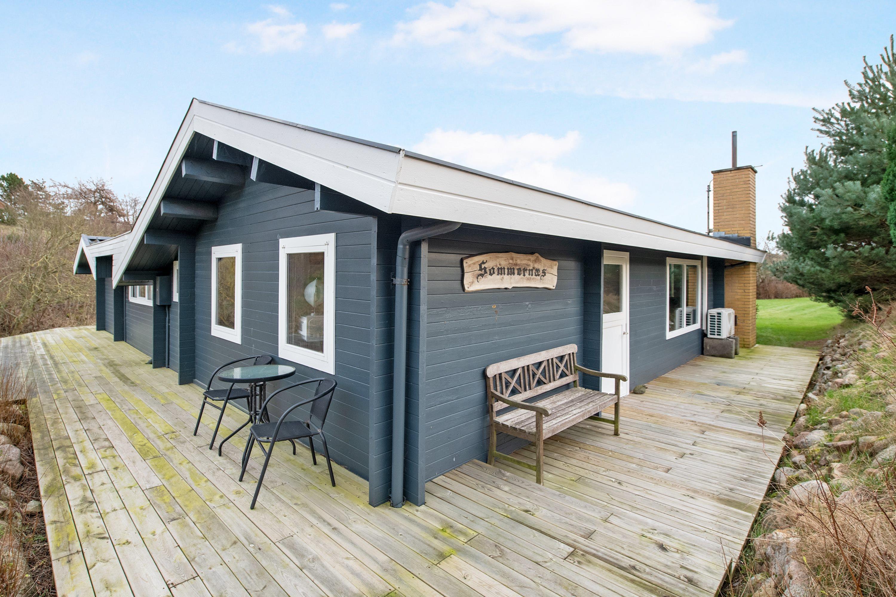 Charmantes Blockhaus auf Helgenæs in Dänemark, 500 m vom Strand, mit großer Terrasse und Naturgrundstück.