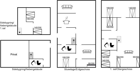 Die Schlafplätze verteilen sich auf 6 Schlafräume. 16 Schlafplätze in Doppelbetten. 2 Schlafplätze in einem Etagenbett. Ferner steht ein Kinderbett zur Verfügung.