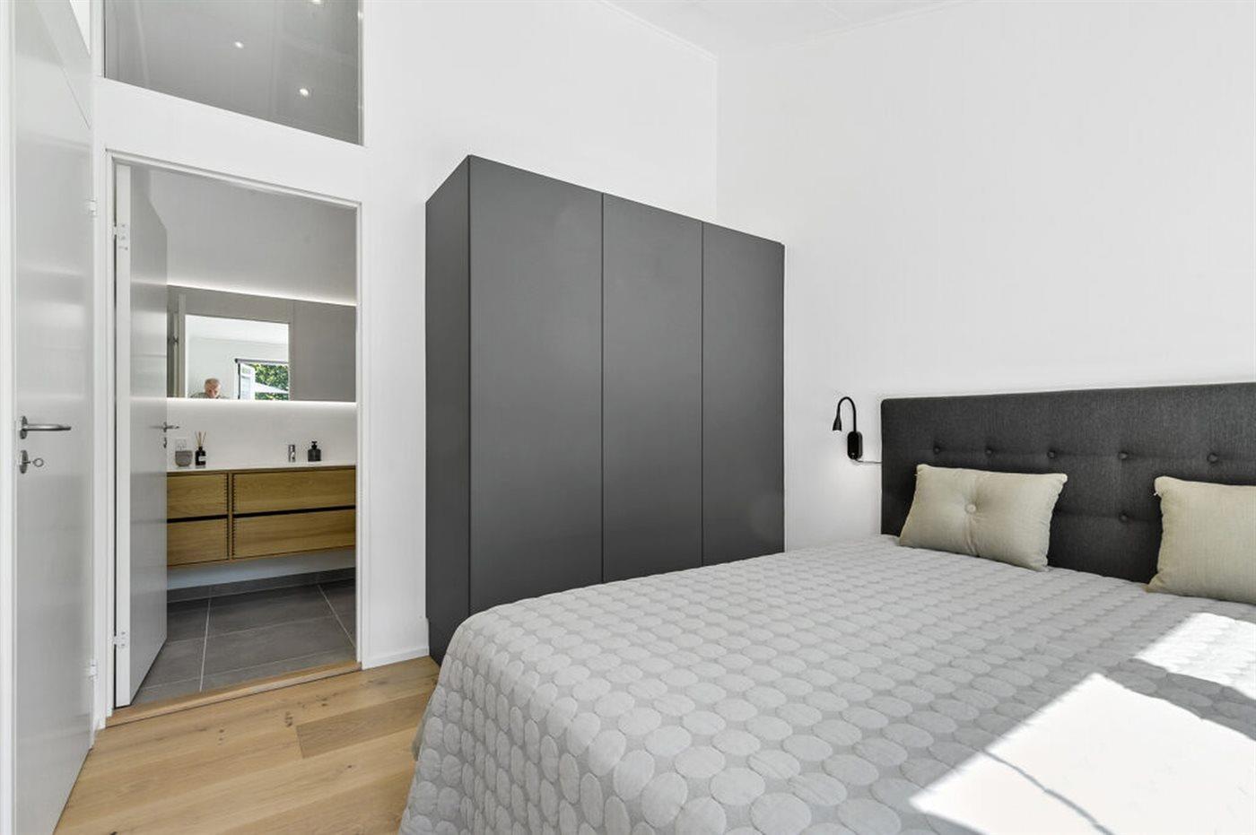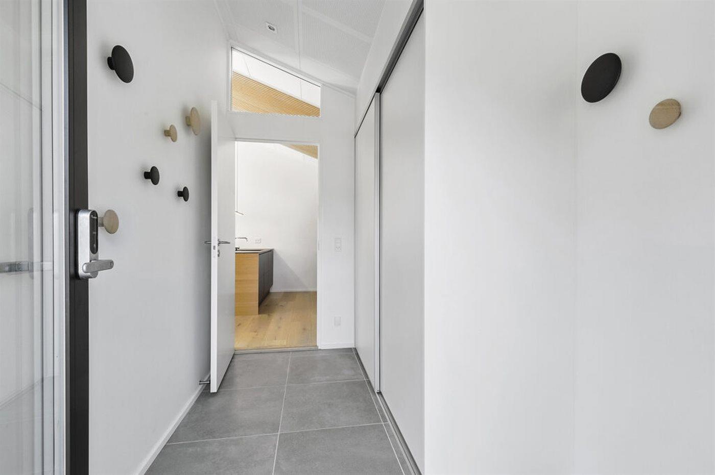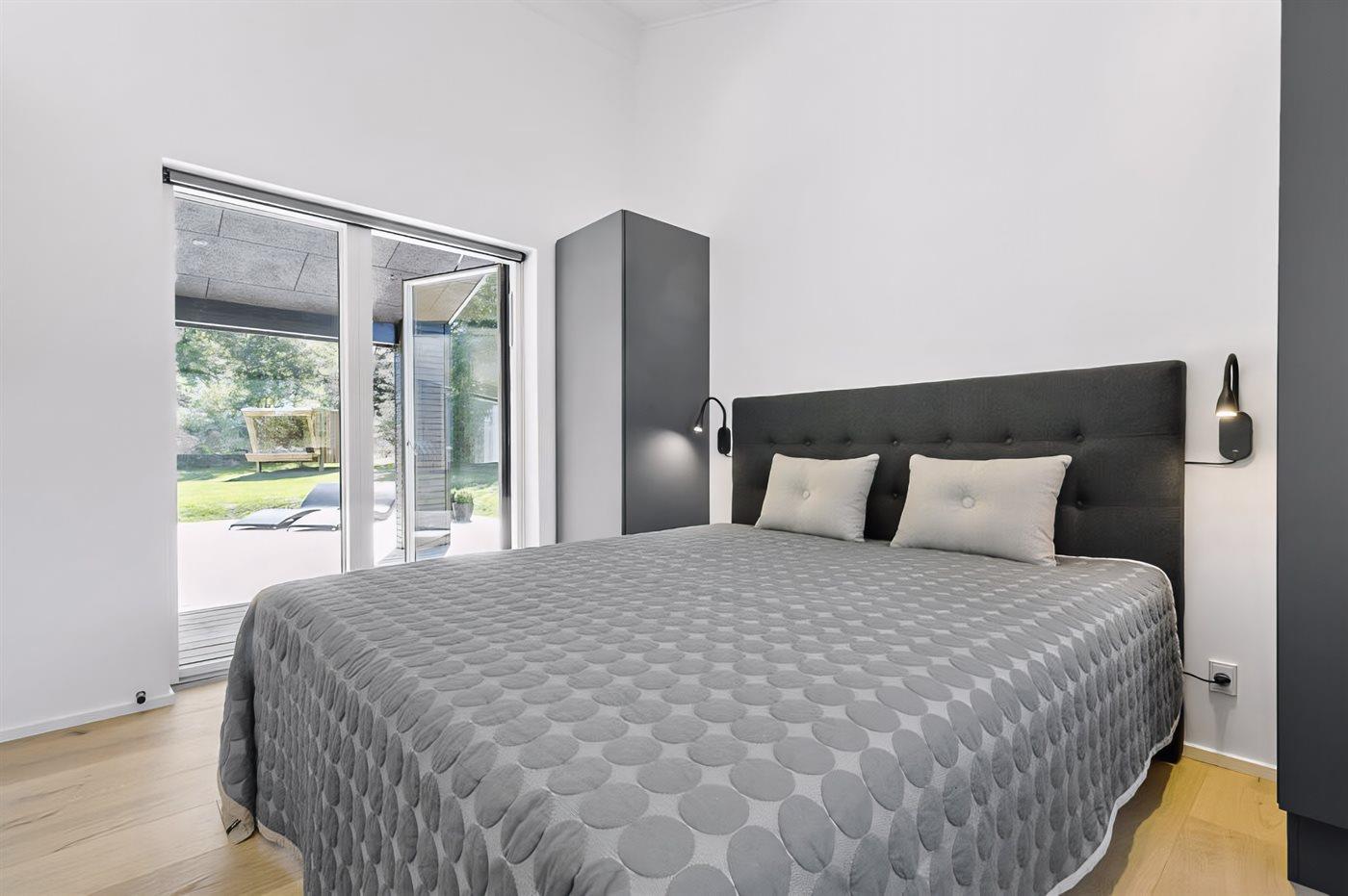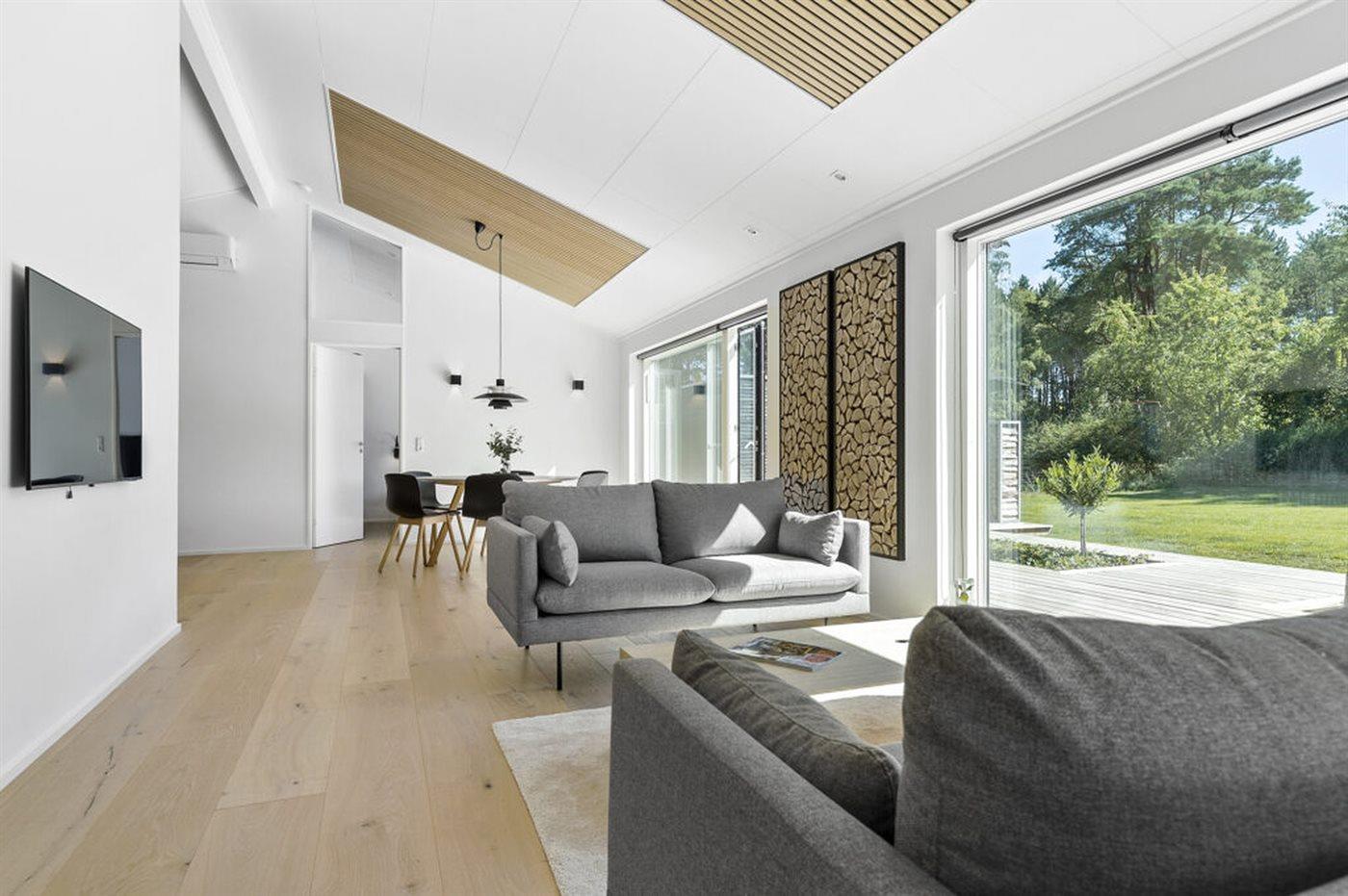 Vom Wohnbereich aus hast du Zugang zur großzügigen Terrasse, auf der sich die Urlaubstage ganz selbstverständlich nach draußen verlagern. Hier kannst du die erste Kaffee am Morgen genießen, während der Blick über die Landschaft bis hin zum Meer in der Bucht ”Aarhus Bugt” schweift.