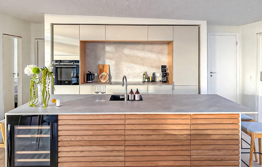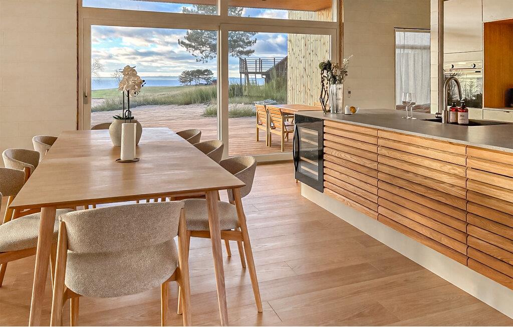 Ihr Ferienhaus liegt auf der charmanten Halbinsel Helgenæs mit Blick auf die Aarhus-Bucht und die Insel Samsø. Es ist hell und modern im skandinavischen Stil eingerichtet und bietet viel Platz für Entspannung. Die stilvolle, gut ausgestattete Küche geht in einen großzügigen, offenen Wohnbereich über, der durch große, bodentiefe Glasflächen einen außergewöhnlichen Blick auf das Meer eröffnet.