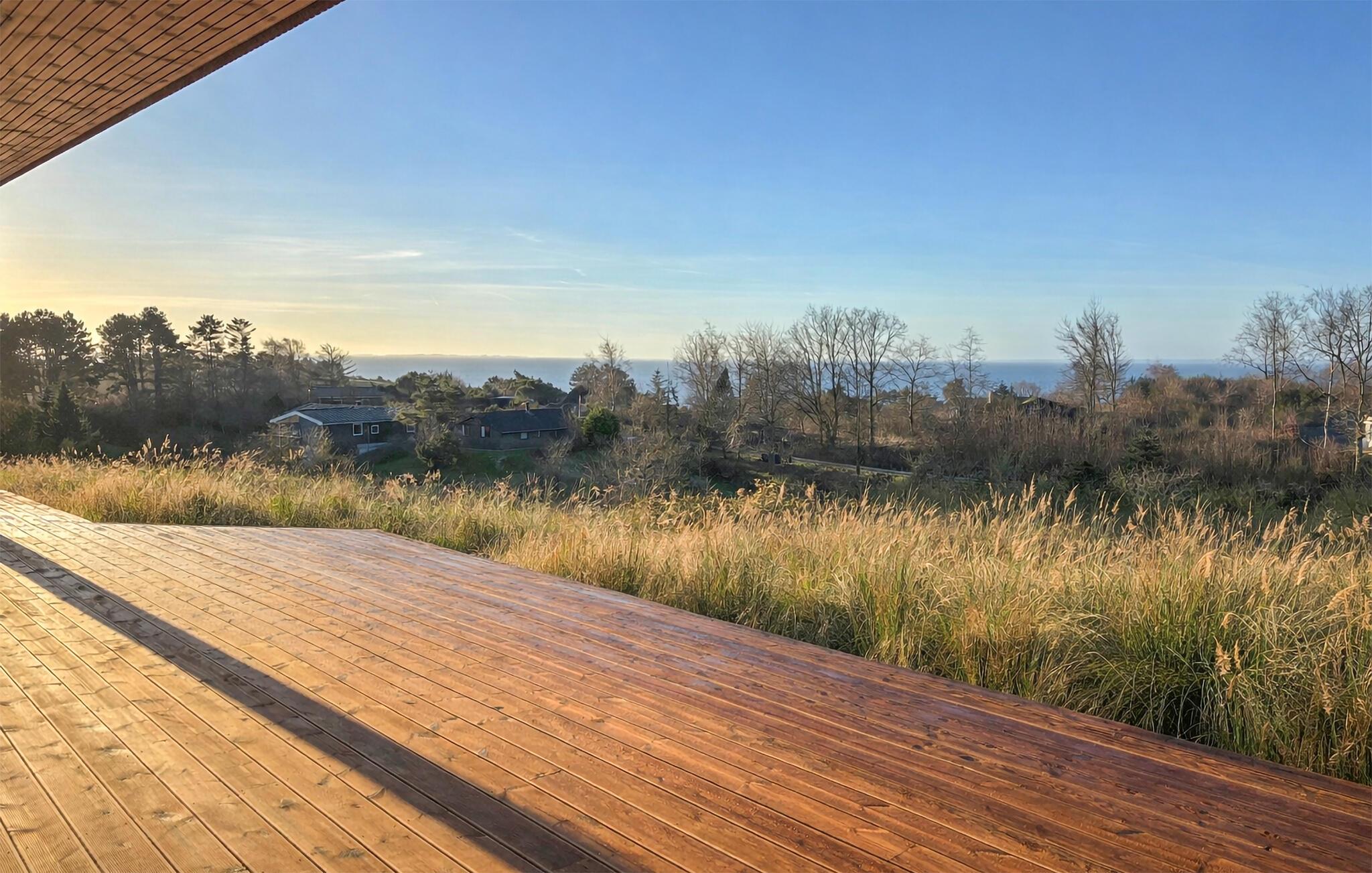 Luxuriöses Ferienhaus auf Helgenæs mit Meerblick, Whirlpool, Sauna und großer Terrasse für entspannte Urlaubstage.