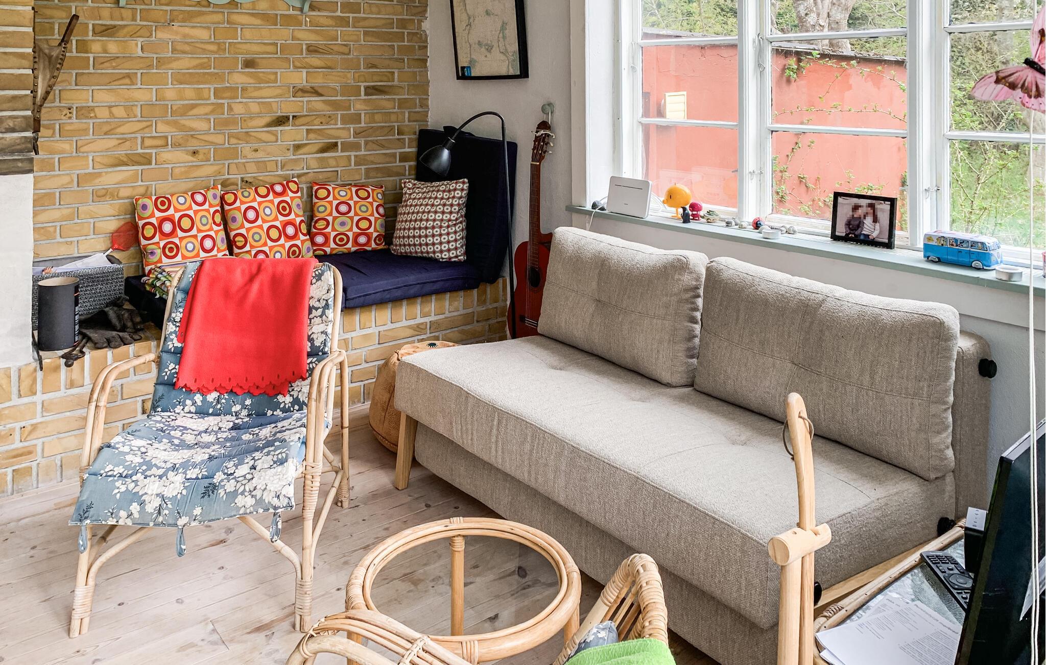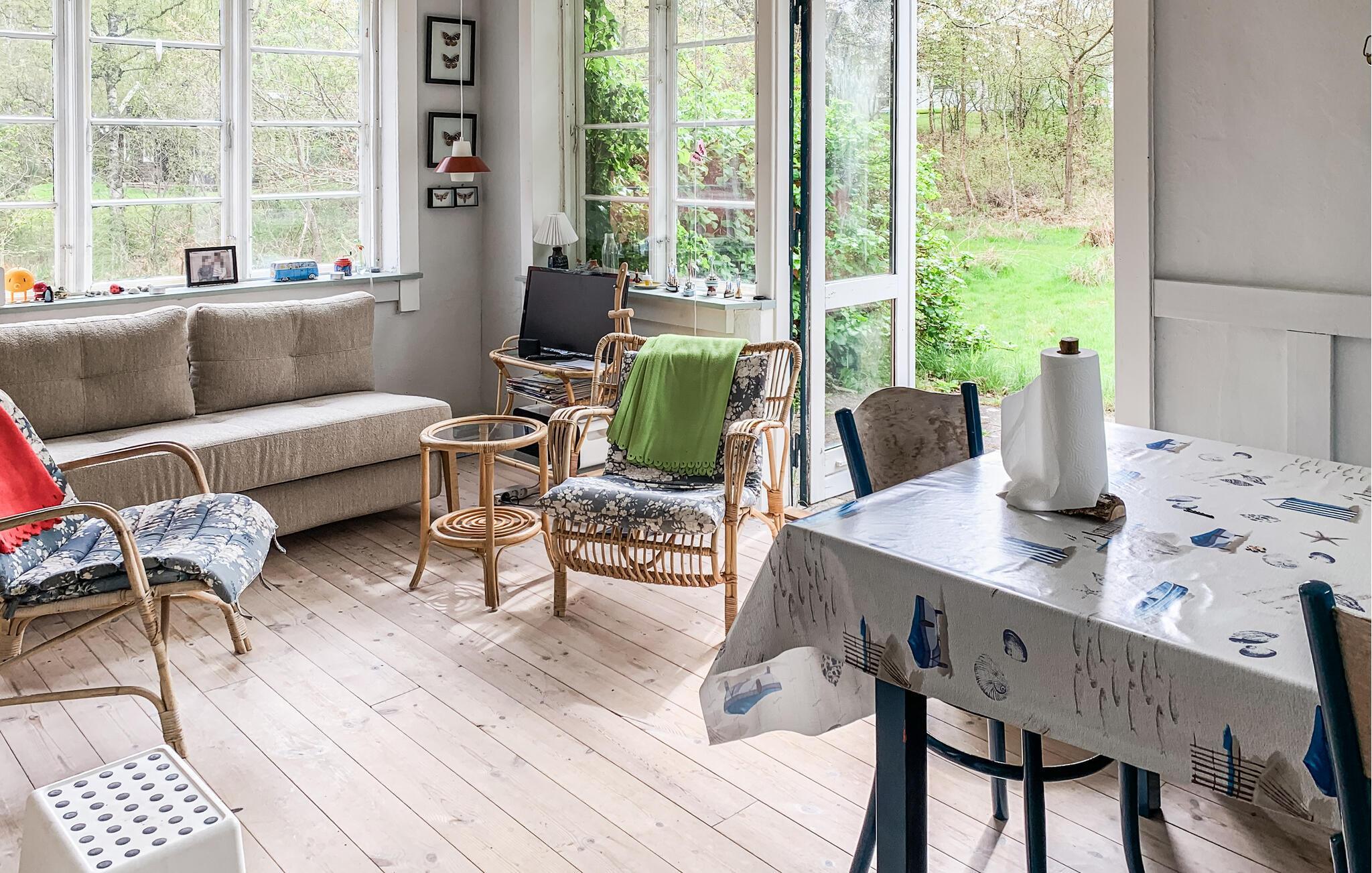 Charmantes Ferienhaus an der Küste von Helgenæs mit Kamin, Terrasse und großem Garten für entspannte Urlaubstage.