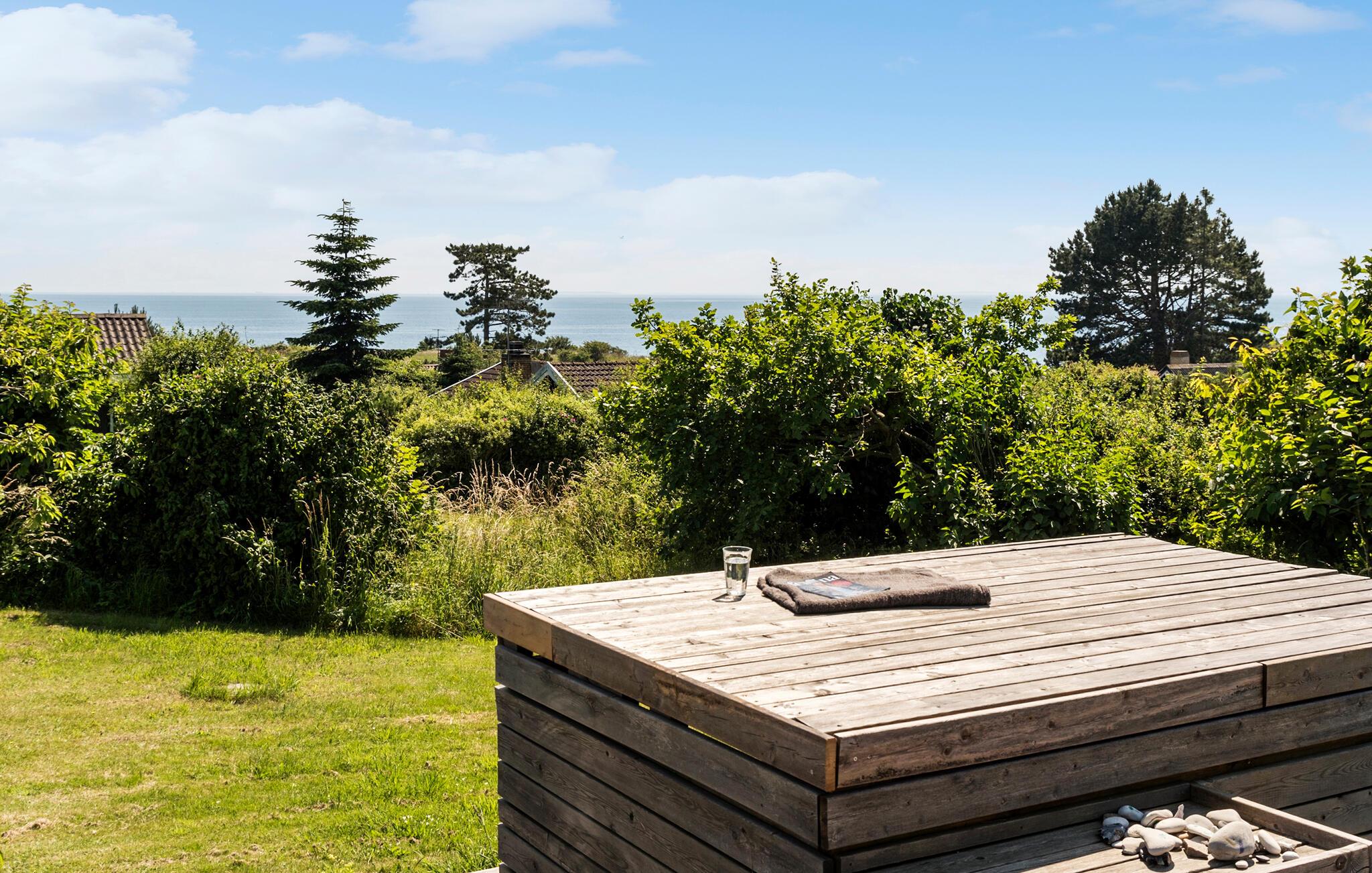 Auf der großen Terrasse, die sich auf mehreren Ebenen verteilt, können Sie die herrliche Aussicht auf die umliegende Natur und das Meer genießen und bei einem gemütlichen Grillabend den Tag ausklingen lassen. Die ruhige Lage des Hauses garantiert Ihnen Entspannung und Erholung pur.