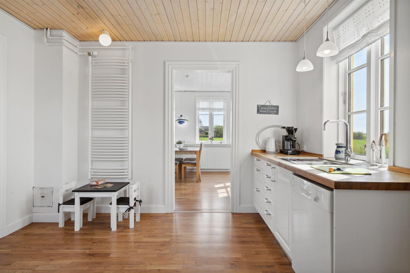 Das Haus liegt im südlichen Ende von Helnæs – in landschaftlich schöner Umgebung. Hier besteht die Möglichkeit für lange Spaziergänge der Küste entlang oder im nahe gelegenen Natura2000-Gebiet ”Maden”, das nur 500 m vom Haus entfernt liegt.
