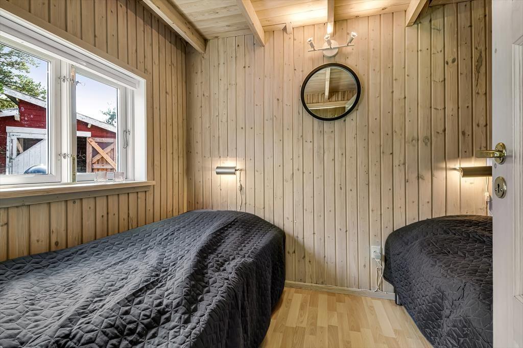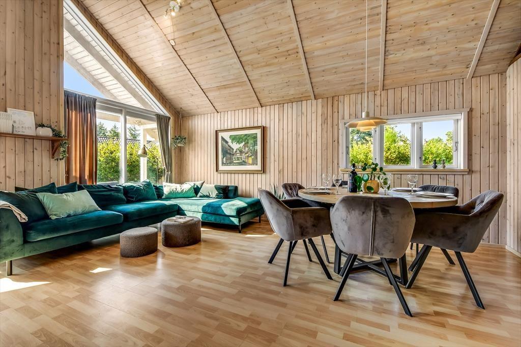 Hinter der rot gestrichenen Holzfassade erwarten dich helle und einladende Räumlichkeiten. Die Schlafplätze für sechs Personen verteilen sich auf drei ansprechende Schlafräume. Vom Wohnraum aus gelangst du über eine Leiter hinauf auf den offenen Schlafboden mit einer zusätzlichen Matratze. Garantiert werden deine Kinder den Schlafboden sehr gern zum Spielen und Kuscheln nutzen. Beim Wohnraum handelt es sich um einen attraktiven Aufenthaltsraum, in dem du dich auf komfortablen Polstersitzmöbeln im Kreise deiner Lieben in vollen Zügen entspannst. Der hübsche Tageslichteinfall und der behaglich knisternde und wärmende Kaminofen sorgen derweil für schönste Ferienhausstimmung. In der offenen Küche mit guten Arbeitsbedingen bereitest du mit Sicherheit gern eure täglichen Mahlzeiten zu.