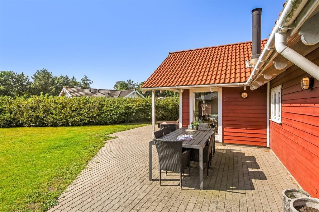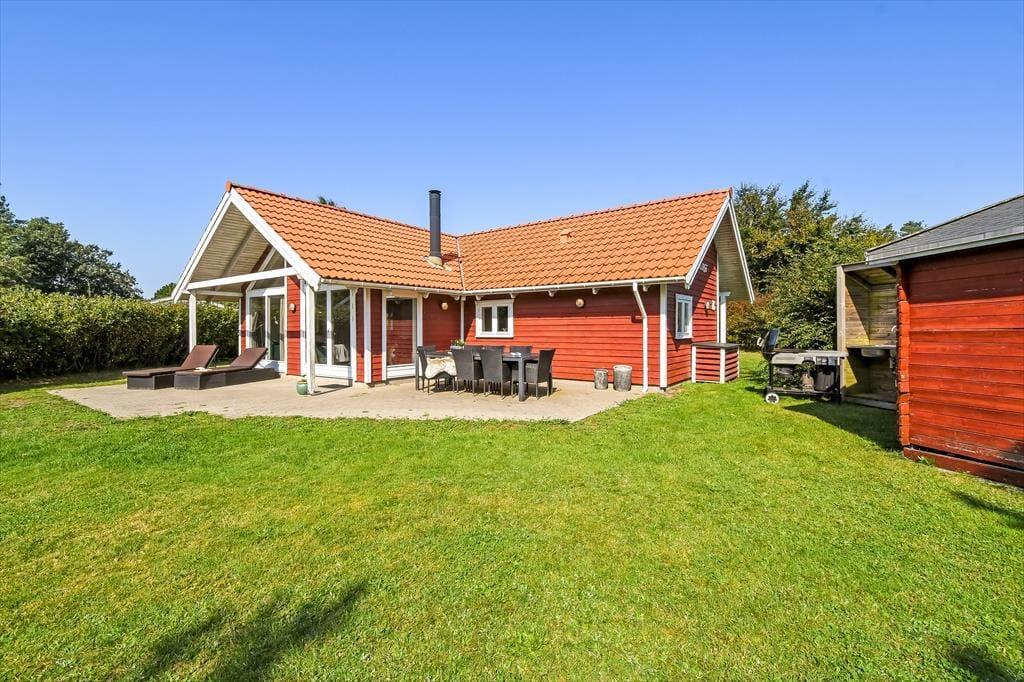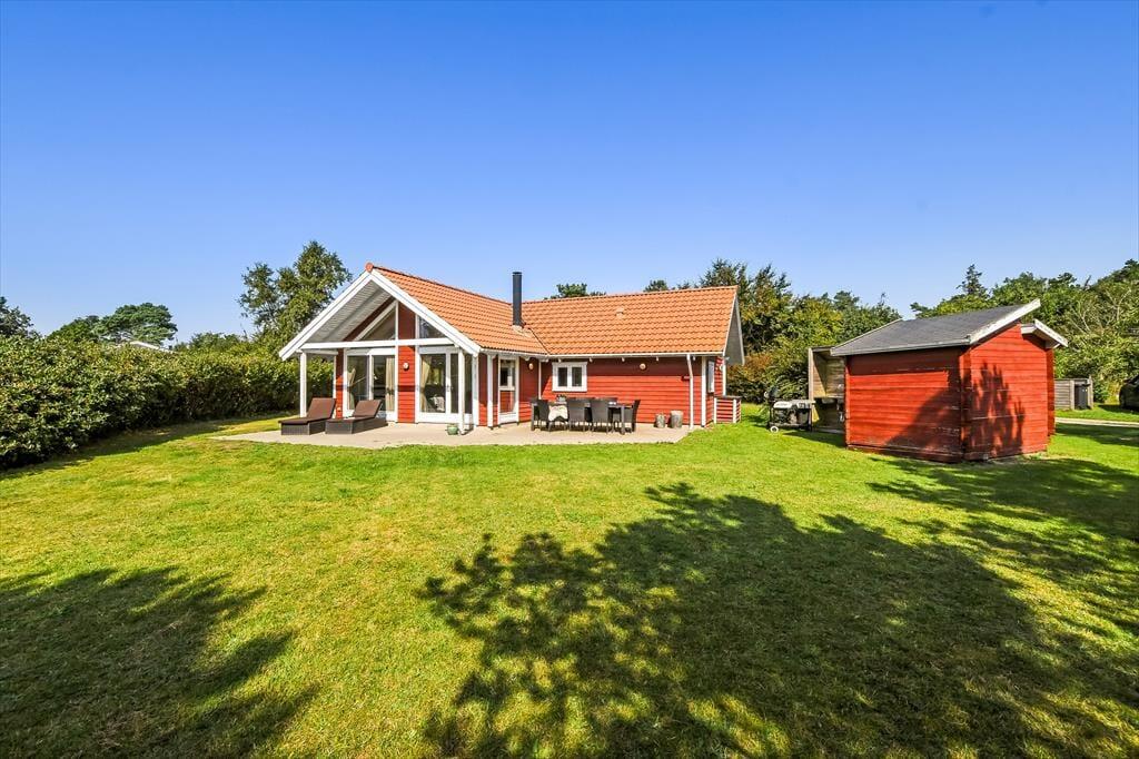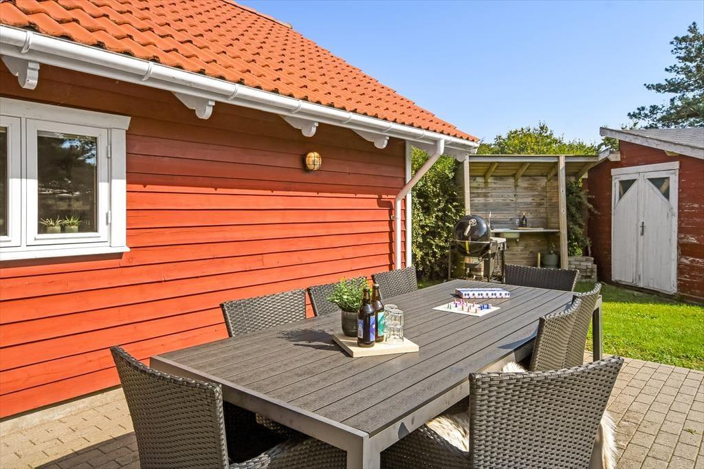 Nicht nur in der offenen Küche bereitest du köstliche Mahlzeiten zu. Unter freiem Himmel stehen dir zusätzlich eine Außenküche und ein Grill zur Verfügung, sodass nichts dagegen spricht, selber gefangenen Fisch, Salate und dergleichen im Freien zuzubereiten. Lange Urlaubsstage lässt du nach einem Abendessen vom Grill bestimmt am liebsten mit einem kühlen Getränk in der Hand auf der Terrasse ausklingen. Tagsüber lädt die Terrasse zu entspannten Stunden auf der Gartenliege ein - unterbrochen lediglich vom ein oder anderen unterhaltsamen Spiel mit den Kindern auf der Rasenfläche. Falls ihr euch ein wenig die Beine vertreten möchtet, könnt ihr zu kurzen oder längeren Erkundungstouren in die landschaftlich schöne, friedvolle Umgebung von Hemmet Strand aufbrechen.