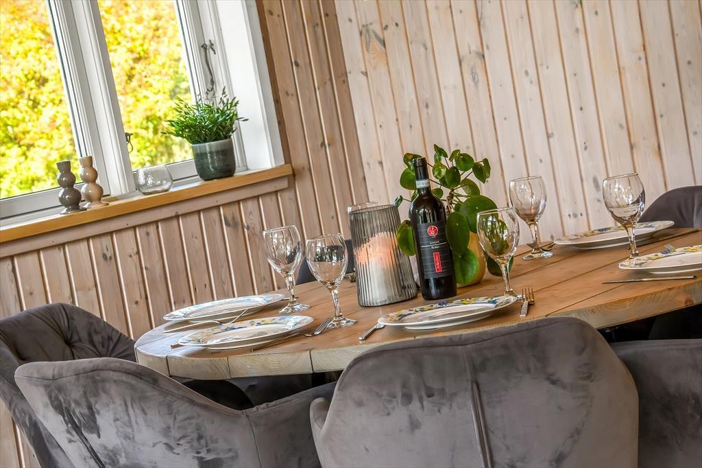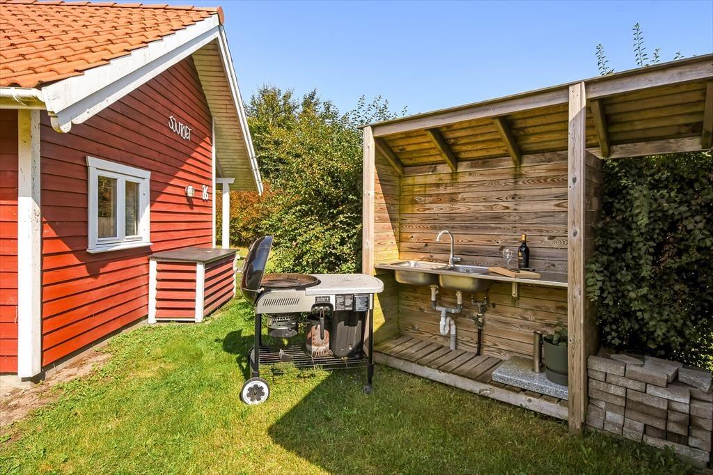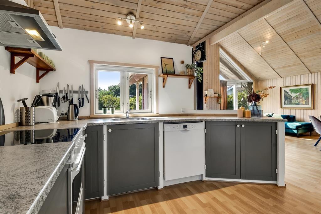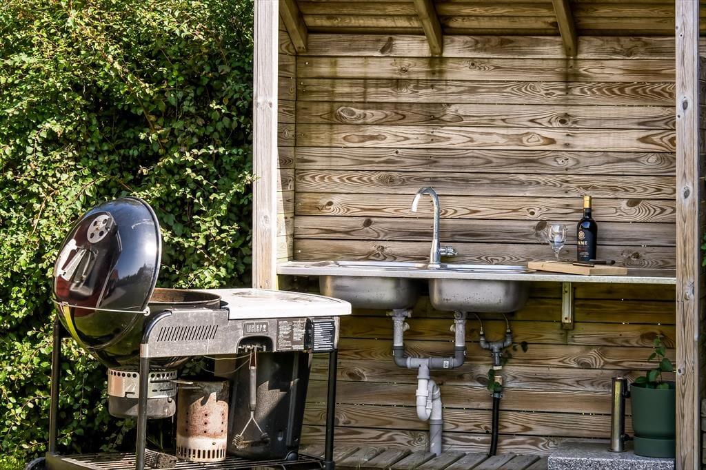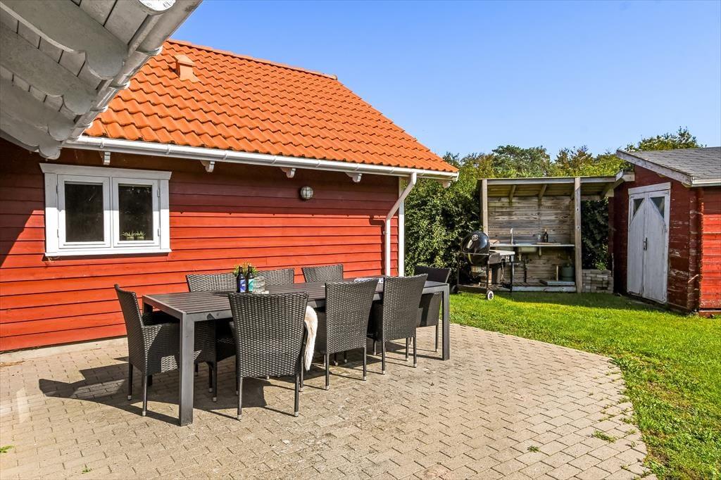 Nicht nur in der offenen Küche bereitest du köstliche Mahlzeiten zu. Unter freiem Himmel stehen dir zusätzlich eine Außenküche und ein Grill zur Verfügung, sodass nichts dagegen spricht, selber gefangenen Fisch, Salate und dergleichen im Freien zuzubereiten. Lange Urlaubsstage lässt du nach einem Abendessen vom Grill bestimmt am liebsten mit einem kühlen Getränk in der Hand auf der Terrasse ausklingen. Tagsüber lädt die Terrasse zu entspannten Stunden auf der Gartenliege ein - unterbrochen lediglich vom ein oder anderen unterhaltsamen Spiel mit den Kindern auf der Rasenfläche. Falls ihr euch ein wenig die Beine vertreten möchtet, könnt ihr zu kurzen oder längeren Erkundungstouren in die landschaftlich schöne, friedvolle Umgebung von Hemmet Strand aufbrechen.