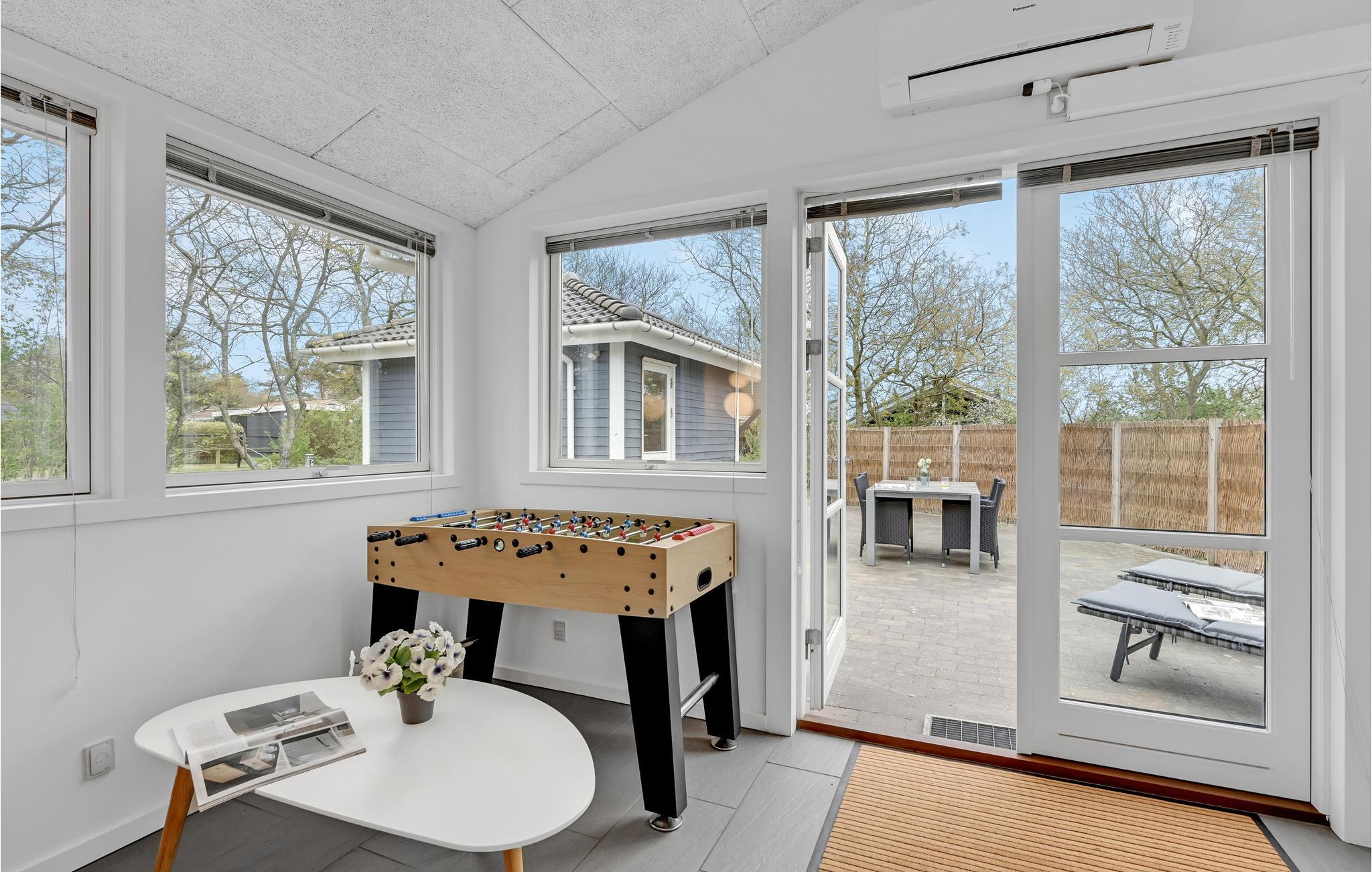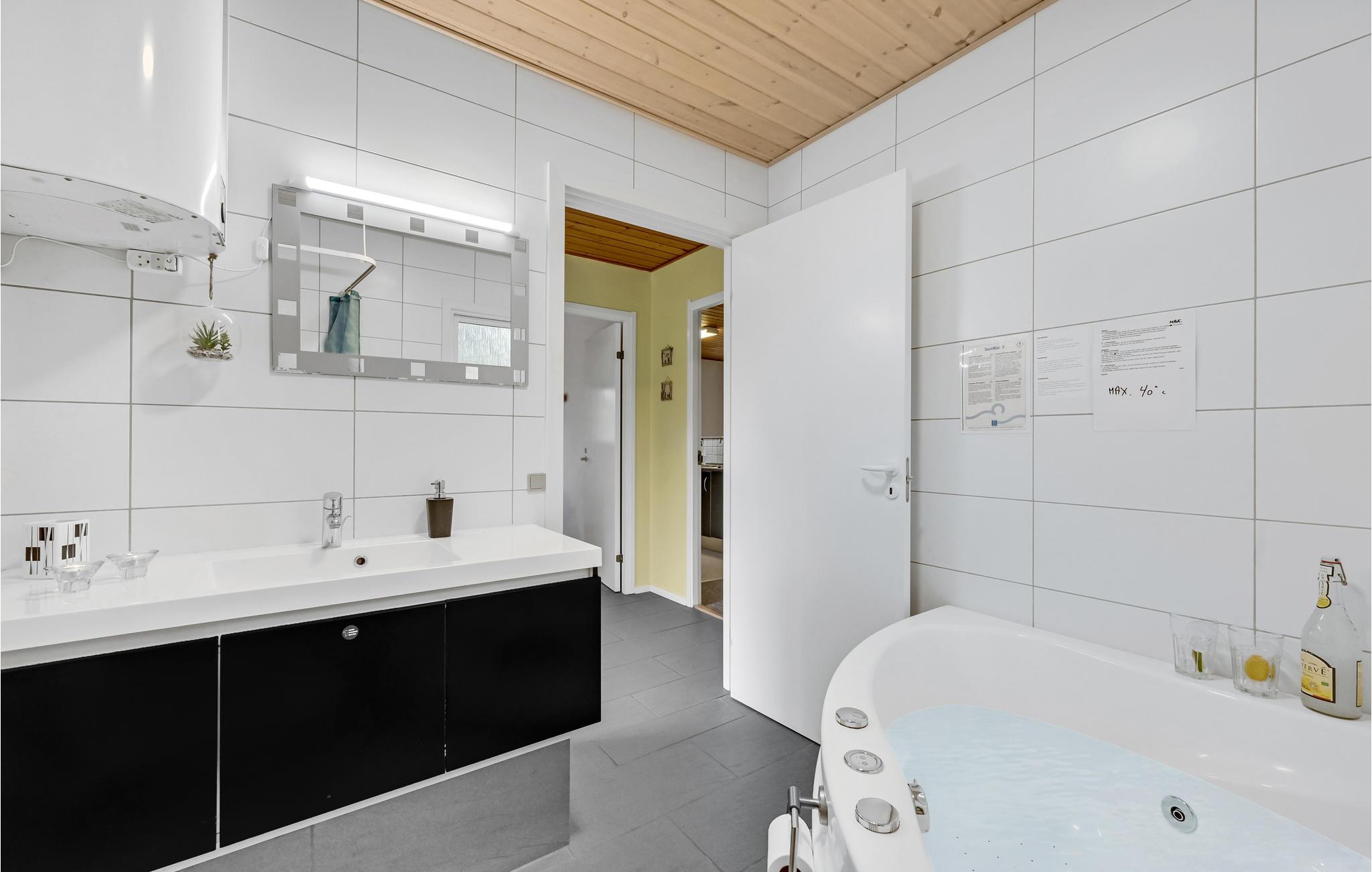 In naturschöner Umgebung, nur 300 m vom Ringkøbing Fjord mit guten Surfbedingungen und nur 1200 m von einem Angelsee entfernt, liegt dieses herrliche Ferienhaus. Das gut ausgestattete Ferienhaus verfügt u.a. über einen Whirlpool. Hier kann man viele schöne und entspannende Stunden verbringen. Genießen Sie die angenehme und gemütliche Wärme des Holzofens im Wohnzimmer, während Sie einen guten Film sehen. Die praktisch eingerichtete Küche verfügt über alle modernen Hilfsmittel und ist mit dem Esszimmer verbunden. Auch steht Ihnen steht ein Werkzeugraum zur Verfügung.