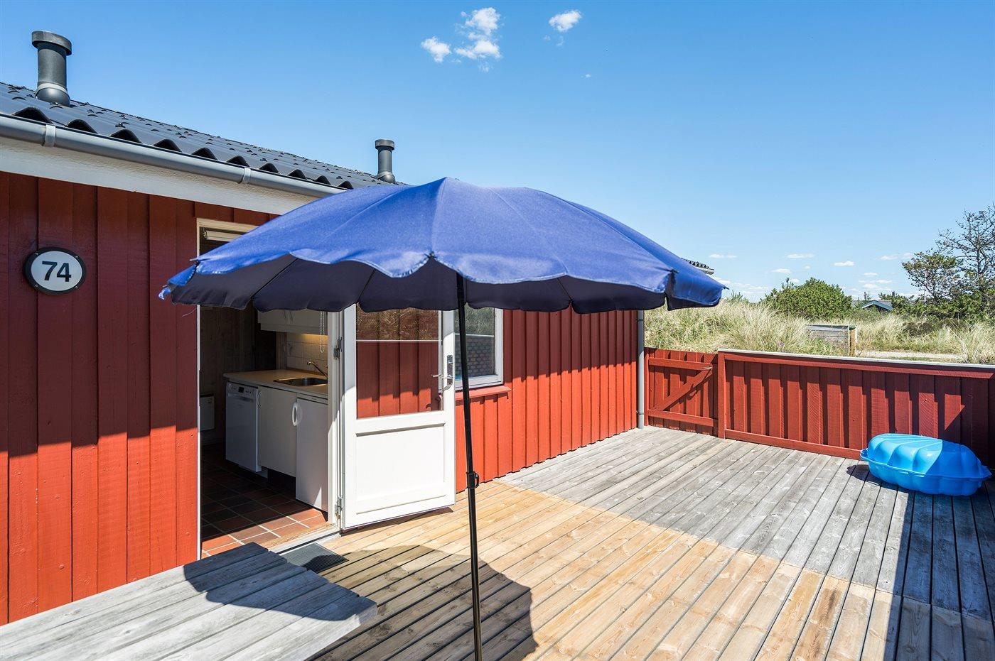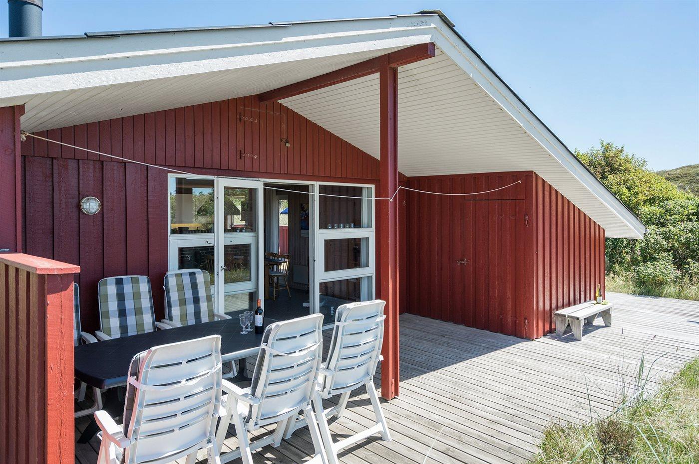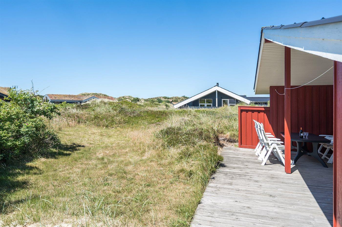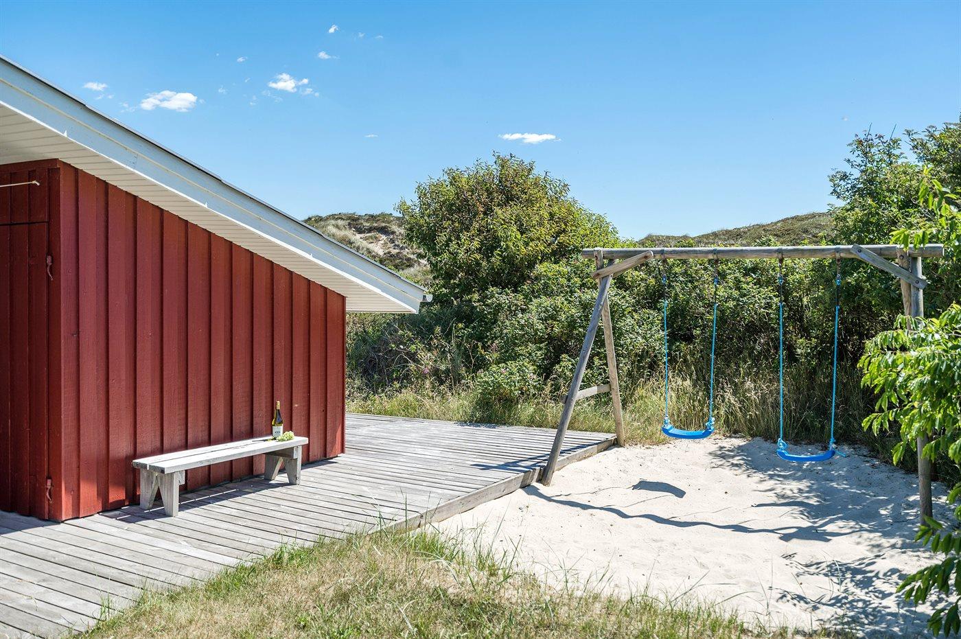 Die Ferienunterkunft liegt auf einem 1549 m² großen Dünengrundstück. Die Entfernung zum Meer beträgt 800 m. Die nächste Einkaufsmöglichkeit liegt 1800 m entfernt. Es steht ein 62 m² Terrassenareal zur Verfügung. Außerdem gibt es 15 m² überdachte Terrasse. Davon insgesamt 32 m² geschlossene Terrasse. Geräteraum. Schaukel. Sandkasten. Parkplatz auf dem Grundstück.
