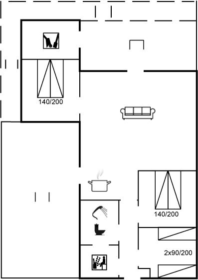 Die Schlafplätze verteilen sich auf 3 Schlafräume. 4 Schlafplätze in Doppelbetten. 2 Schlafplätze in Einzelbetten. Ferner steht ein Kinderbett zur Verfügung.