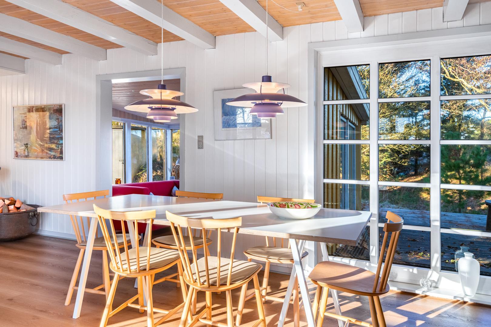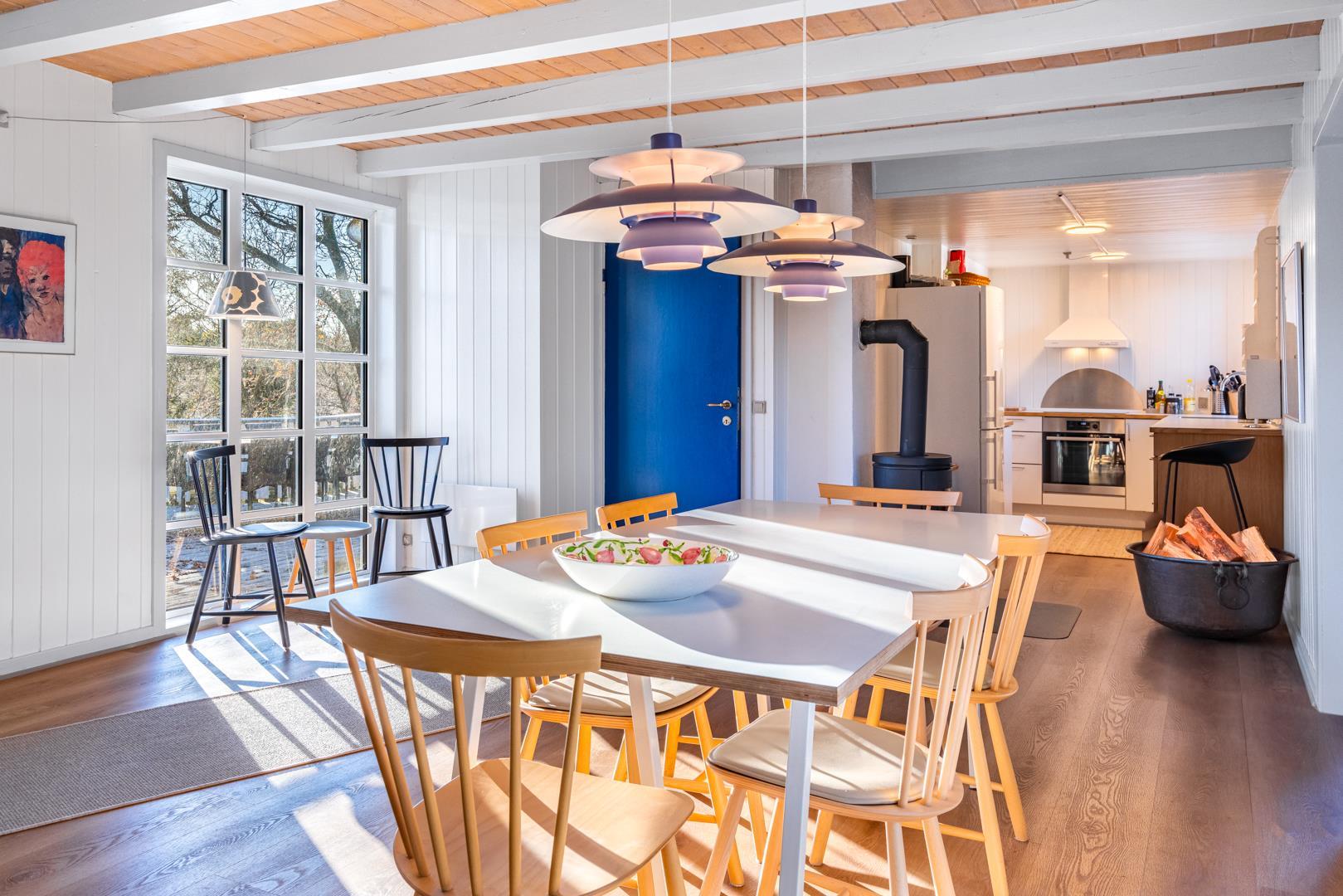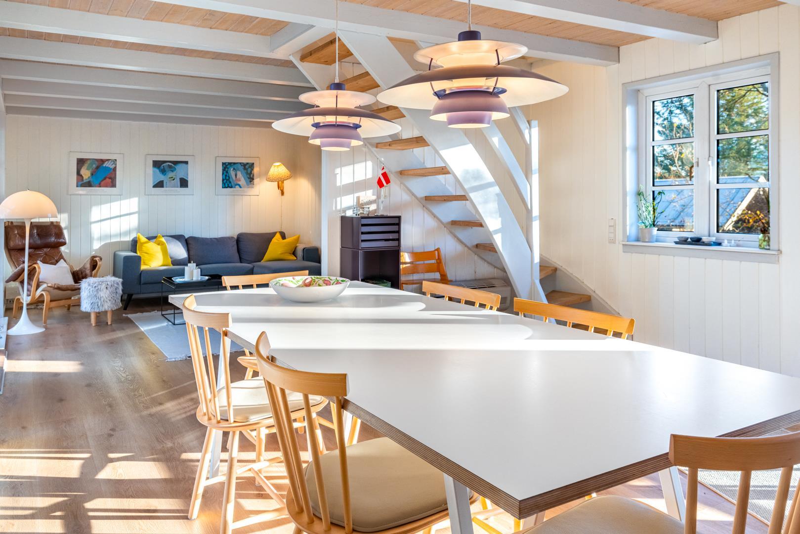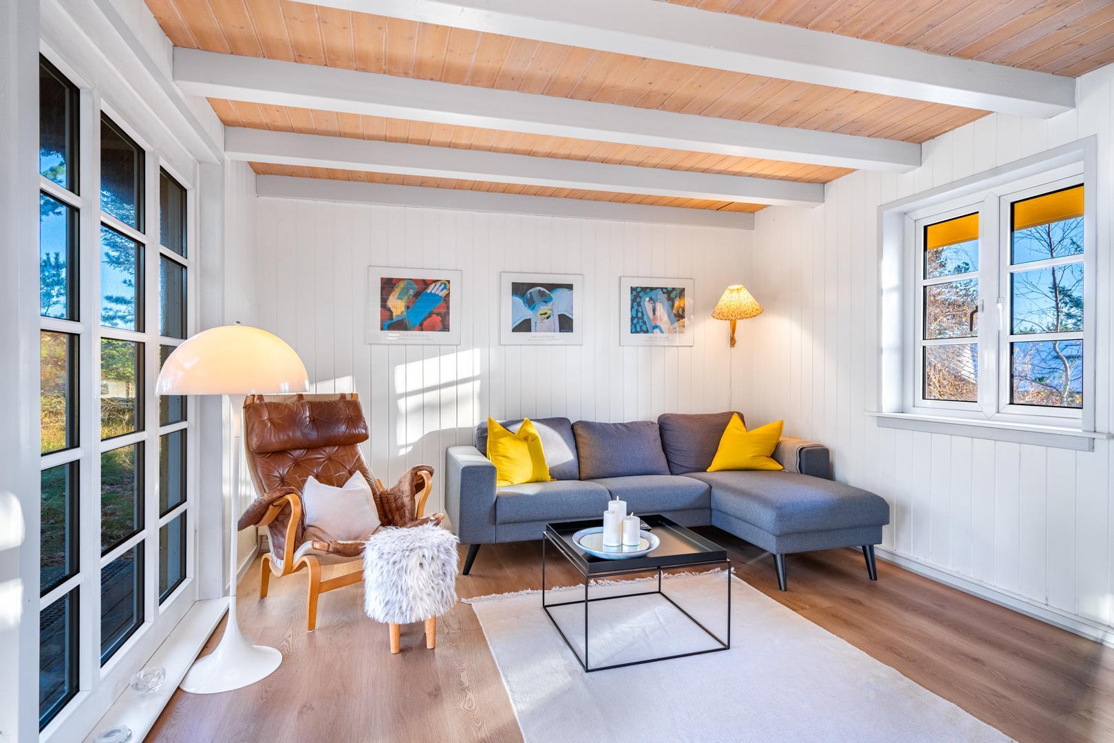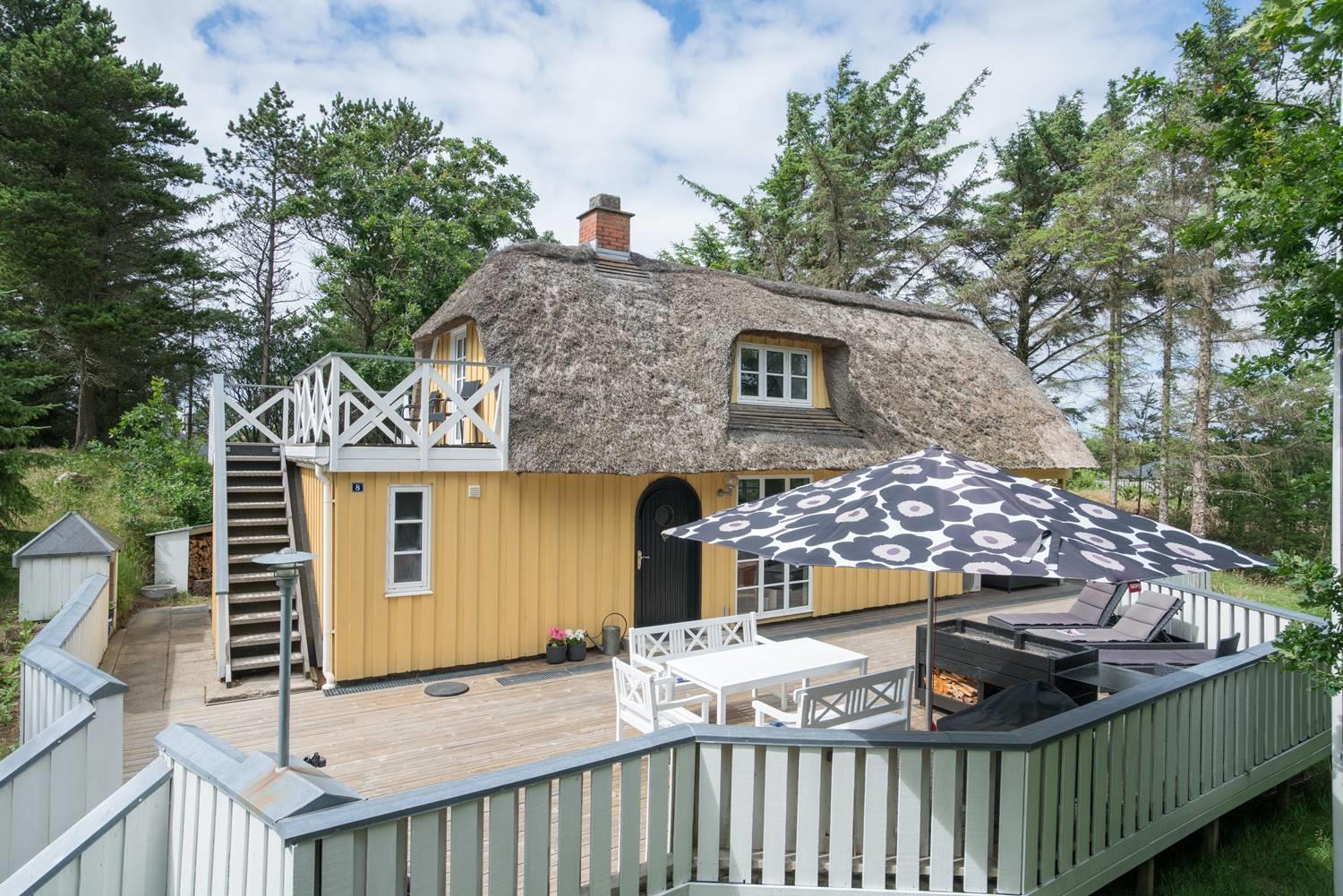 Prachtvolles und charmantes 2 - stöckiges Ferienhaus auf einem schönen und ungestörten Naturgrund. Das Haus hat ein grosses windgeschütztes Terrassenareal um das Haus herum. Hier ist ein Ferienhaus mit Seele und Atmosphäre und allen Möglichkeiten für einen schönen Urlaub.