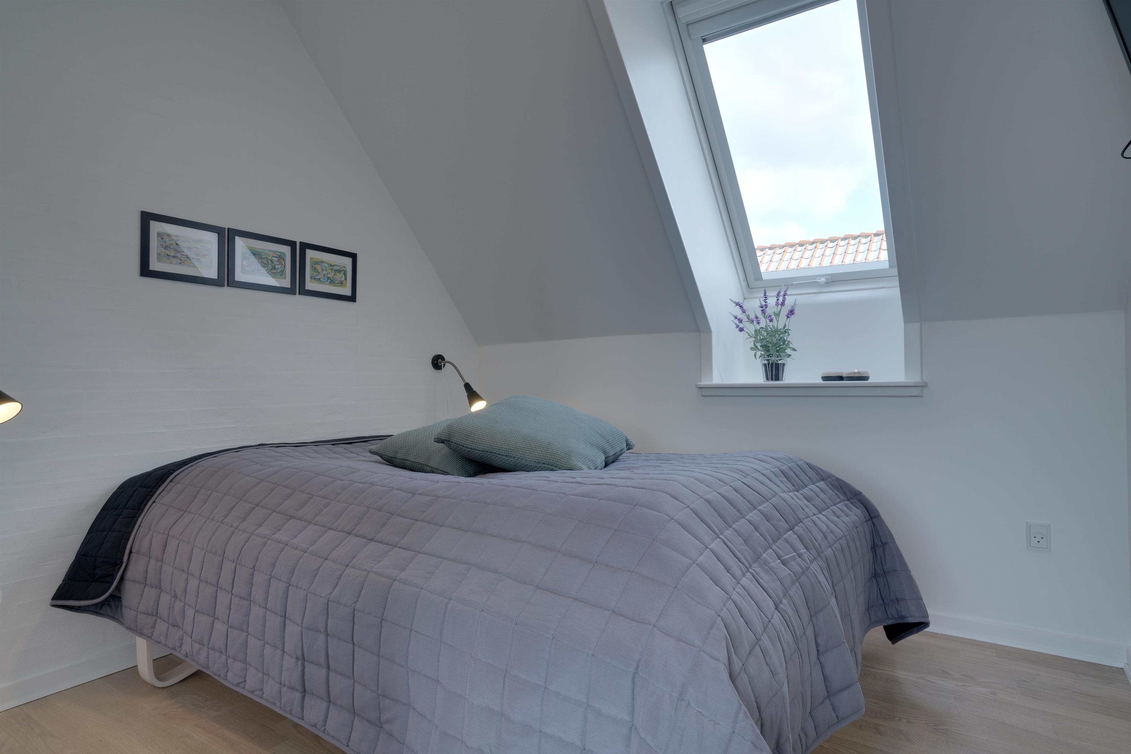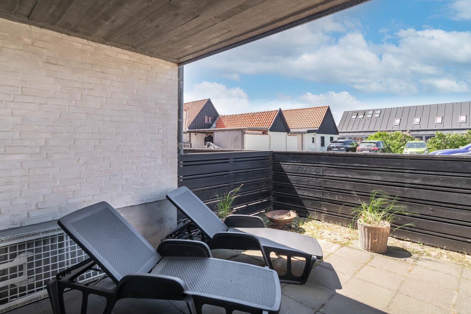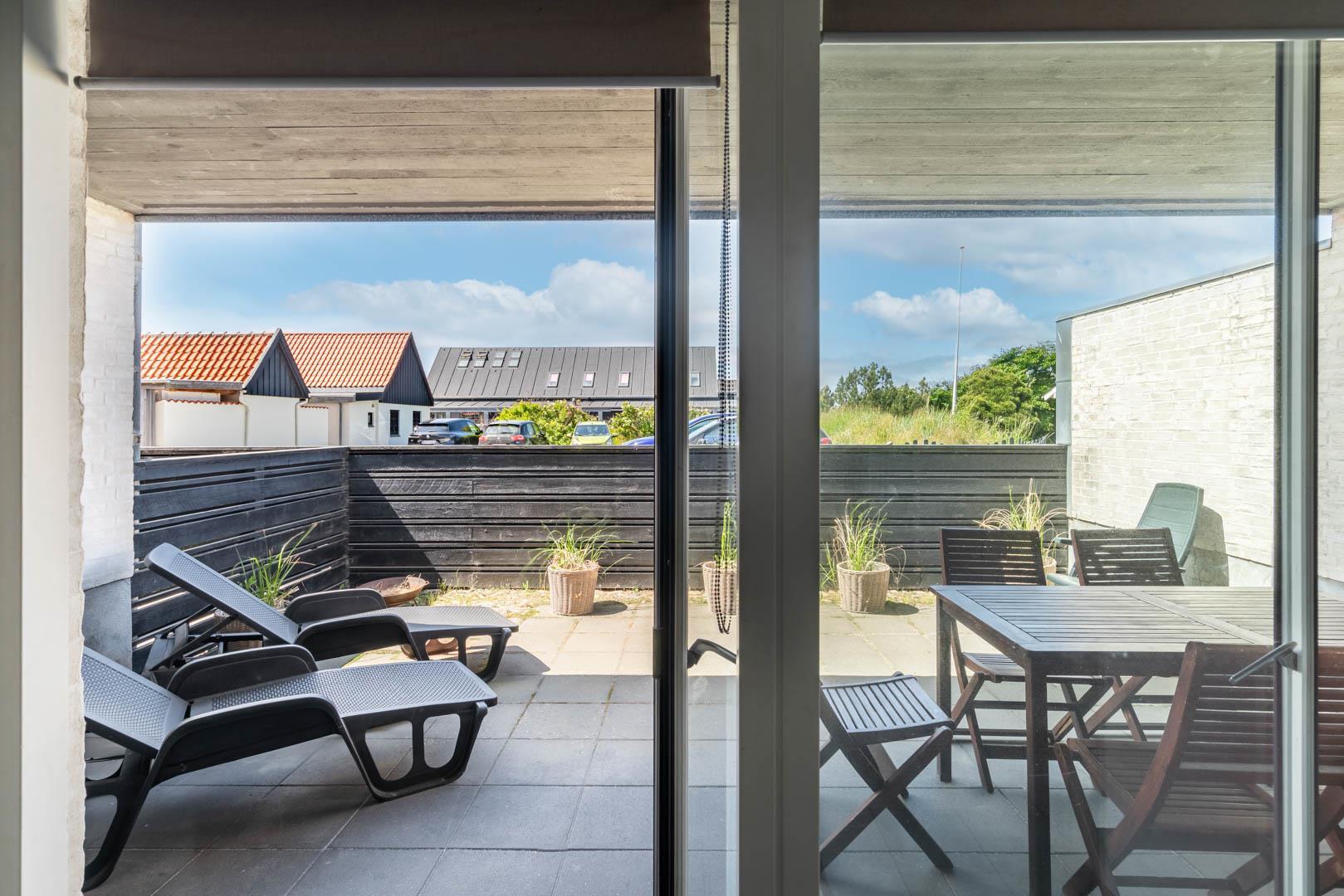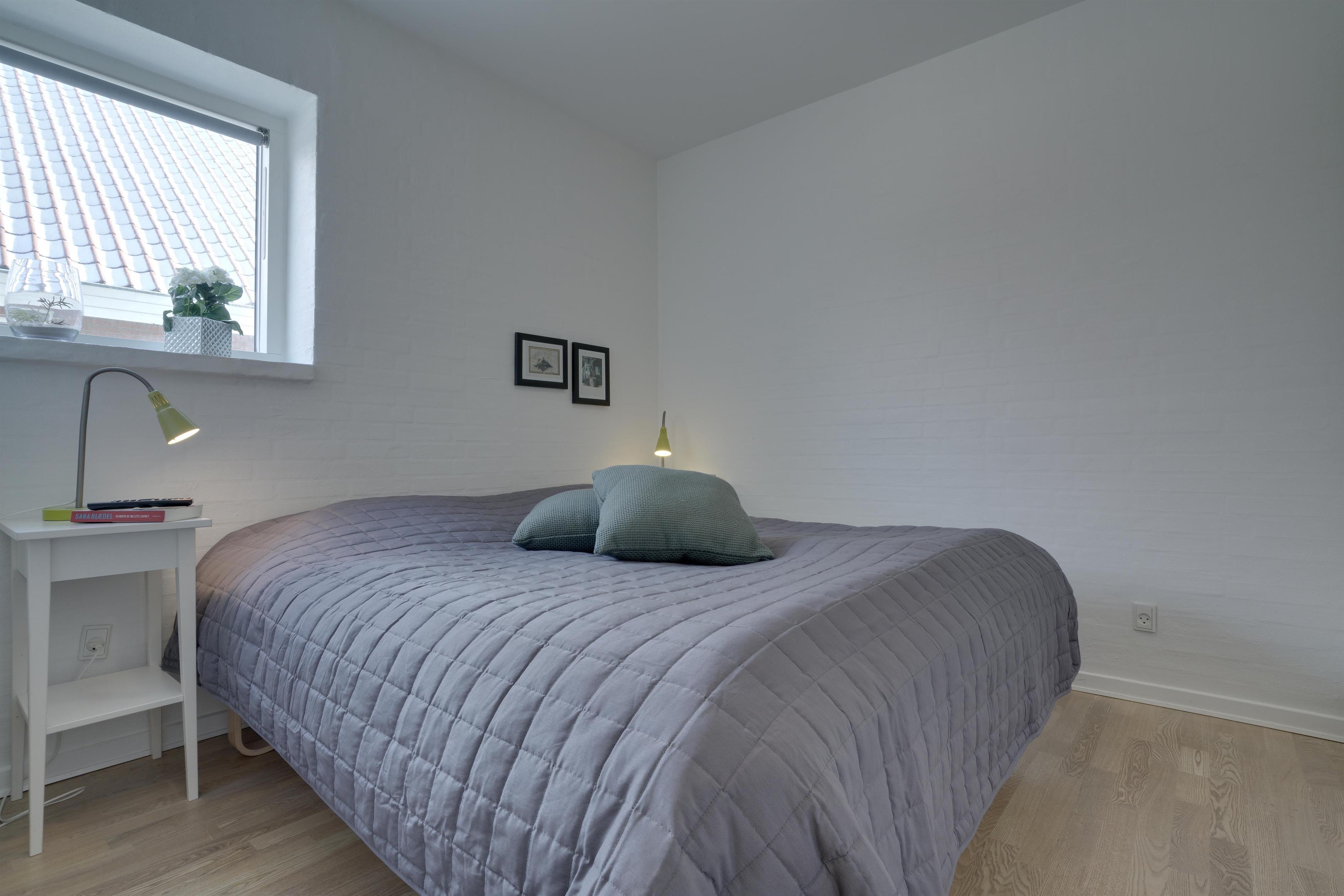 Die mit hoher Qualität gebaute Wohnung befindet sich im Herzen von Henne Strand. Die Wohnung ist überall hell und freundlich und auf einem hohen Qualitätsniveau. Die Wohnung besteht aus 2 Ebenen. In der ersten Ebene ist der Eingang, Schlafzimmer, Wohnzimmer, Bad und eine geschützte Terrasse gegen Westen gerichtet. In der zweiten Ebene befinden sich 2 Schlafzimmer, Wohnzimmer und Balkon. In allen Zimmern sind Flachbildschirme vorhanden. Mit Warmepumpe. Abstellraum für Fahrräder beim Carport.