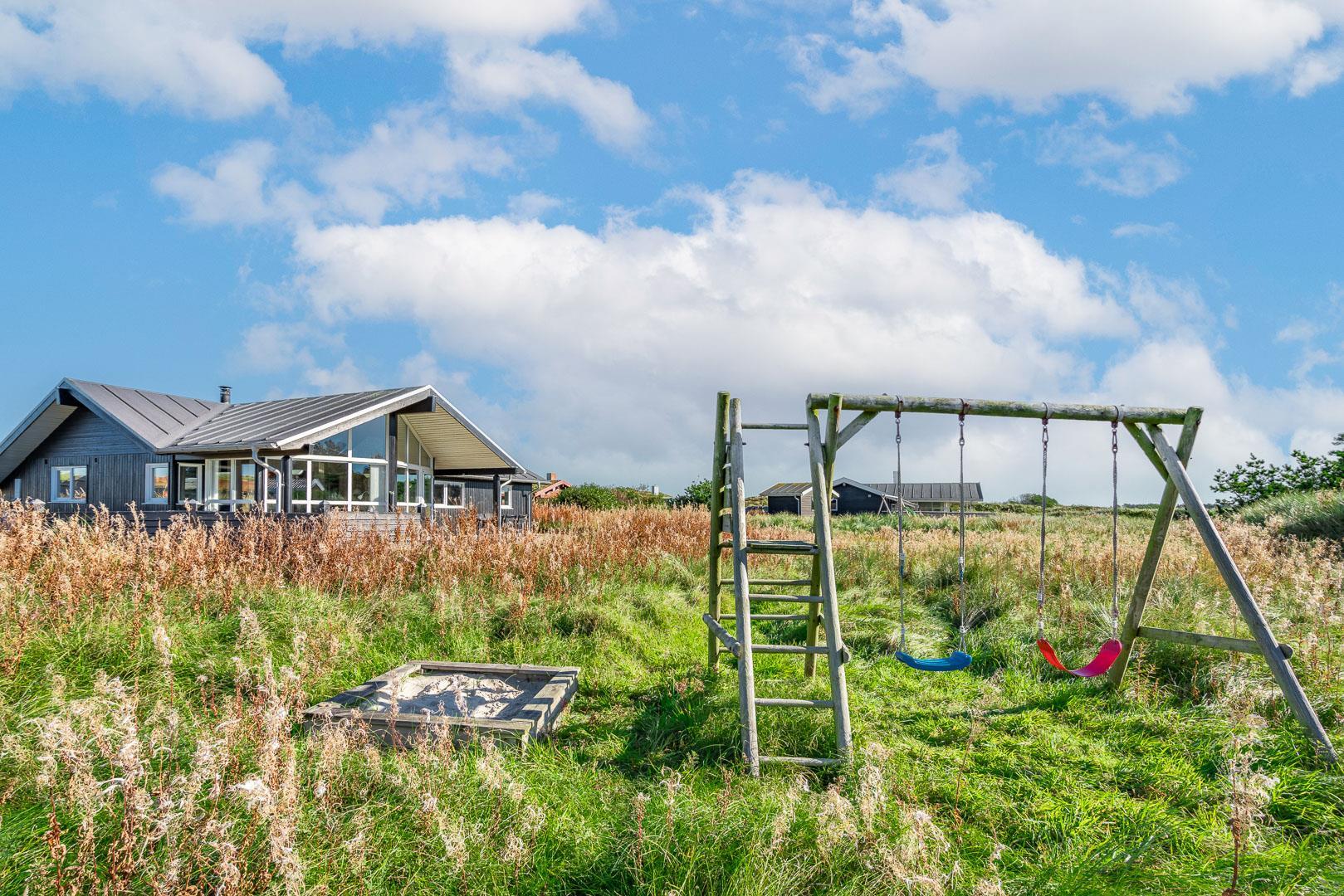 Auch für die kleinen Gäste ist bestens gesorgt: Eine Babybadewanne, Schaukel und ein Sandkasten machen das Ferienhaus besonders familienfreundlich. Während die Kinder spielen, entspannst du auf der Terrasse und genießt die frische Nordseeluft und den herrlichen Blick über die Dünen.