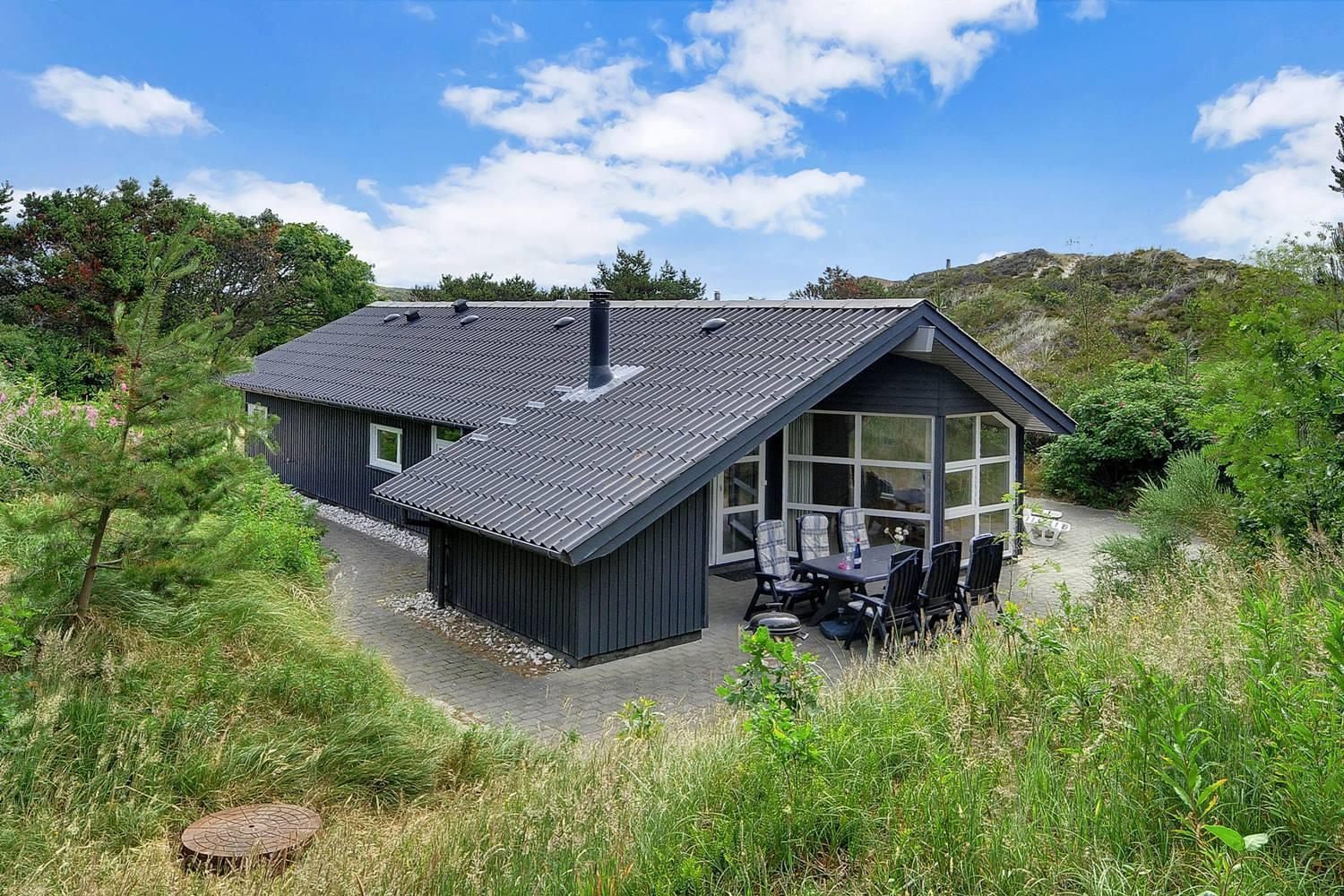 Herrliches, sehr gepflegtes Qualitätsferienhaus, das sich auf einem schönen, ungestörten Dünengrundstück am Ende einer Sackgasse befindet. Das Haus liegt nahe an der Nordsee. Der helle Wohnbereich ist mit hübschen, guten Möbeln eingerichtet und verfügt über einen Zugang zur großen Terrasse mit guten Windschutzmöglichkeiten. Die schöne, gut ausgestattete Küche ist mit dem Wohnraum kombiniert. Im Haus befindet sich ein tolles Badezimmer mit Whirlpool und Sauna. Sämtliche Böden im Haus sind mit Fliesen ausgelegt.