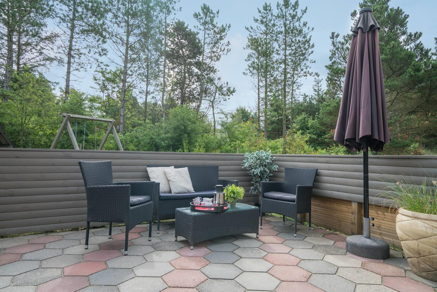 Gemütliches Ferienhaus in Henne Strand mit Sauna und großer Terrasse, ideal für entspannte Tage in der Natur.