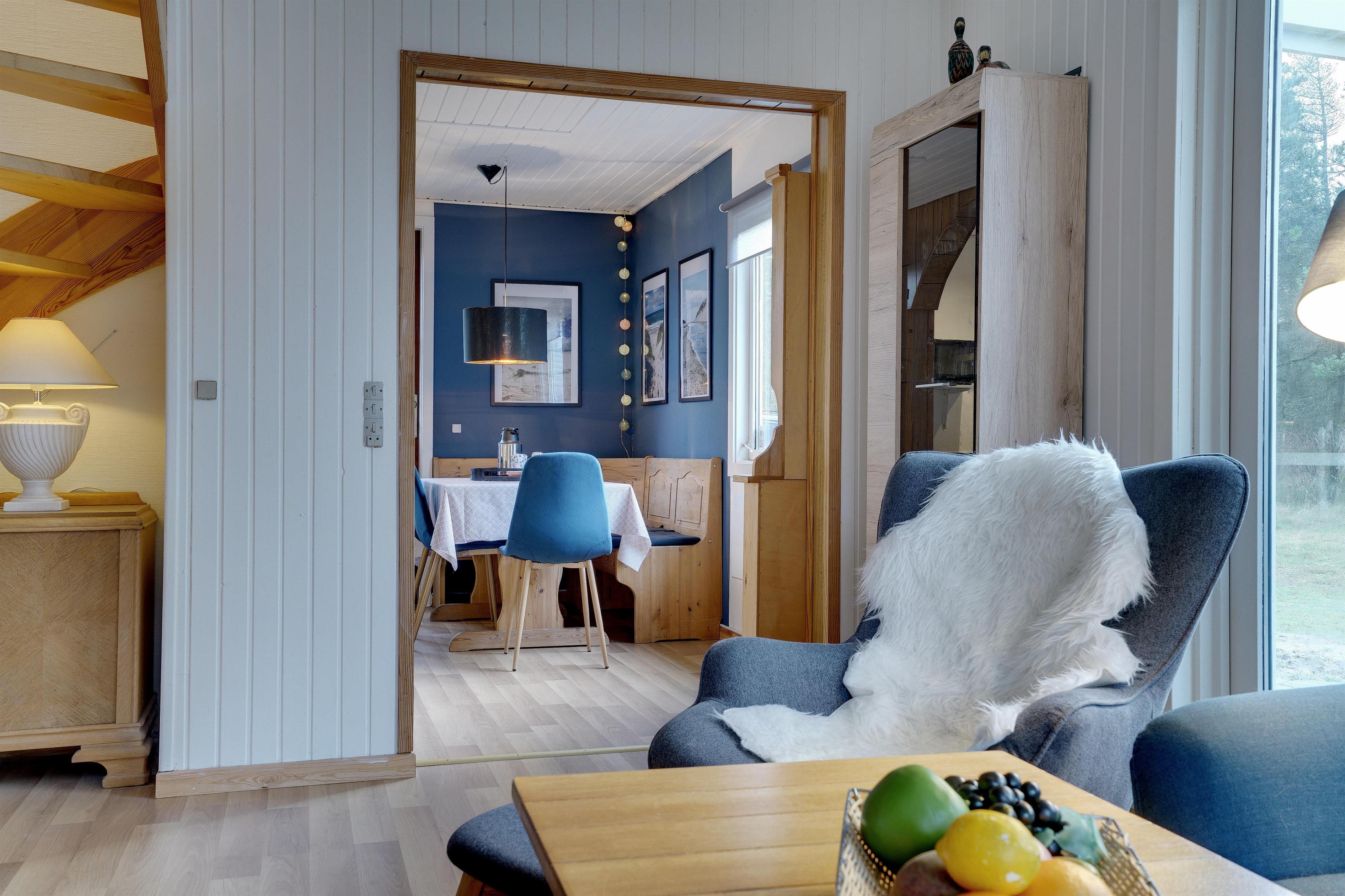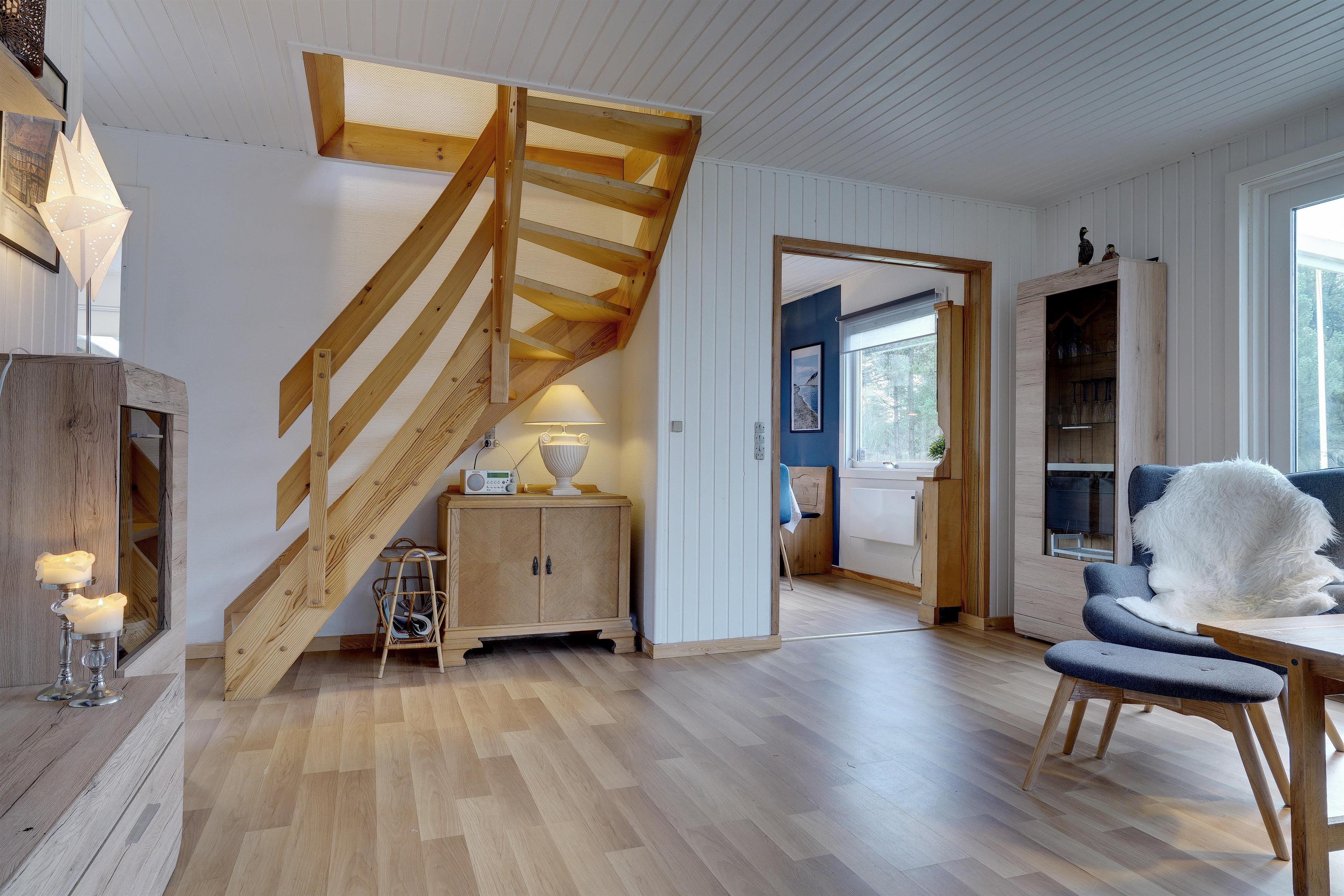 Schönes Ferienhaus auf einem großen Grundstück, umgeben von Tannen. Die Hälfte des Grundstücks ist eingezäunt. Das Haus ist hell, freundlich und mit guten Möbeln eingerichtet. Die Küche des Hauses liegt in offener Verbindung mit dem Essbereich und dem gemütlichen Wohnzimmer mit einem Holzofen und einer energiesparenden Wärmepumpe. Badezimmer mit Sauna. Im 1. Stock gibt es 2 große Schlafzimmer. Vom Wohnzimmer aus haben Sie Zugang zu einer schönen und überdachten Terrasse. Bitte beachten, es ist nur 1 Hund als Haustier erlaubt.