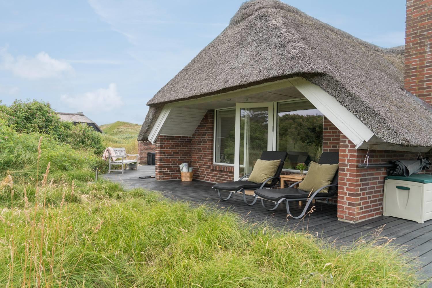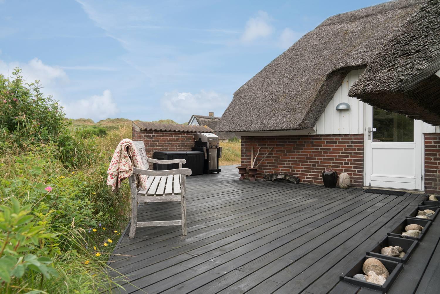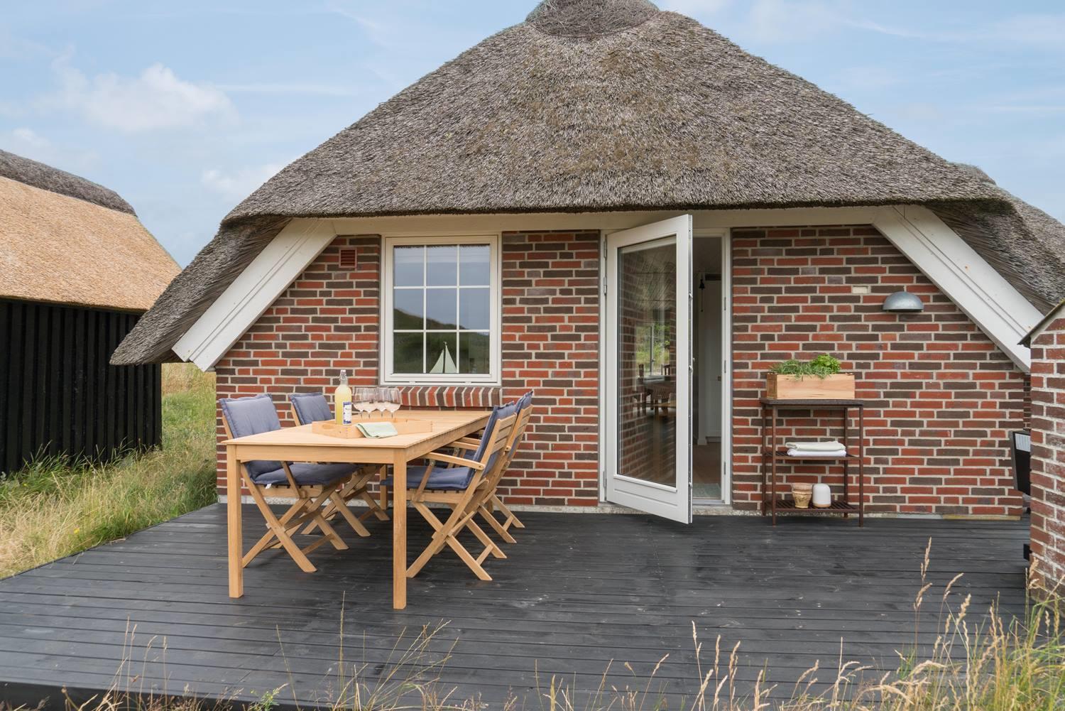 Einladendes Ferienhaus in Henne Strand mit neuer Küche und Holzterrasse, ideal für entspannte Urlaubstage in der Natur.
