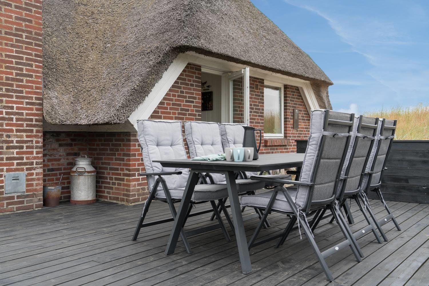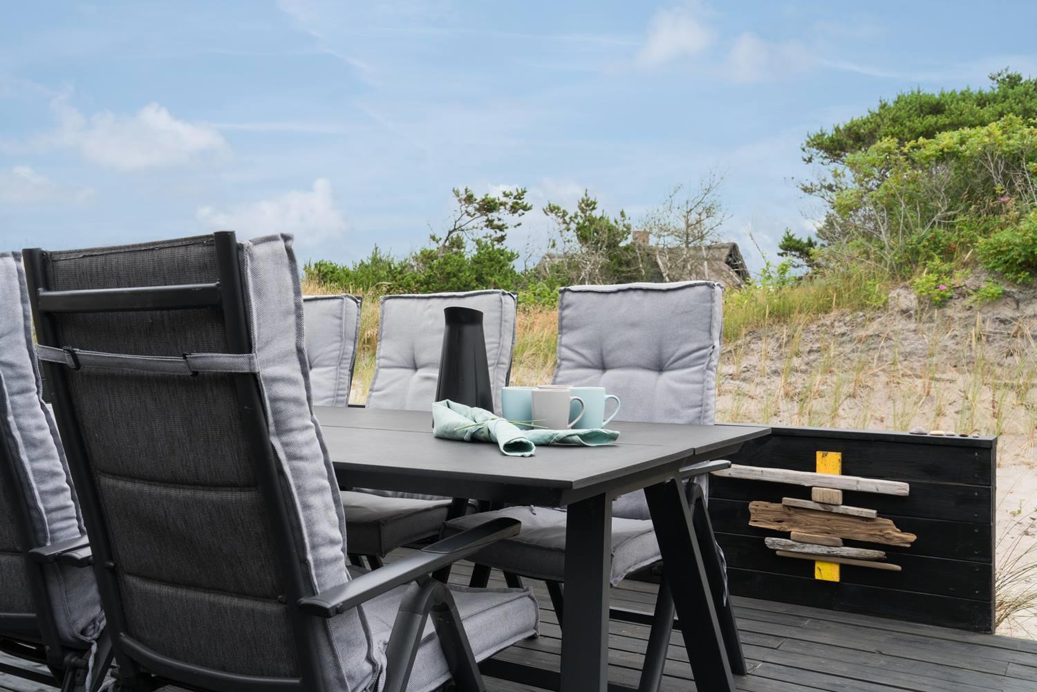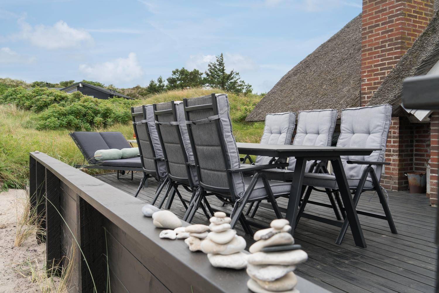 Einladendes Ferienhaus in Henne Strand mit neuer Küche und Holzterrasse, ideal für entspannte Urlaubstage in der Natur.