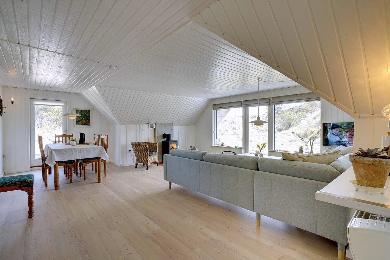 Das Uglevej 4 Henne Strand befindet sich auf einem Dünengrundstück in einer ruhigen Gegend. Das Haus sieht hell und einladend aus mit einer schönen neuen Küche und einem neuen Badezimmer mit Fußbodenheizung ausgestattet. Sowohl vom Wohnzimmer als auch von der Küche aus haben Sie Zugang zur schönen Holzterrasse, die das Haus umgibt. Von hier aus können Sie die Natur und die Aussicht auf die Umgebung in vollen Zügen genießen. Schuppen mit platz für mitgebrachte Fahrräder. Ein perfektes Ferienhaus, in dem der Urlaub in einer angenehmen und ruhigen Umgebung verbracht werden kann.