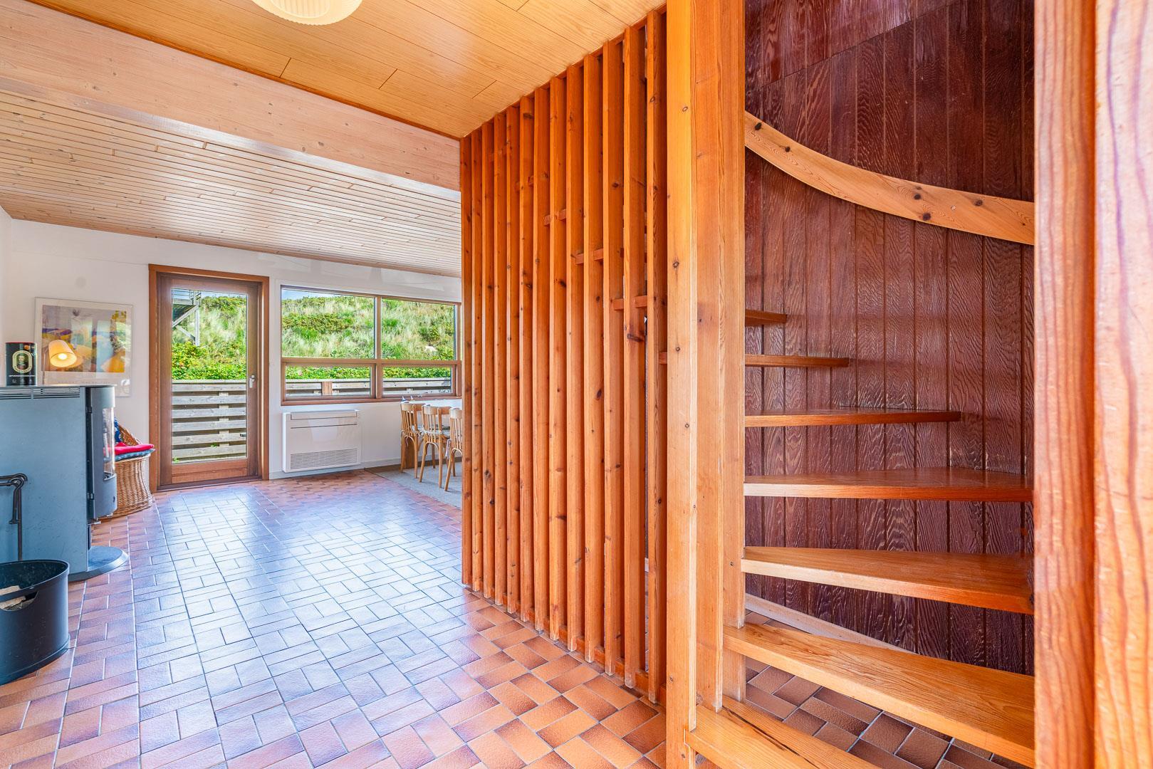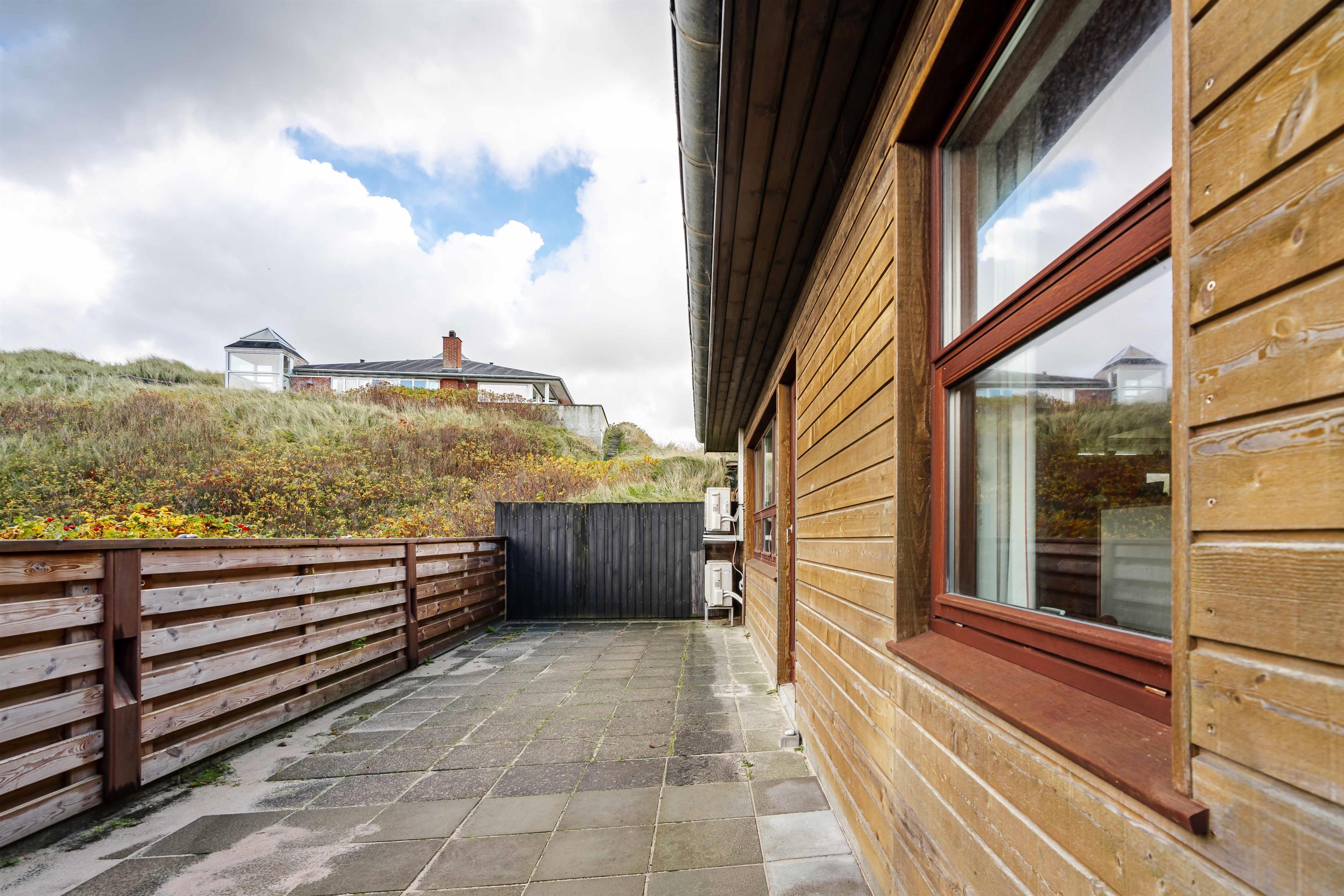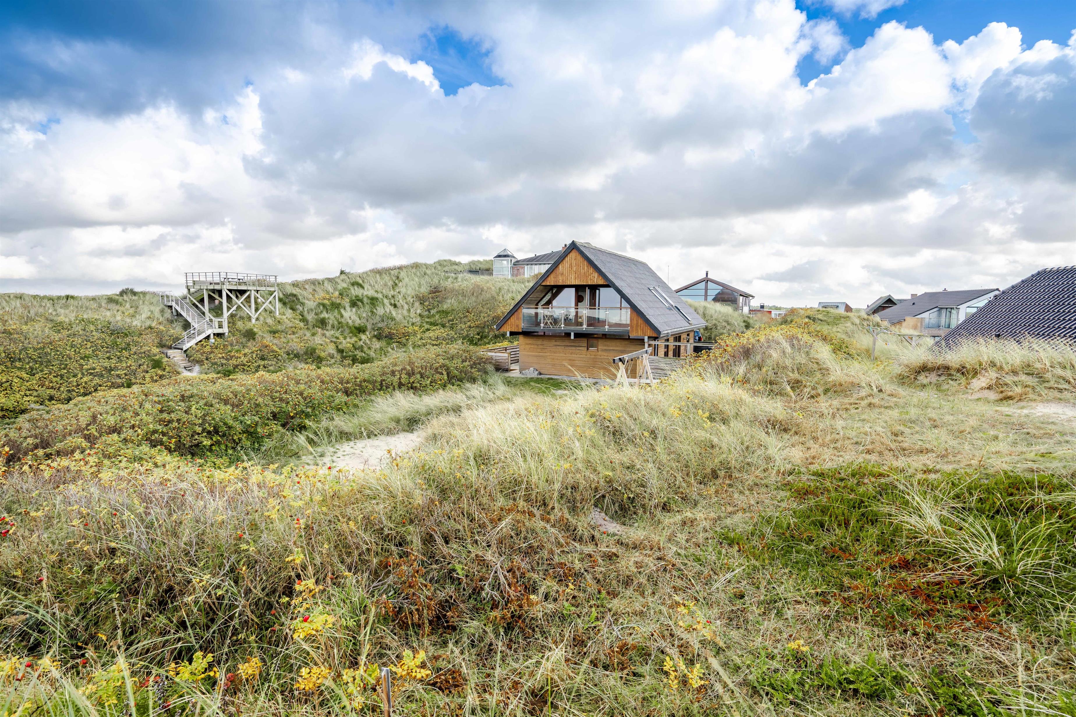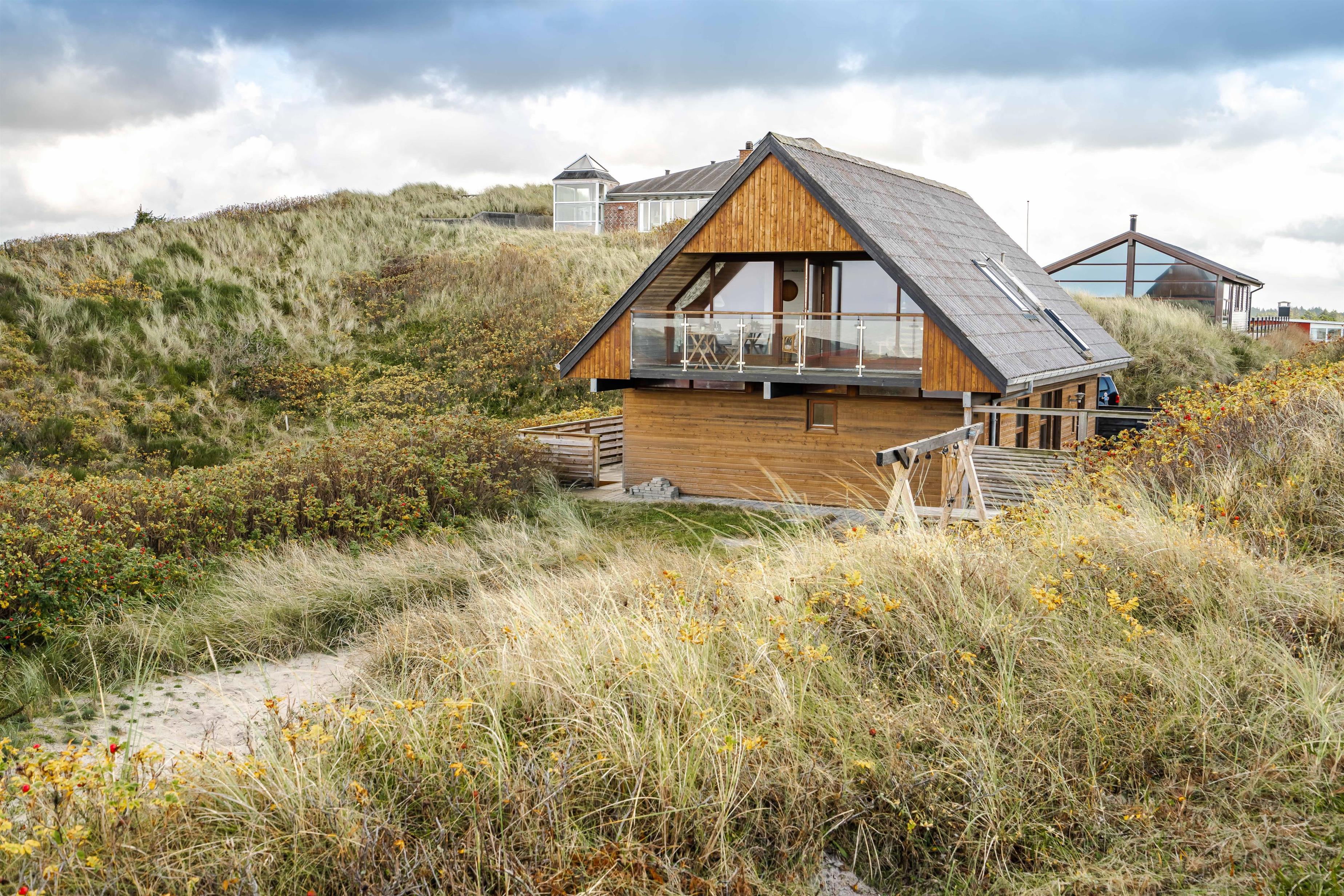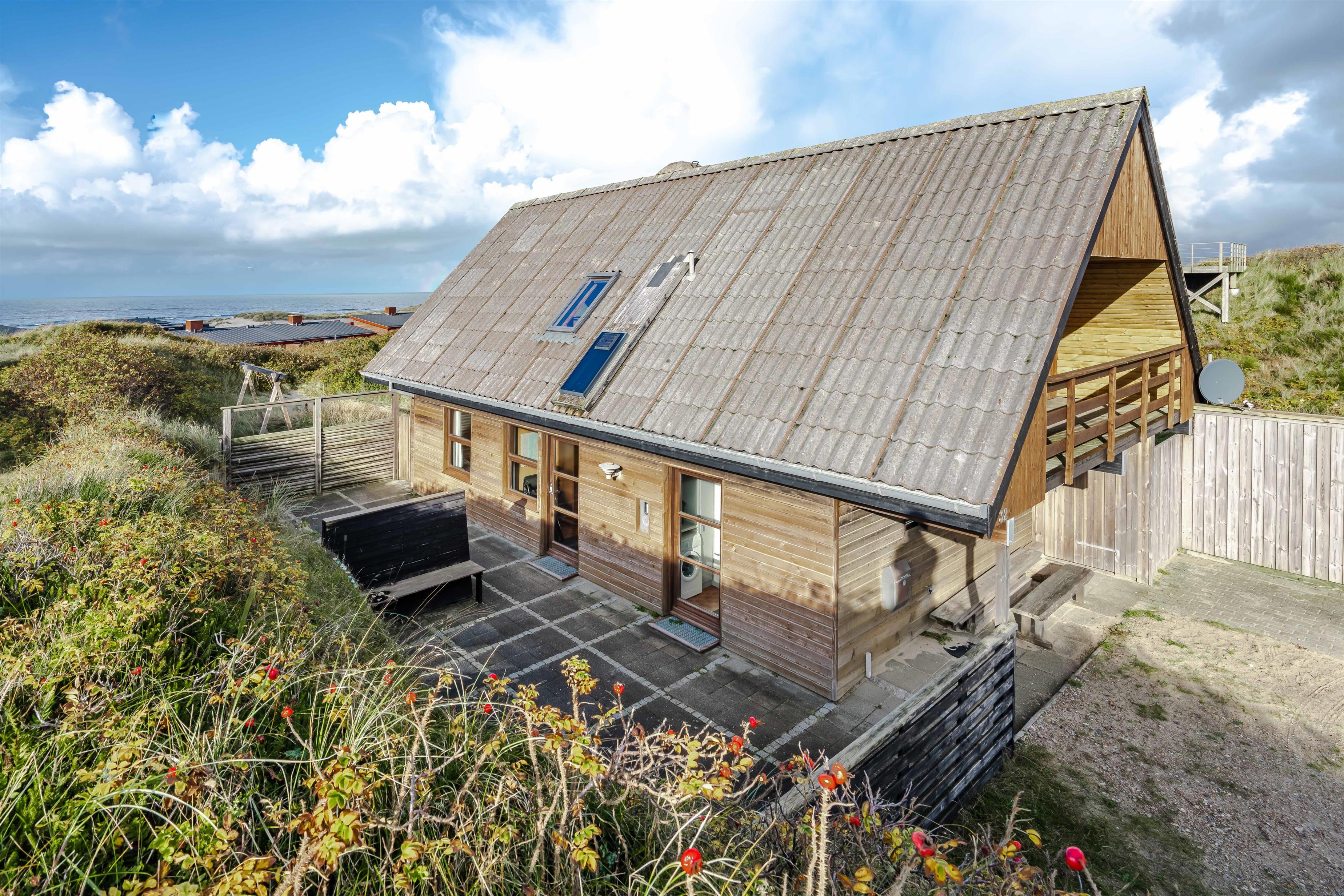 Fantastisch gut gelegenes Ferienhaus mit 2 Etagen und Panoramaaussicht über das Meer. Das Haus liegt auf einem Natur-/ Dünengrundstück nur 200m von der Nordsee und dem tollen Sandstrand entfernt. Zum Haus gehören sowohl offene und überdachte Terrassen, sowie Sandkasten und Schaukel für Kinder. Auf der 1.Etage befindet sich ein Schlafzimmer mit Doppelbett, sowie eine gemütliche Aufenthaltstube mit Kamin und Balkon. Im Erdgeschoß befindet sich die Küche in offener Verbindung mit der Stube, die ebenfalls einen Kamin hat. Es gibt Möglichkeit für Eintritt für Pay and Play Henne Golfklub