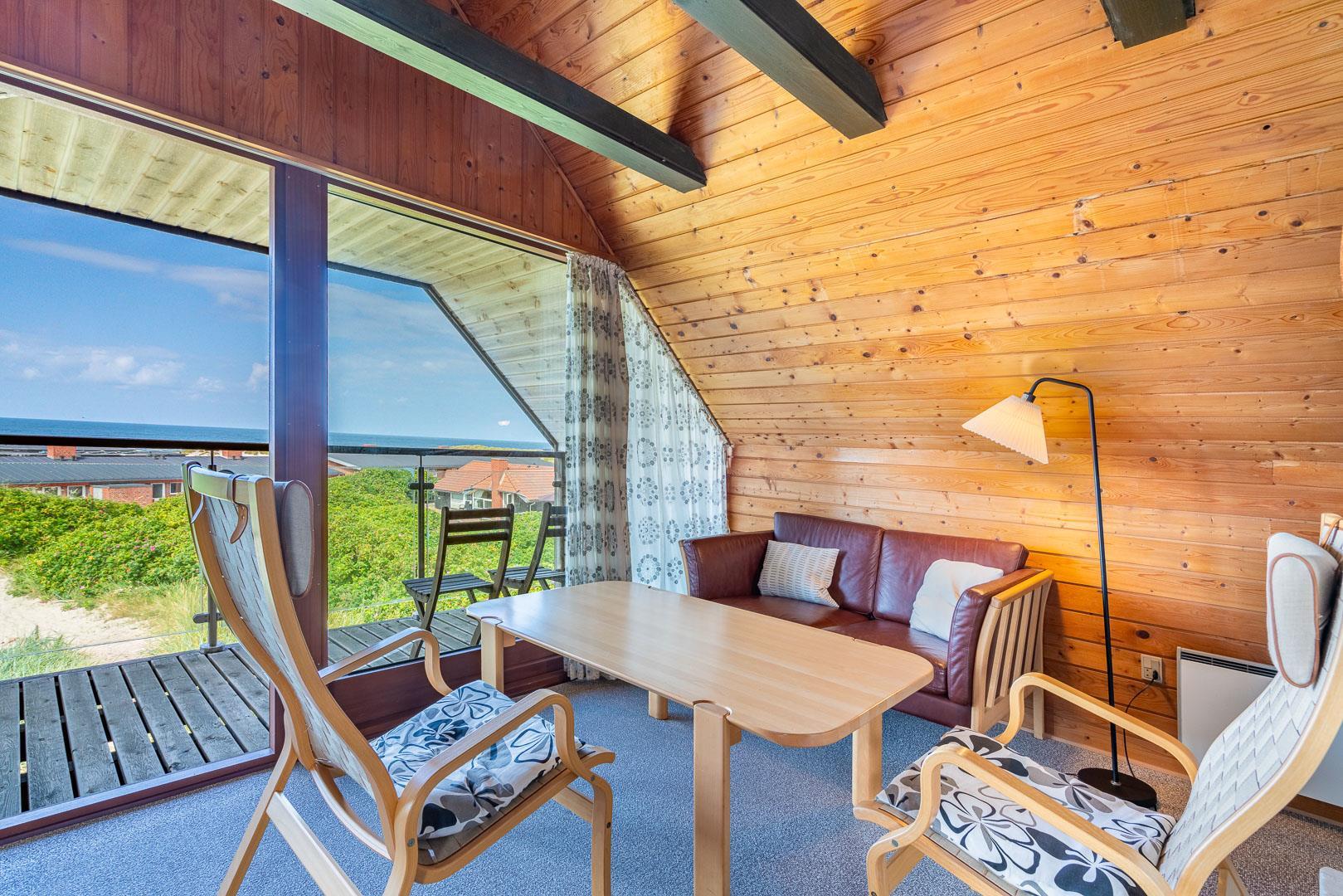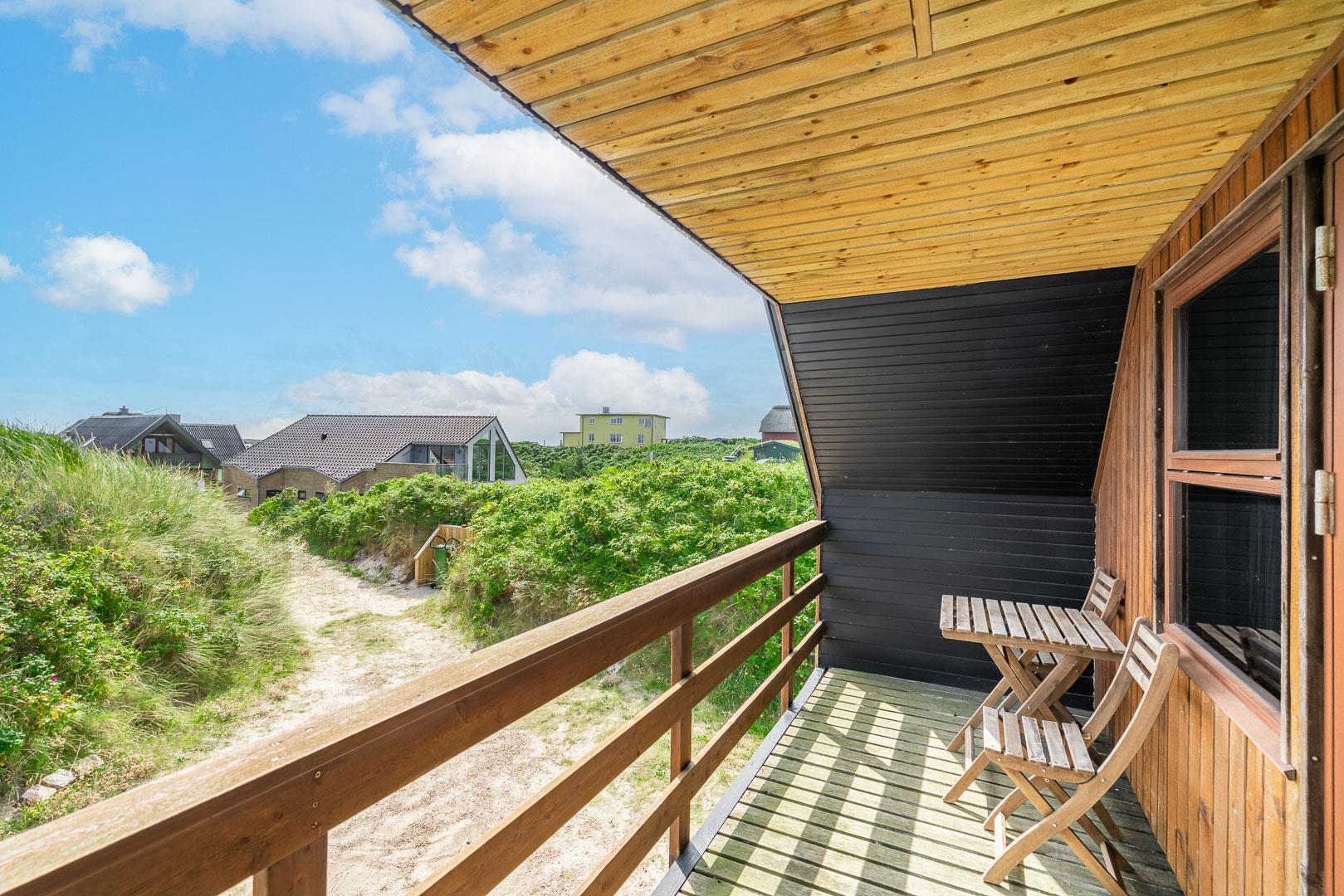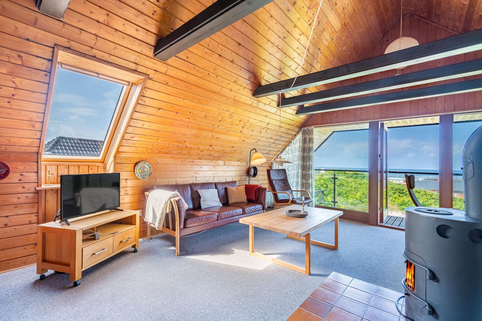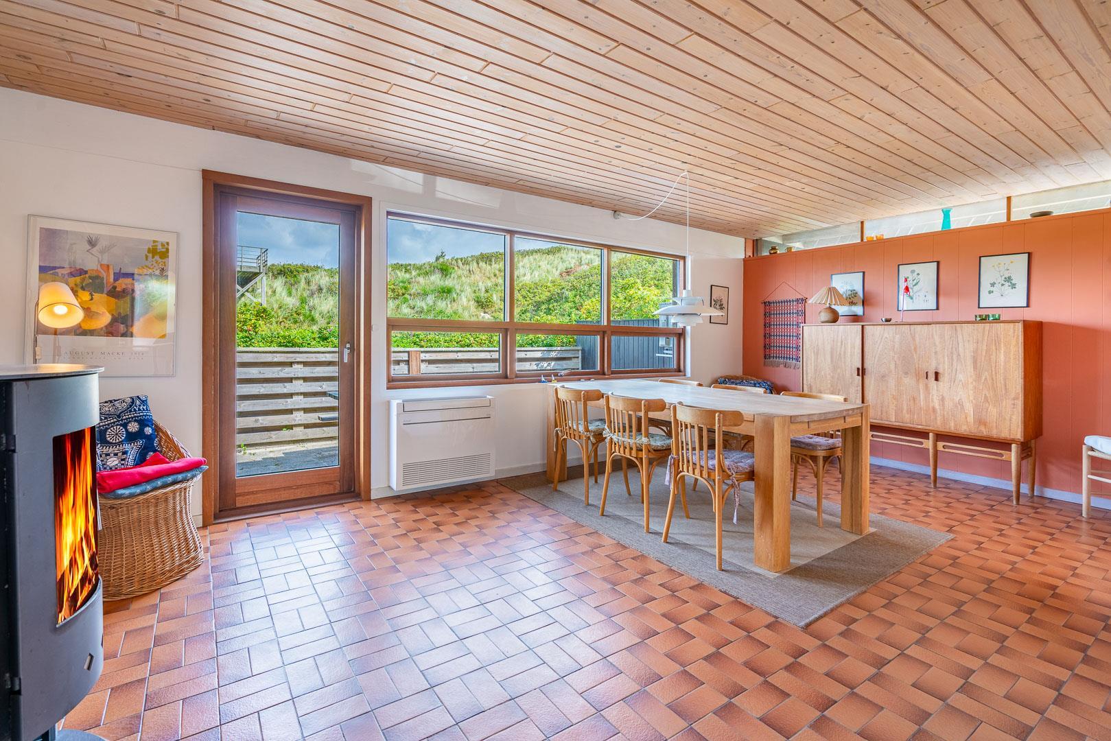 Fantastisch gut gelegenes Ferienhaus mit 2 Etagen und Panoramaaussicht über das Meer. Das Haus liegt auf einem Natur-/ Dünengrundstück nur 200m von der Nordsee und dem tollen Sandstrand entfernt. Zum Haus gehören sowohl offene und überdachte Terrassen, sowie Sandkasten und Schaukel für Kinder. Auf der 1.Etage befindet sich ein Schlafzimmer mit Doppelbett, sowie eine gemütliche Aufenthaltstube mit Kamin und Balkon. Im Erdgeschoß befindet sich die Küche in offener Verbindung mit der Stube, die ebenfalls einen Kamin hat. Es gibt Möglichkeit für Eintritt für Pay and Play Henne Golfklub