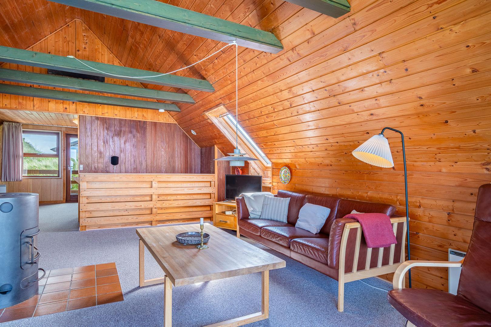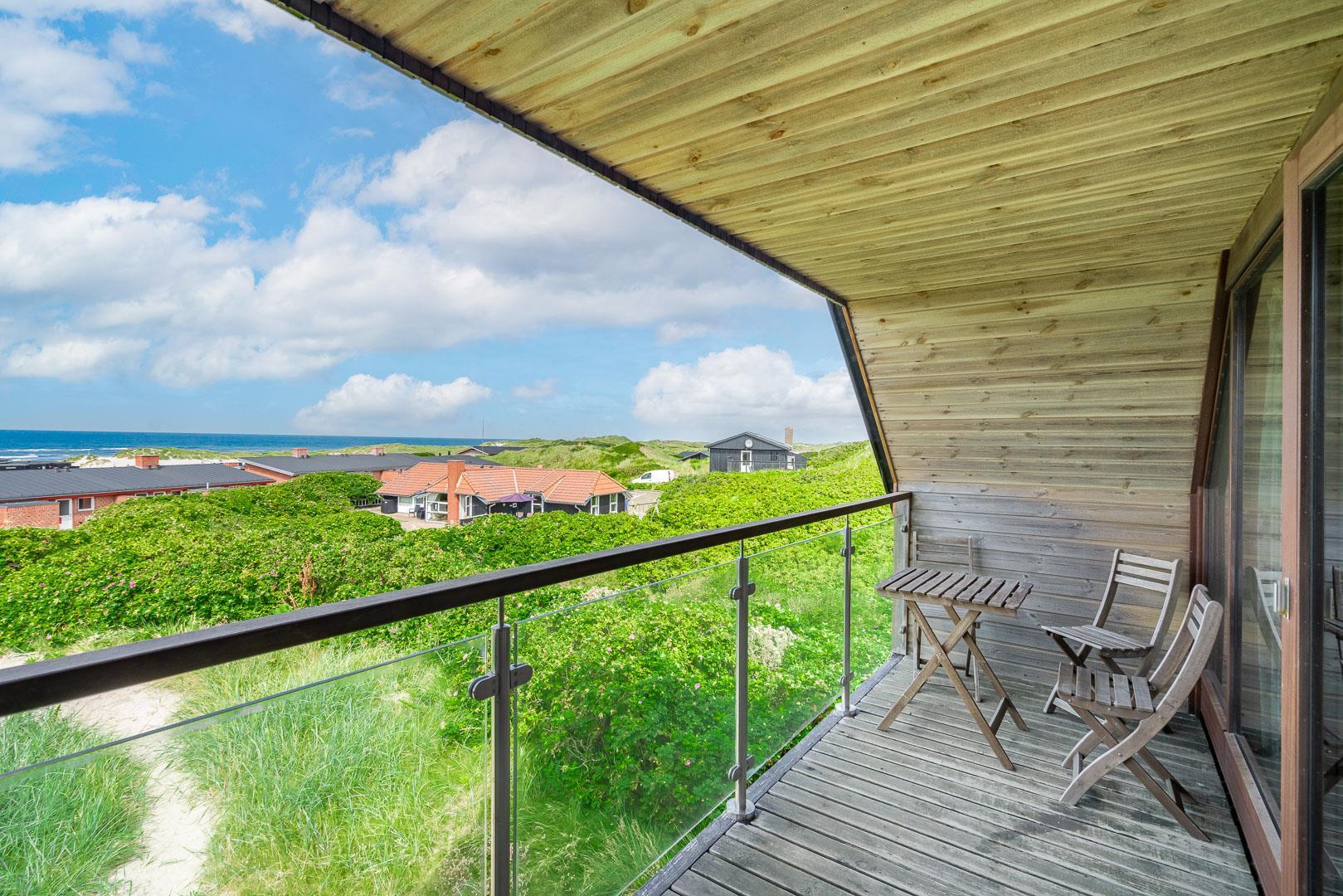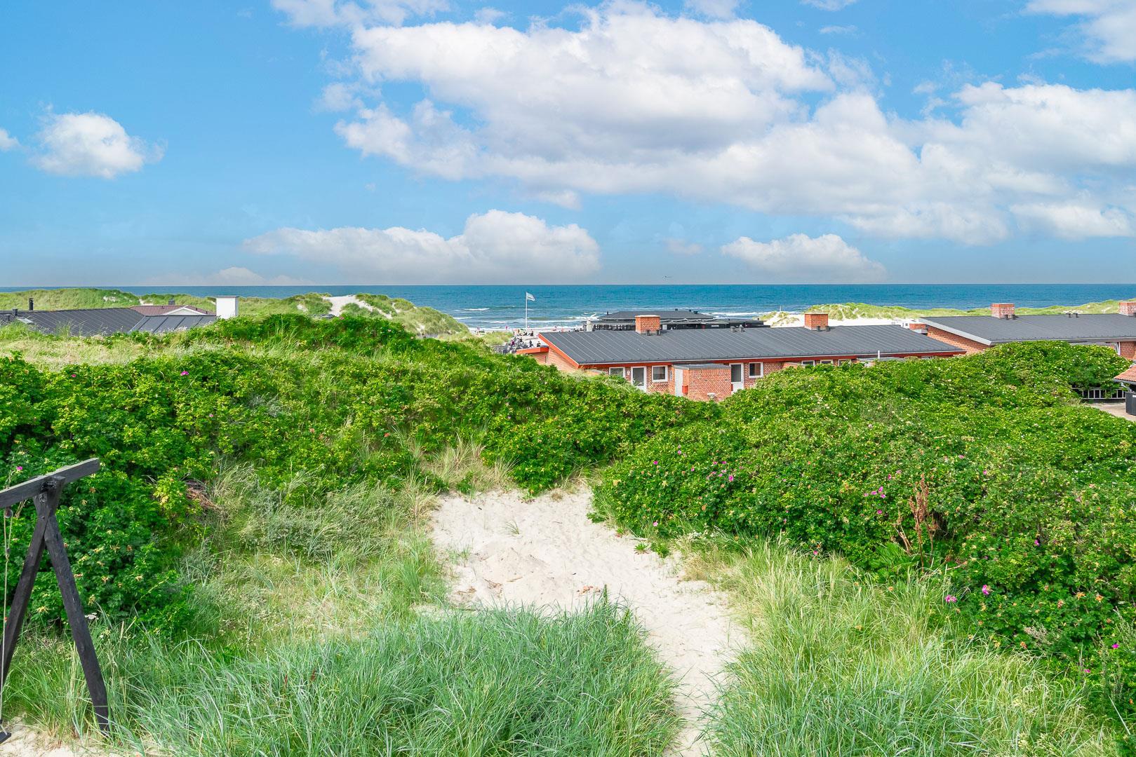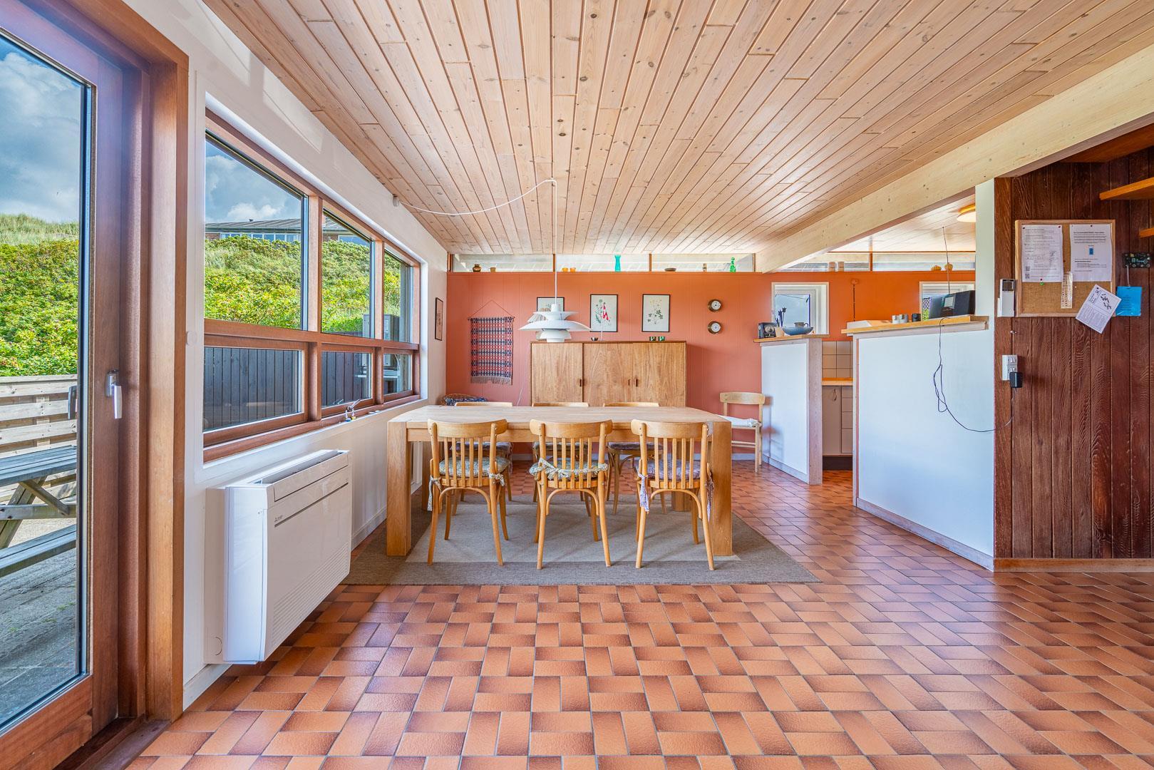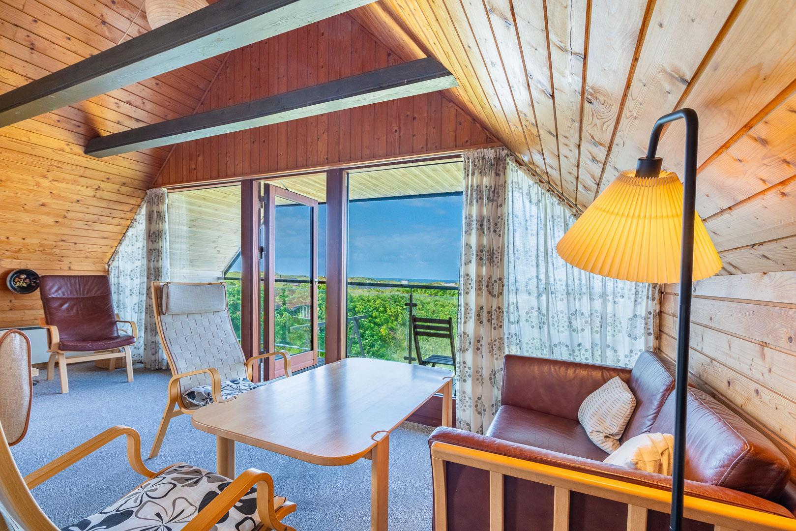 Fantastisch gut gelegenes Ferienhaus mit 2 Etagen und Panoramaaussicht über das Meer. Das Haus liegt auf einem Natur-/ Dünengrundstück nur 200m von der Nordsee und dem tollen Sandstrand entfernt. Zum Haus gehören sowohl offene und überdachte Terrassen, sowie Sandkasten und Schaukel für Kinder. Auf der 1.Etage befindet sich ein Schlafzimmer mit Doppelbett, sowie eine gemütliche Aufenthaltstube mit Kamin und Balkon. Im Erdgeschoß befindet sich die Küche in offener Verbindung mit der Stube, die ebenfalls einen Kamin hat. Es gibt Möglichkeit für Eintritt für Pay and Play Henne Golfklub