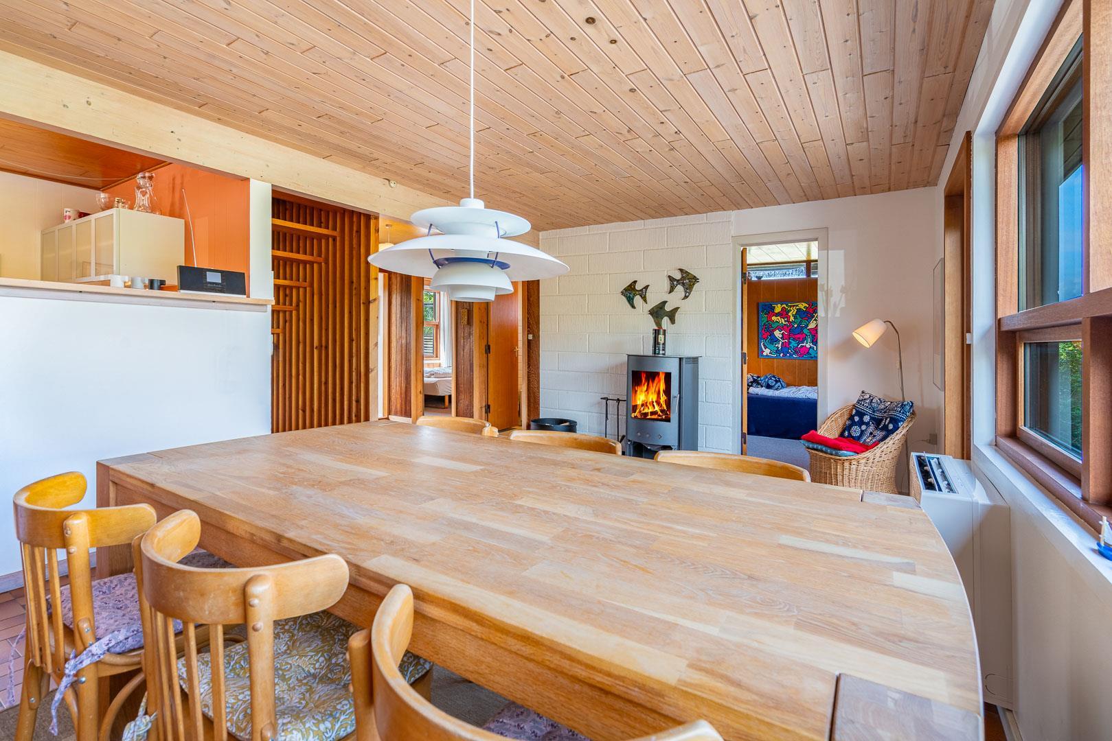 Ferienhaus mit Meerblick, nur 200 m vom Nordseestrand in Henne Strand, mit Kamin, Terrasse und Spielplatz für Kinder.