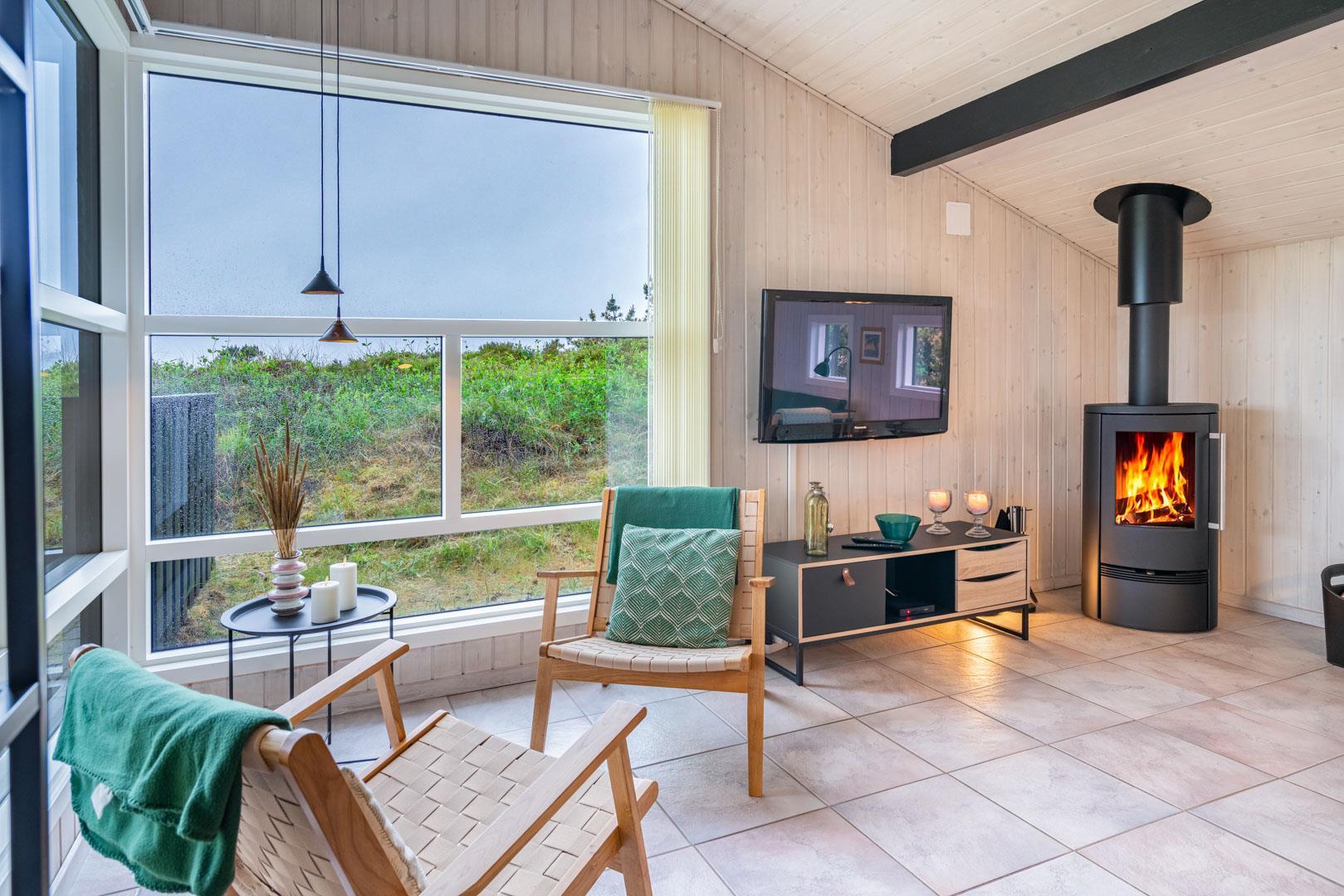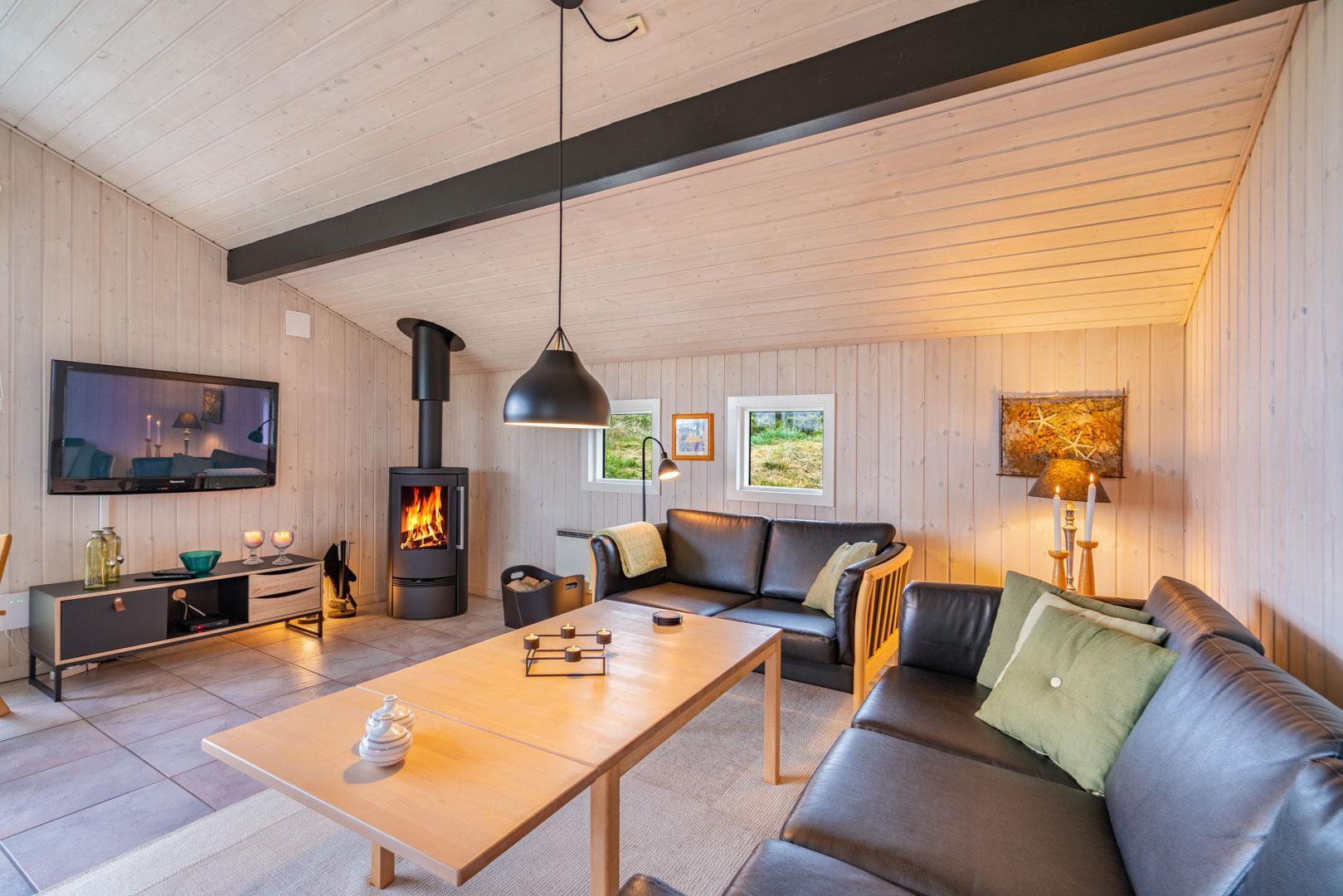 Im Wohnzimmer können Sie es sich vor dem Kamin gemütlich machen, der sowohl Wärme als auch Atmosphäre verbreitet, während Sie die Gesellschaft von Familie und Freunden genießen. Das Wohnzimmer geht nahtlos in den Küchen- und Essbereich über, wo Sie alle modernen Geräte finden, die Sie für die Zubereitung leckerer Urlaubsmahlzeiten benötigen.