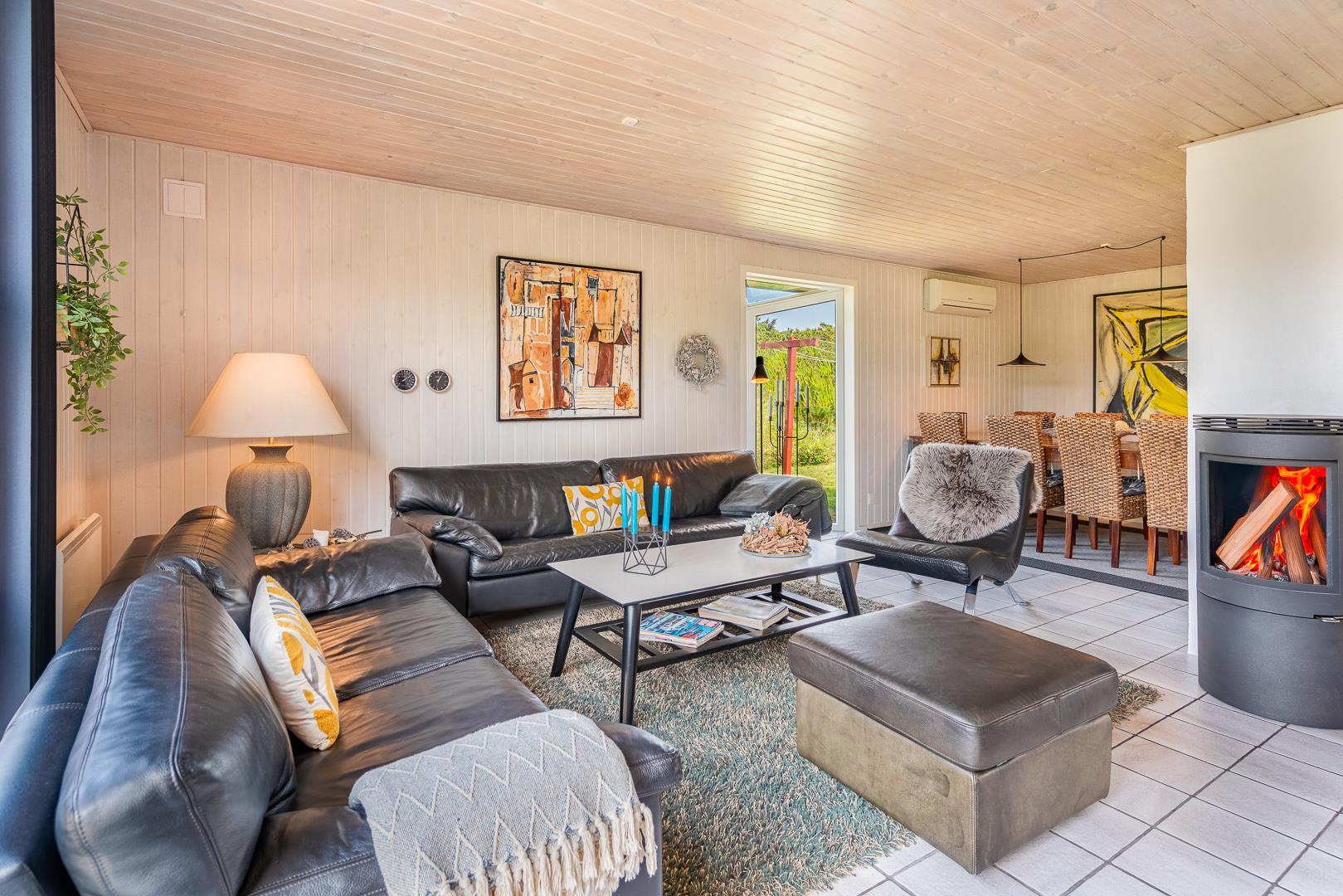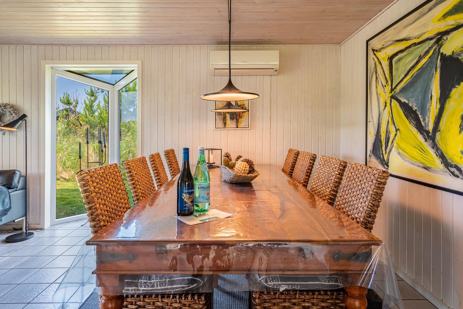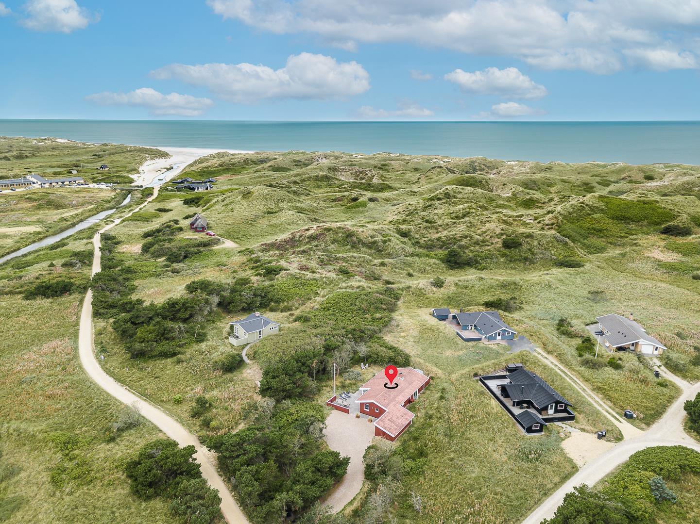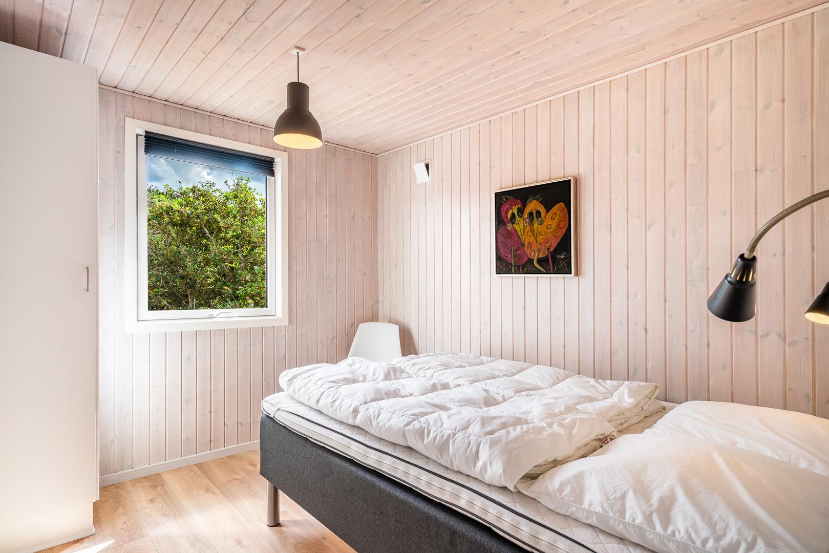 Die offene Küche/Esszimmer ist gut in das gemütliche Wohnzimmer integriert, wo der Holzofen in der Mitte des Raumes für eine schöne Atmosphäre sorgt, und TV "55". Zu den weiteren Einrichtungen gehört ein schöner Eingangsbereich mit Waschmaschine und ein toller Wintergarten, wo Sie reichlich Gelegenheit haben, bei einer guten Tasse Kaffee die Aussicht auf die umliegende Natur zu genießen. Im Wintergarten gibt es außerdem viel Platz, um sich bei Familienspielen zu messen oder in ruhiger Umgebung in ein gutes Buch zu vertiefen. Aber mit einer Terrasse, die zum Entspannen unter freiem Himmel inmitten der Natur einlädt, schafft dieses Ferienhaus das ganze Jahr über den perfekten Rahmen für einen unvergesslichen Urlaub am Henne Strand. Das Parken mit einem Wohnmobil auf dem Grundstück ist nicht erlaubt.