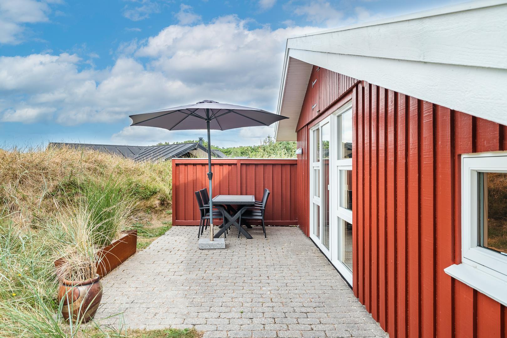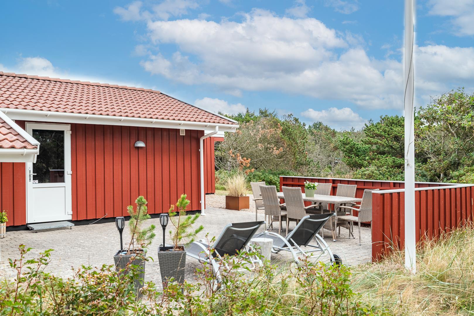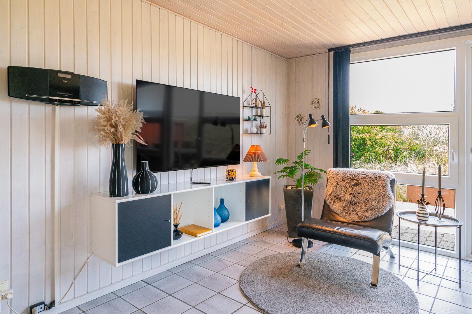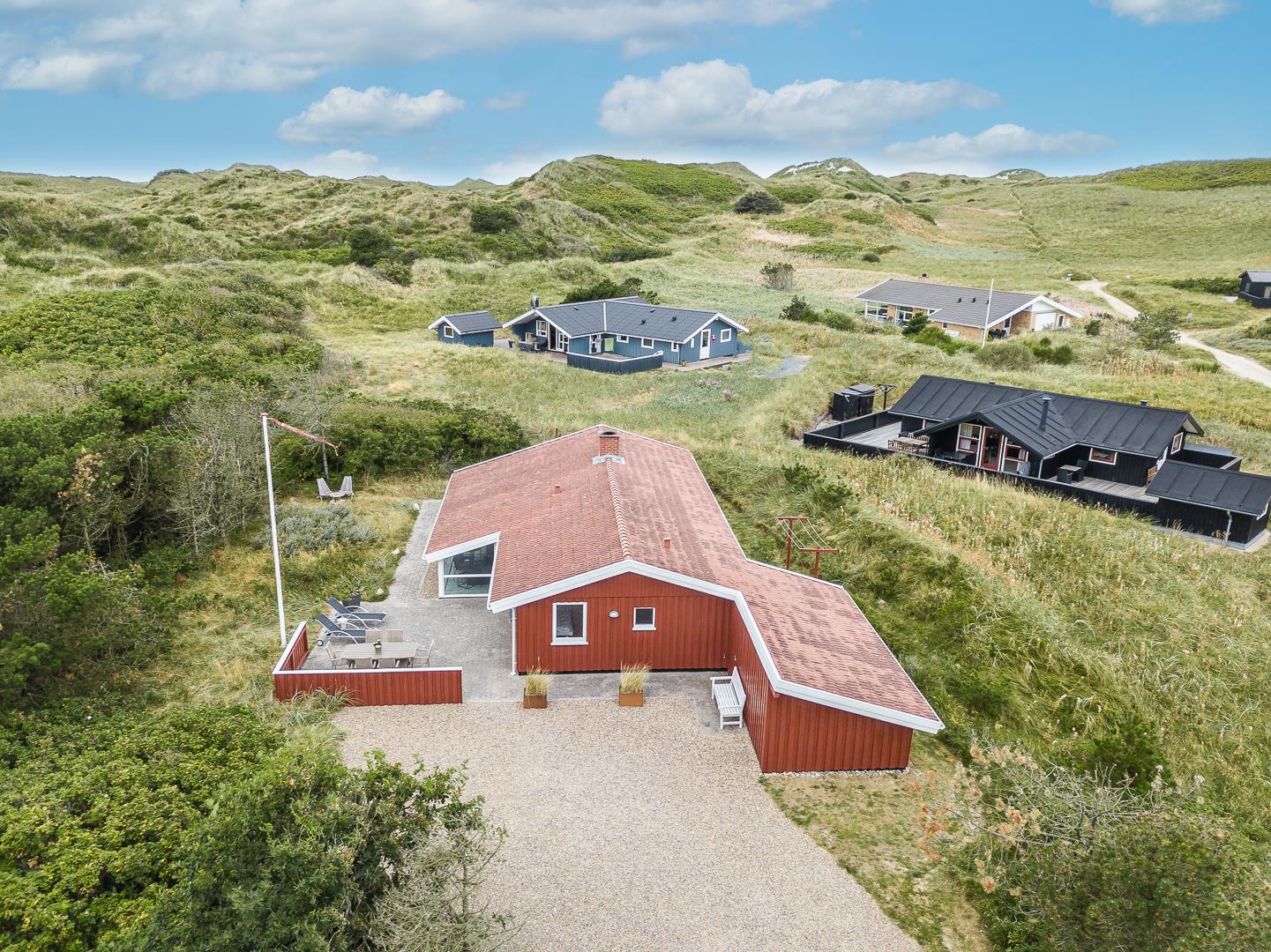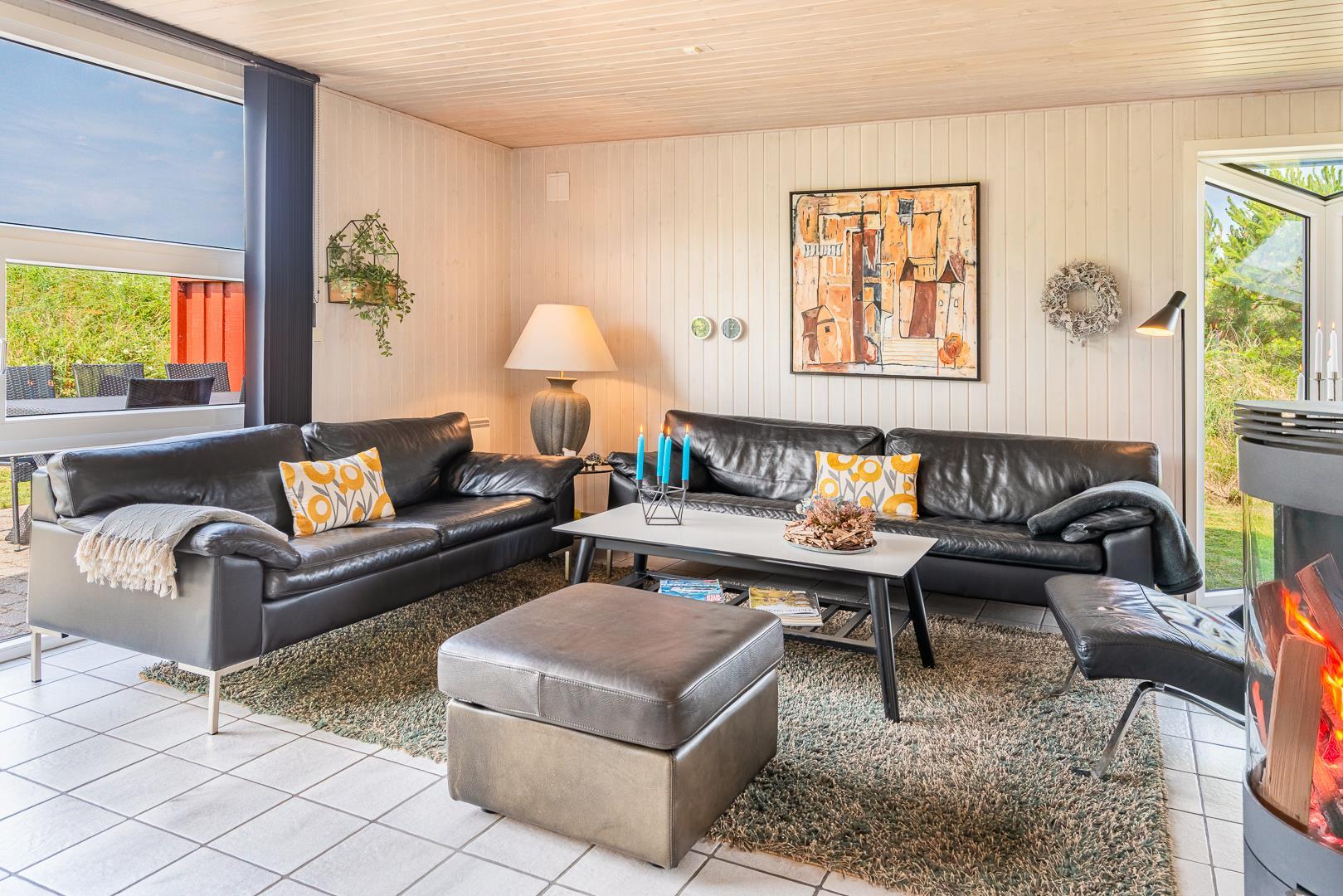 Die offene Küche/Esszimmer ist gut in das gemütliche Wohnzimmer integriert, wo der Holzofen in der Mitte des Raumes für eine schöne Atmosphäre sorgt, und TV "55". Zu den weiteren Einrichtungen gehört ein schöner Eingangsbereich mit Waschmaschine und ein toller Wintergarten, wo Sie reichlich Gelegenheit haben, bei einer guten Tasse Kaffee die Aussicht auf die umliegende Natur zu genießen. Im Wintergarten gibt es außerdem viel Platz, um sich bei Familienspielen zu messen oder in ruhiger Umgebung in ein gutes Buch zu vertiefen. Aber mit einer Terrasse, die zum Entspannen unter freiem Himmel inmitten der Natur einlädt, schafft dieses Ferienhaus das ganze Jahr über den perfekten Rahmen für einen unvergesslichen Urlaub am Henne Strand. Das Parken mit einem Wohnmobil auf dem Grundstück ist nicht erlaubt.