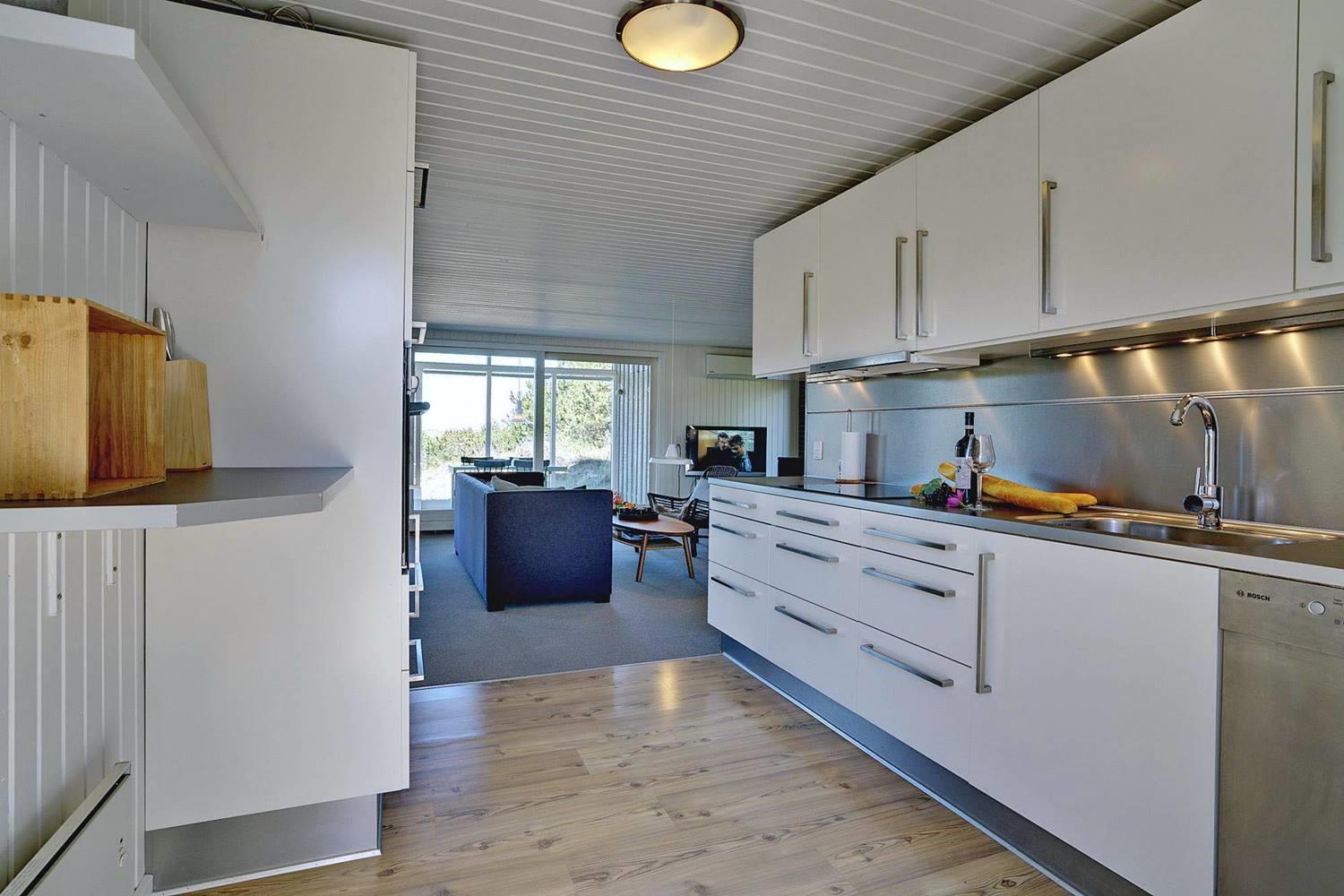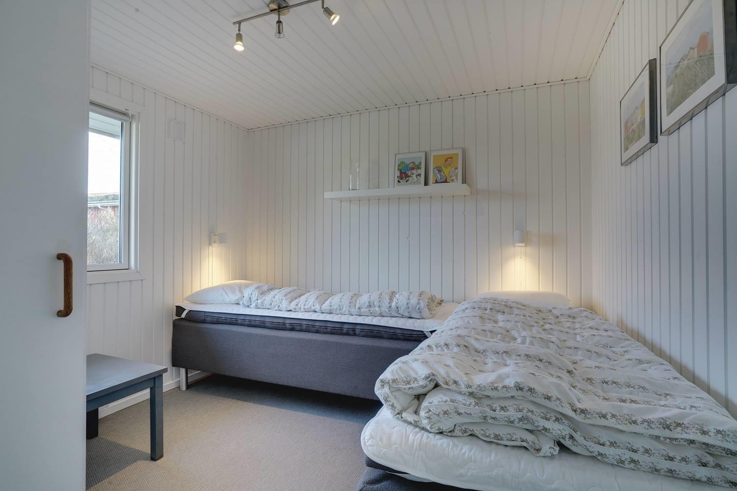 Das Haus bietet Platz für sechs Gäste, die zu zweit in zwei Doppel- und zwei Einzelbetten schlafen - eines dieser Zimmer hat auch direkten Zugang zum Badezimmer. Ein weiteres Badezimmer befindet sich in der Nähe der beiden anderen Schlafzimmer und verfügt über eine Sauna. Beide Badezimmer wurden im Jahr 2017 renoviert. Das Haus ist mit allen Küchengeräten ausgestattet, aber die Waschmaschine befindet sich in der Garage und kann im Winter nicht benutzt werden.