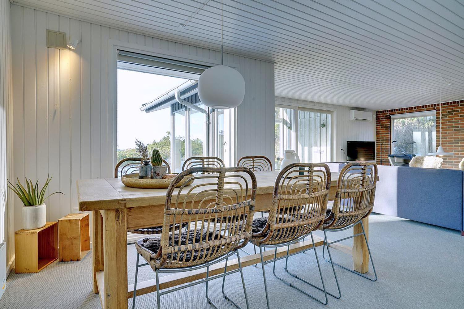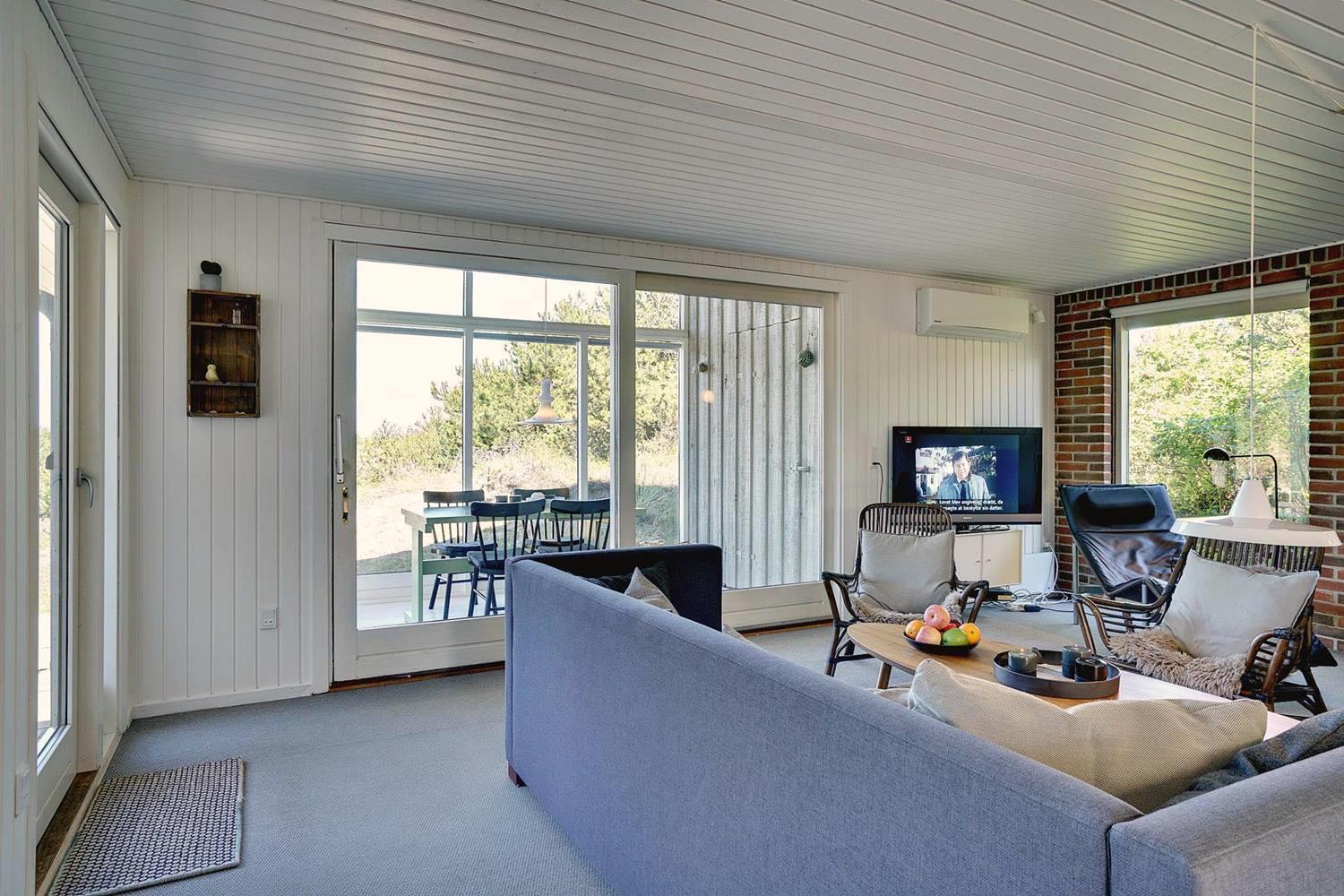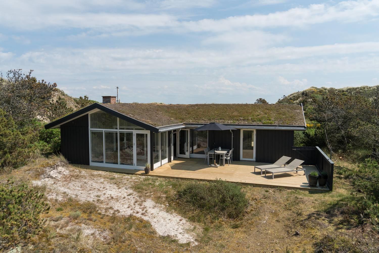 Wenn Sie sich danach sehnen, Ihren nächsten Urlaub und Ihr nächstes Wochenende in einer malerischen Umgebung zu verbringen, ist dieses Ferienhaus in Henne Strand möglicherweise Ihr Traumziel. Das Haus liegt auf einem herrlichen abgelegenen Dünengrundstück, und ein offenes Naturgebiet ist das einzige, was zwischen dem Grundstück und dem kreideweißen Sandstrand liegt. Wenn Sie genug von der Natur haben, können Sie nach drinnen gehen, wo der Holzofen, die große Fensterfront und die Holzverkleidung an den Wänden den perfekten Rahmen für den Urlaub bilden.