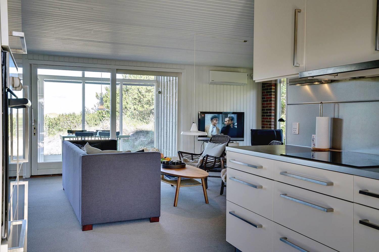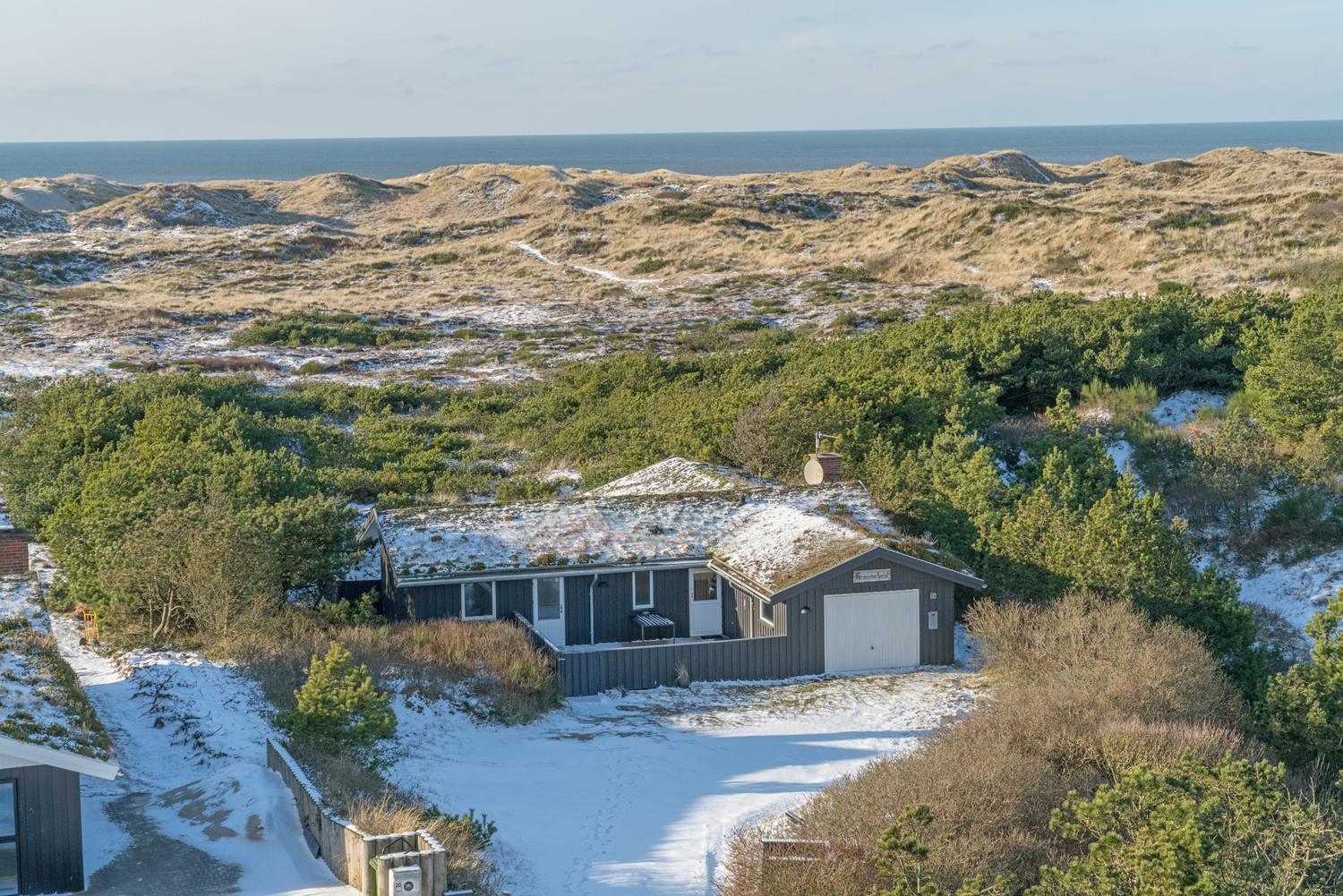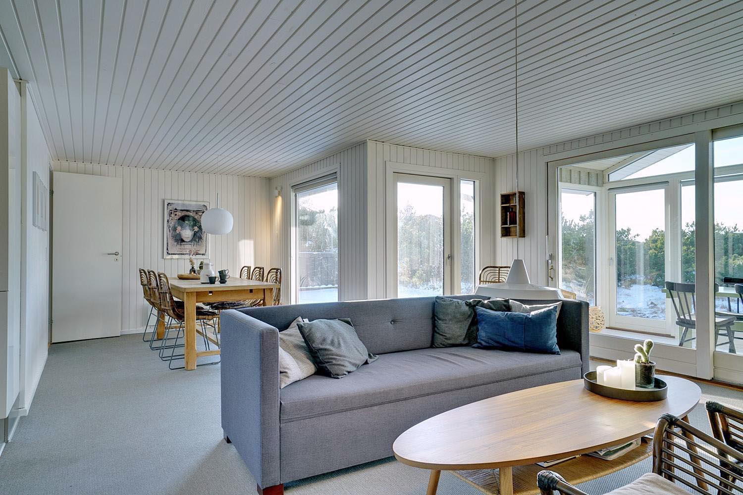 Wenn Sie sich danach sehnen, Ihren nächsten Urlaub und Ihr nächstes Wochenende in einer malerischen Umgebung zu verbringen, ist dieses Ferienhaus in Henne Strand möglicherweise Ihr Traumziel. Das Haus liegt auf einem herrlichen abgelegenen Dünengrundstück, und ein offenes Naturgebiet ist das einzige, was zwischen dem Grundstück und dem kreideweißen Sandstrand liegt. Wenn Sie genug von der Natur haben, können Sie nach drinnen gehen, wo der Holzofen, die große Fensterfront und die Holzverkleidung an den Wänden den perfekten Rahmen für den Urlaub bilden.