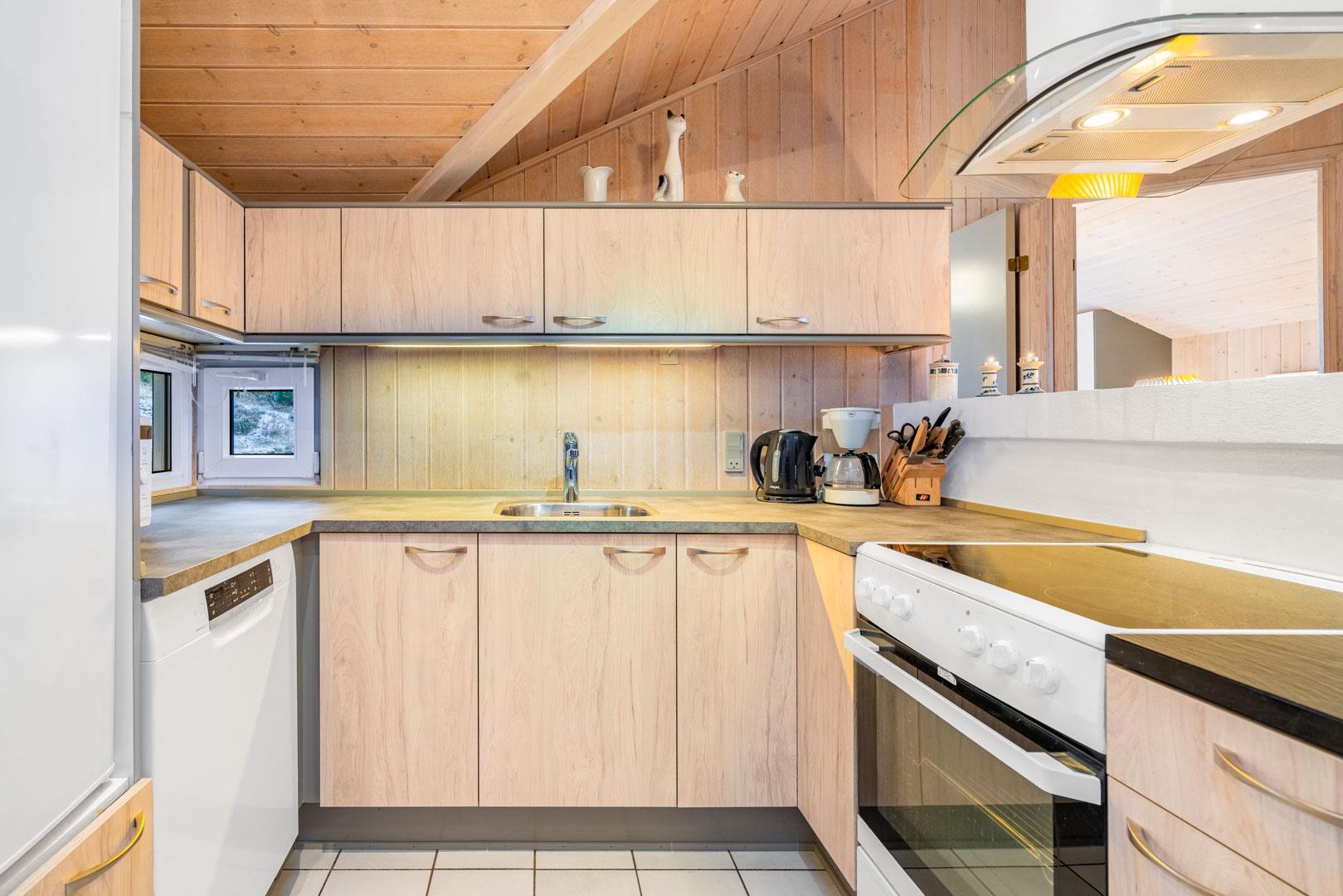 Im Ferienhaus finden Sie eine schöne und gut ausgestattete Küche, die in offener Verbindung zum Wohnzimmer liegt. So kommt der Familienzusammensein auch dann nicht zu kurz, wenn man für das Kochen verantwortlich ist. .