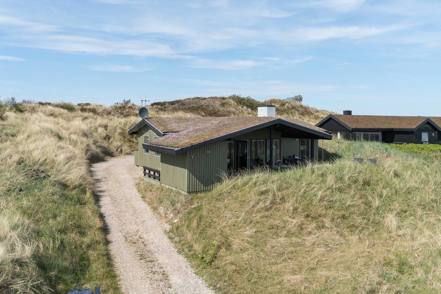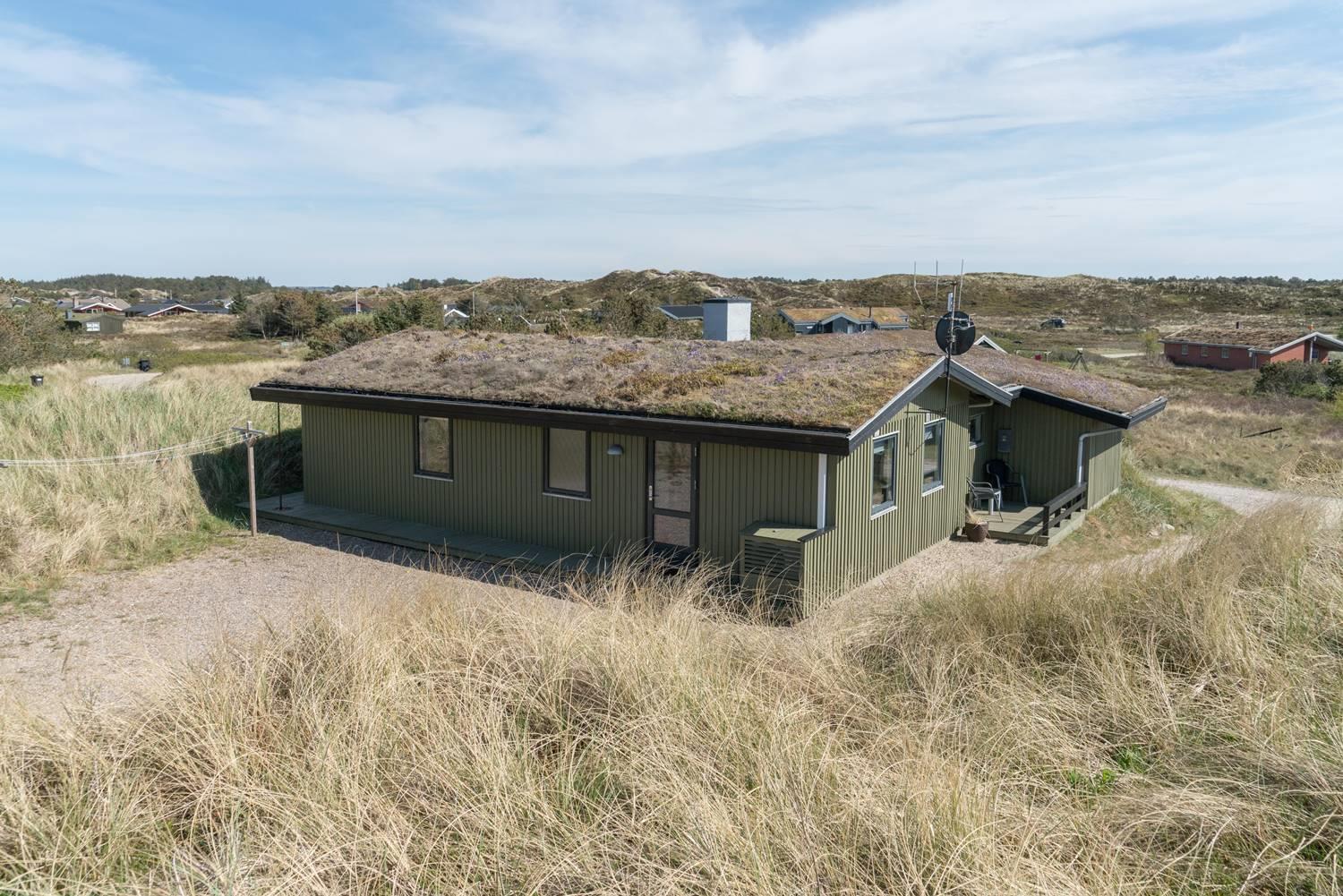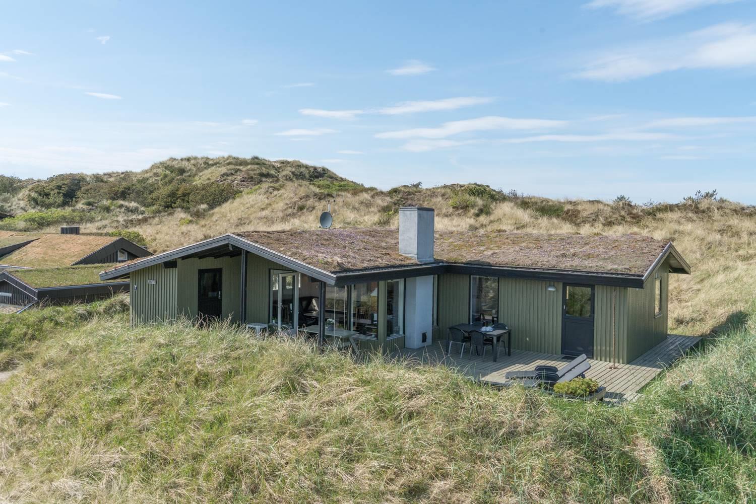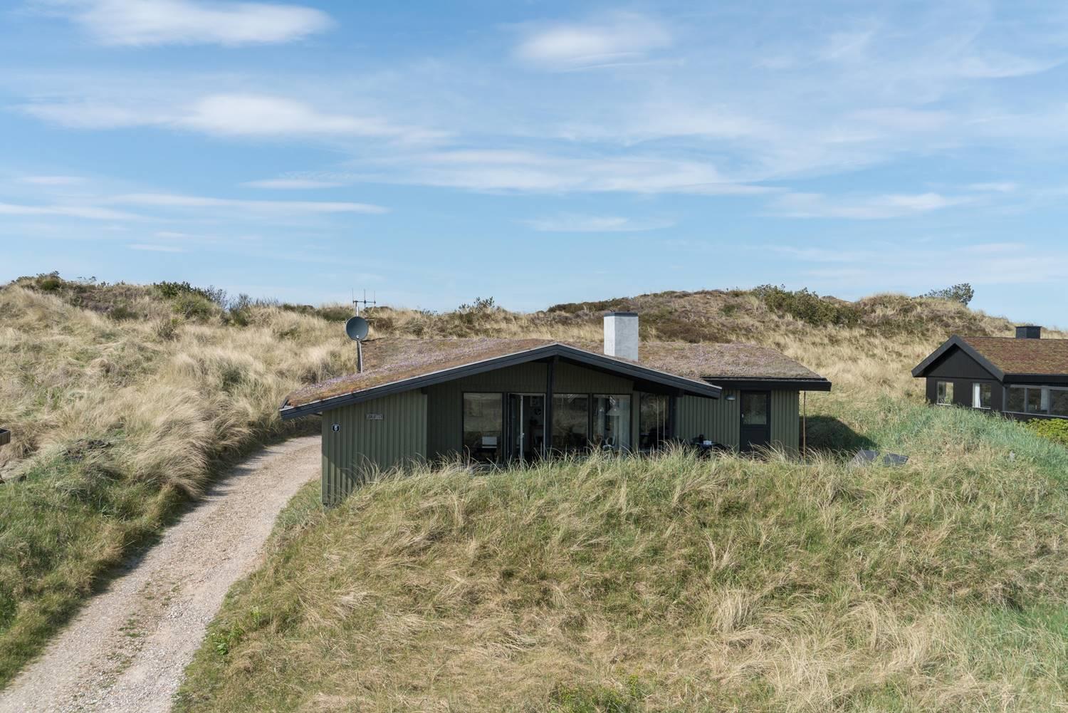 Das gepflegte, schöne Ferienhaus mit Grasdach liegt direkt an einer hohen Düne auf einem prachtvollen, hügeligen und nach Süden gerichteten Grund. Die Umgebung ist ruhig. Das Haus ist mit guten Möbeln ausgestattet. Vom Wohnraum und den Terrassen kann man die herrliche Aussicht und die Natur ringsum genießen. Das Haus wurde laufend renoviert.