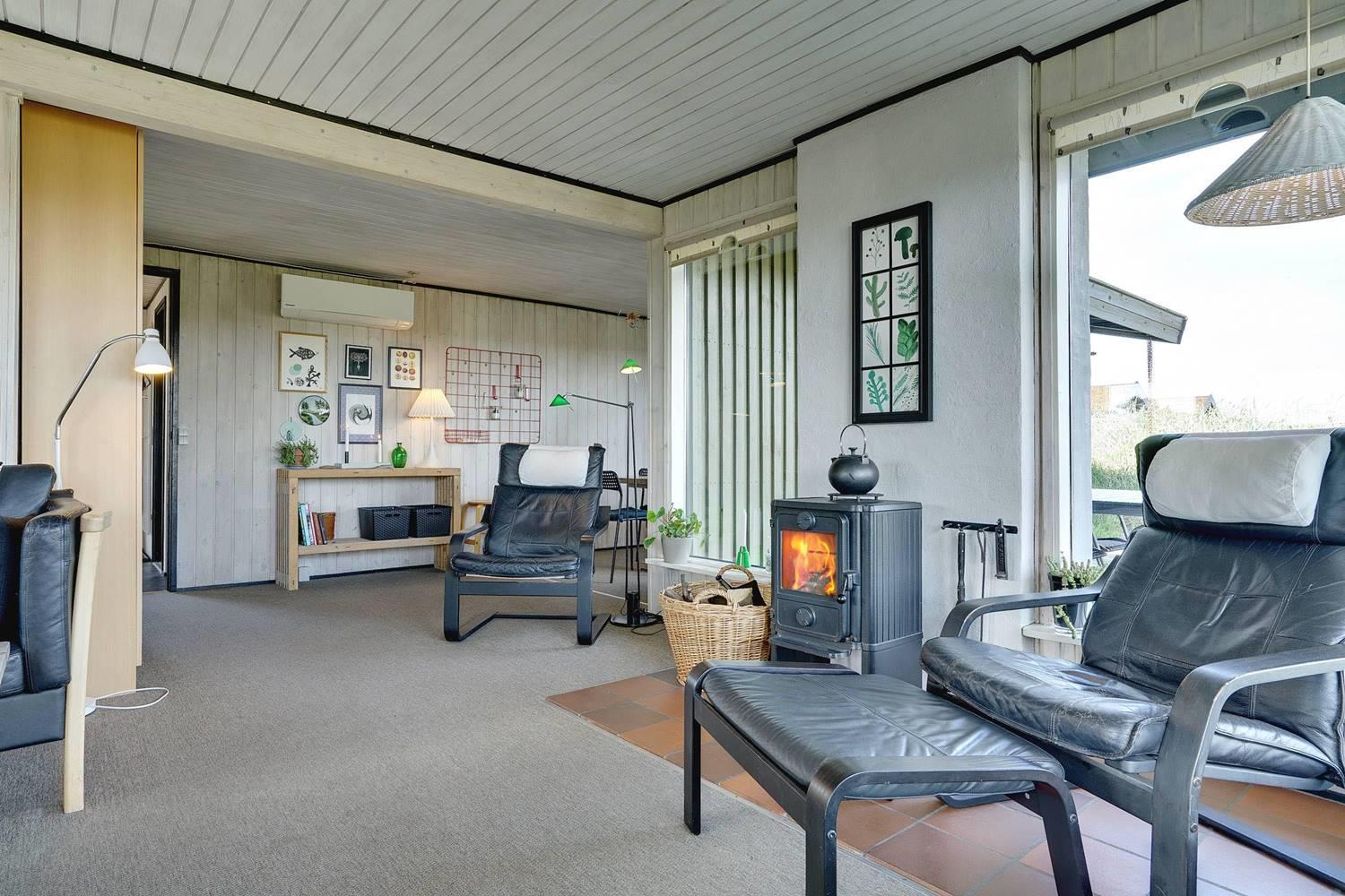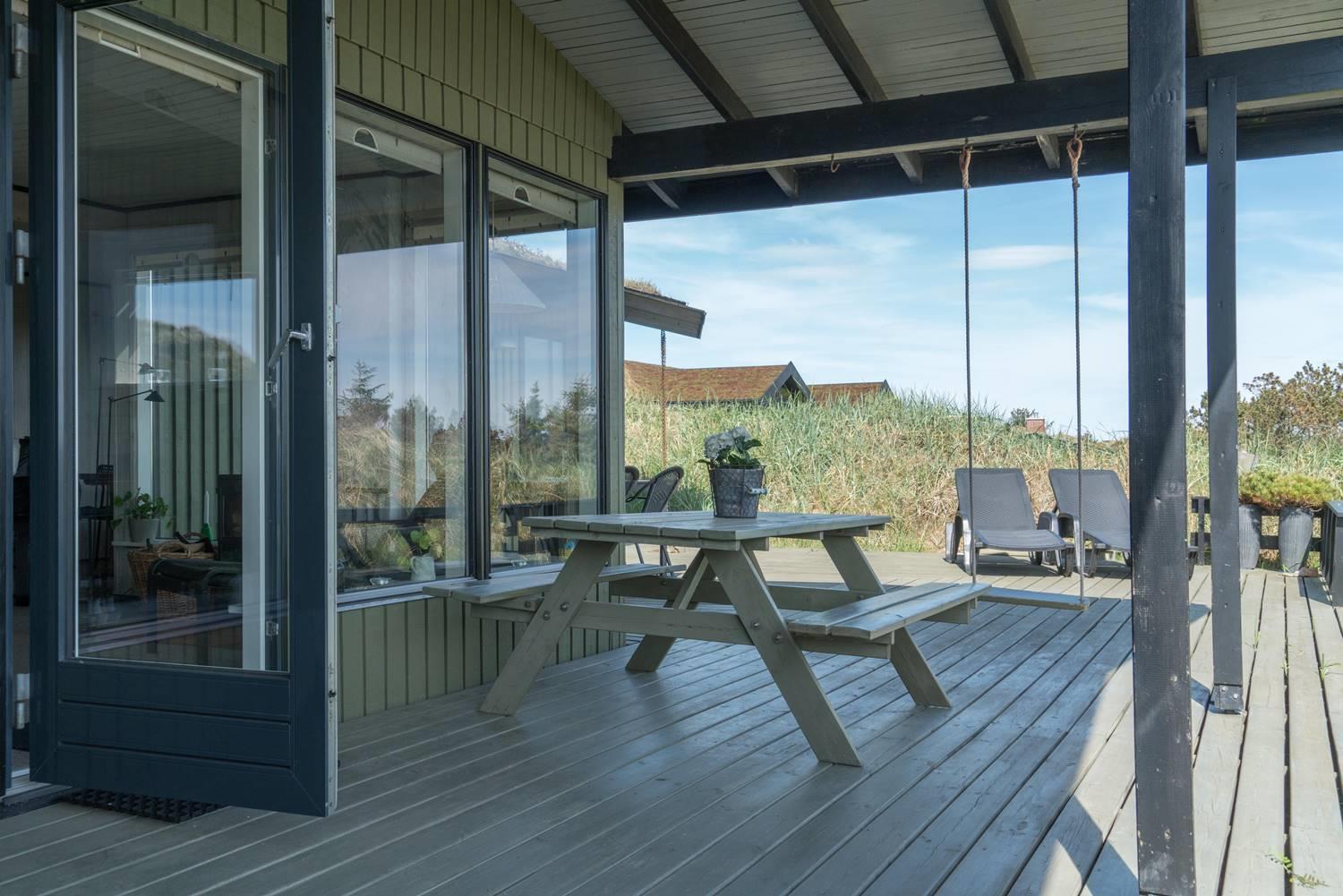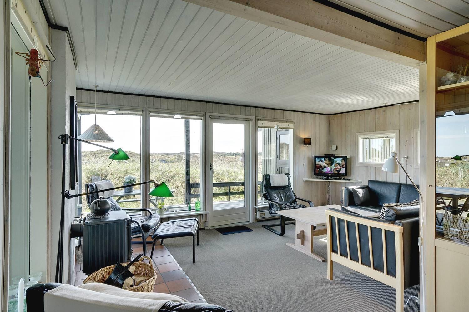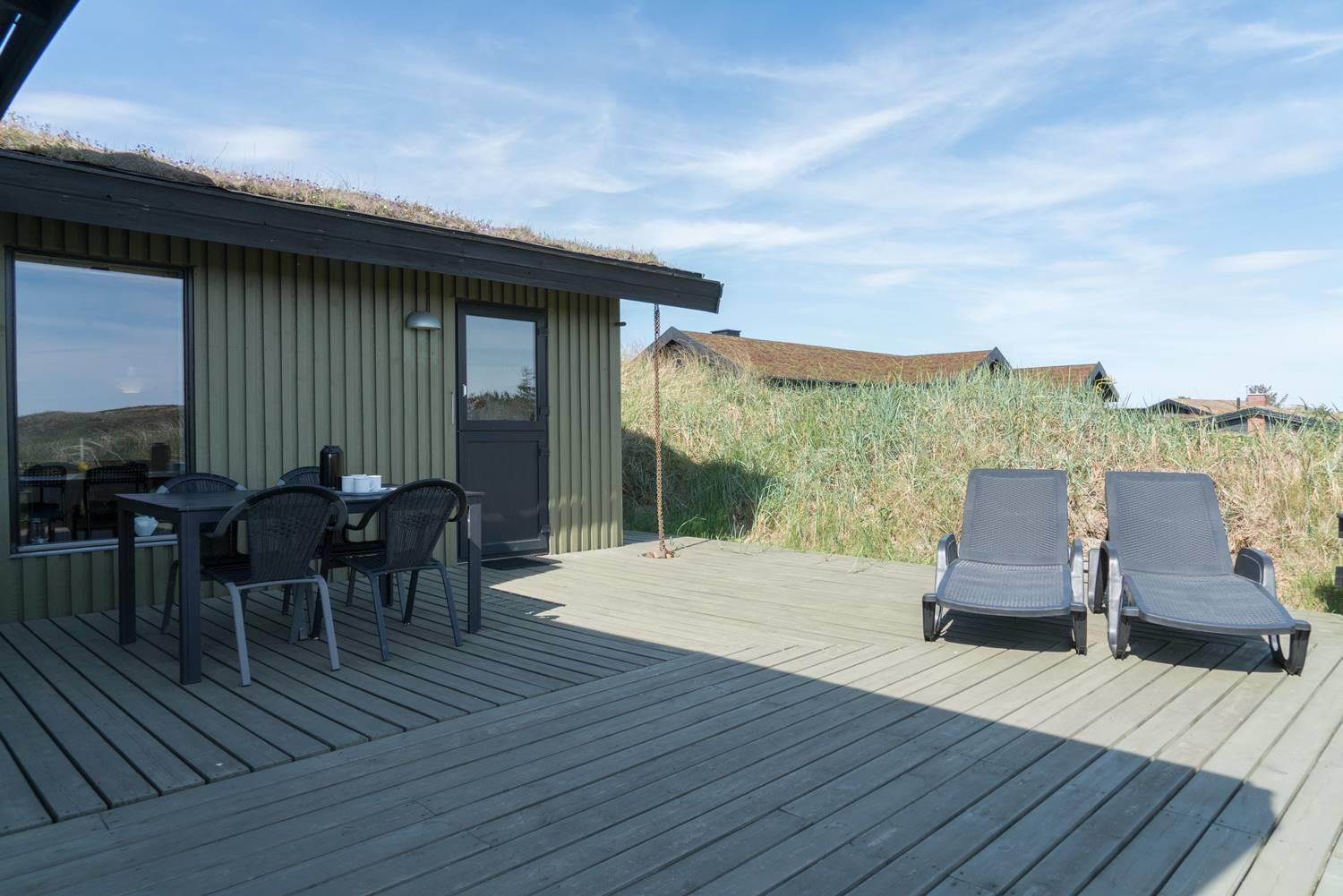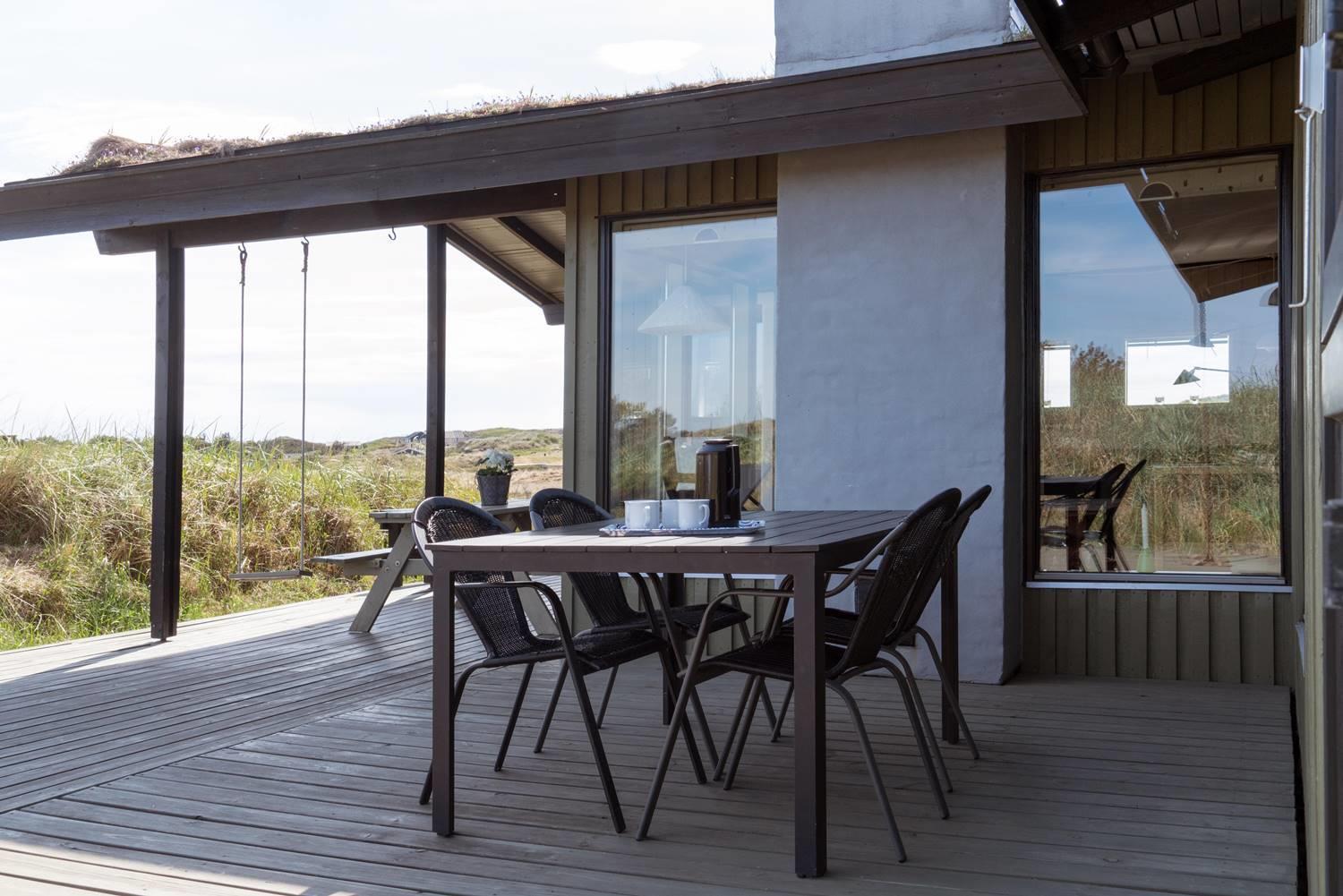Das gepflegte, schöne Ferienhaus mit Grasdach liegt direkt an einer hohen Düne auf einem prachtvollen, hügeligen und nach Süden gerichteten Grund. Die Umgebung ist ruhig. Das Haus ist mit guten Möbeln ausgestattet. Vom Wohnraum und den Terrassen kann man die herrliche Aussicht und die Natur ringsum genießen. Das Haus wurde laufend renoviert.