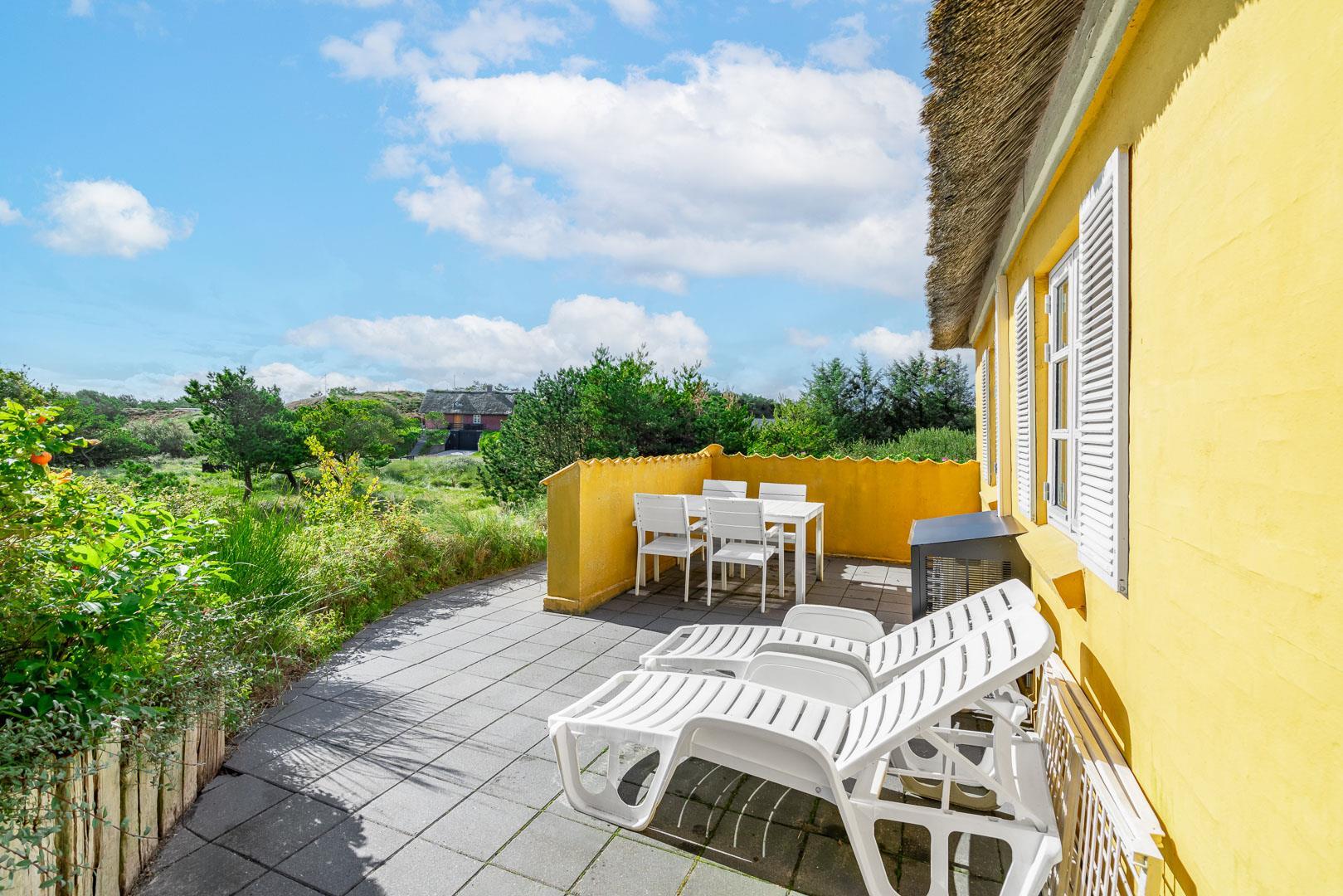 Gemütliches Reetdachhaus in Henne Strand mit herrlichem Dünenblick und ungestörter Terrasse.