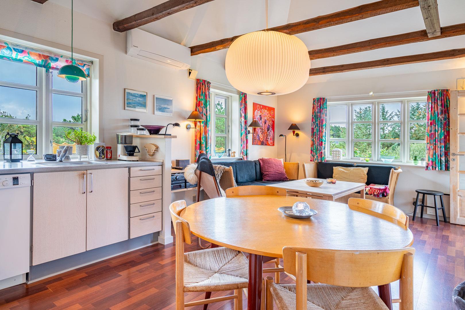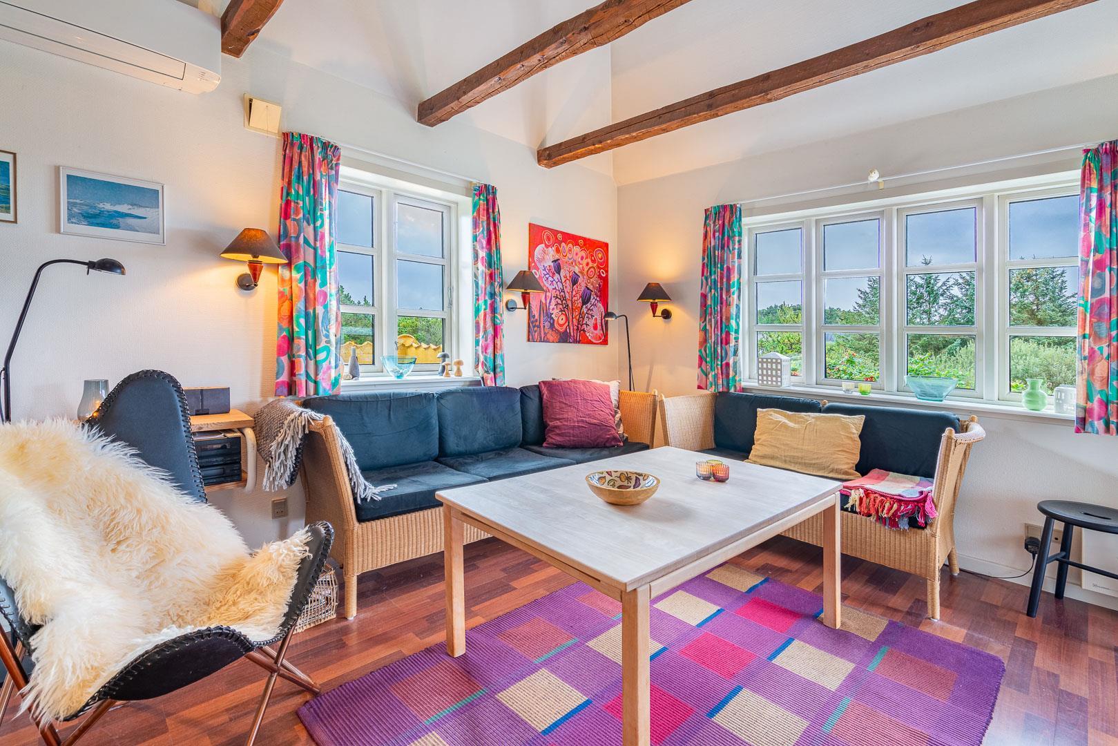 Auf einem tollen, ungestörten und hügeligen Naturgrund liegt dieses gemütliche Reetdachferienhaus. Die Küche ist mit dem Wohnbereich kombiniert. Im Haus befindet sich ein Hems (Hängeboden). Vom Wintergarten aus hat man einen hübschen Ausblick auf die Umgebung. Zum Haus gehört eine schöne, ungestörte Terrasse. Bitte beachten: Das Internet ist nicht zum streamen/Downloaden großer Datenmengen geeignet.