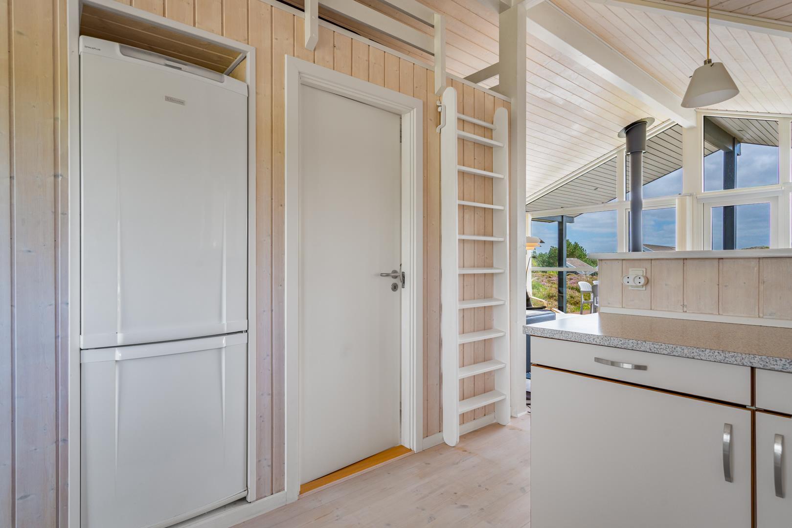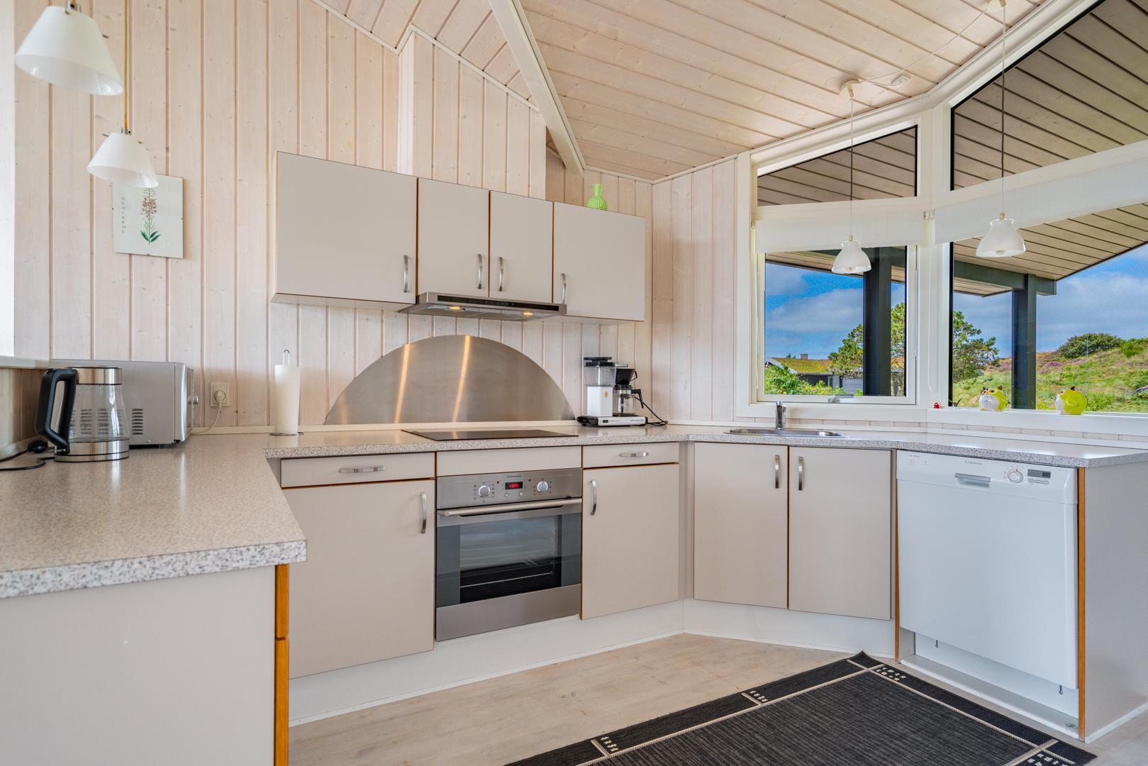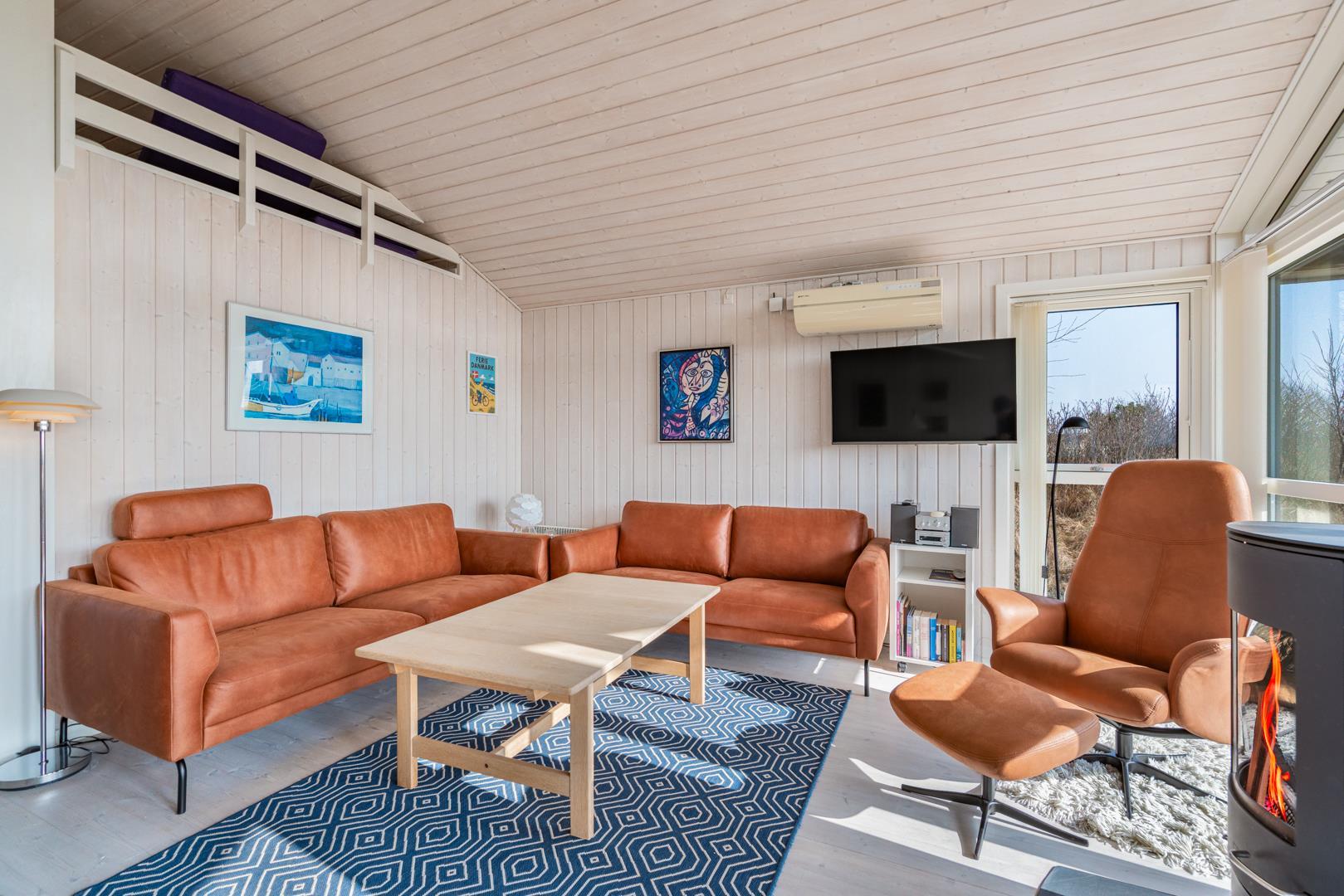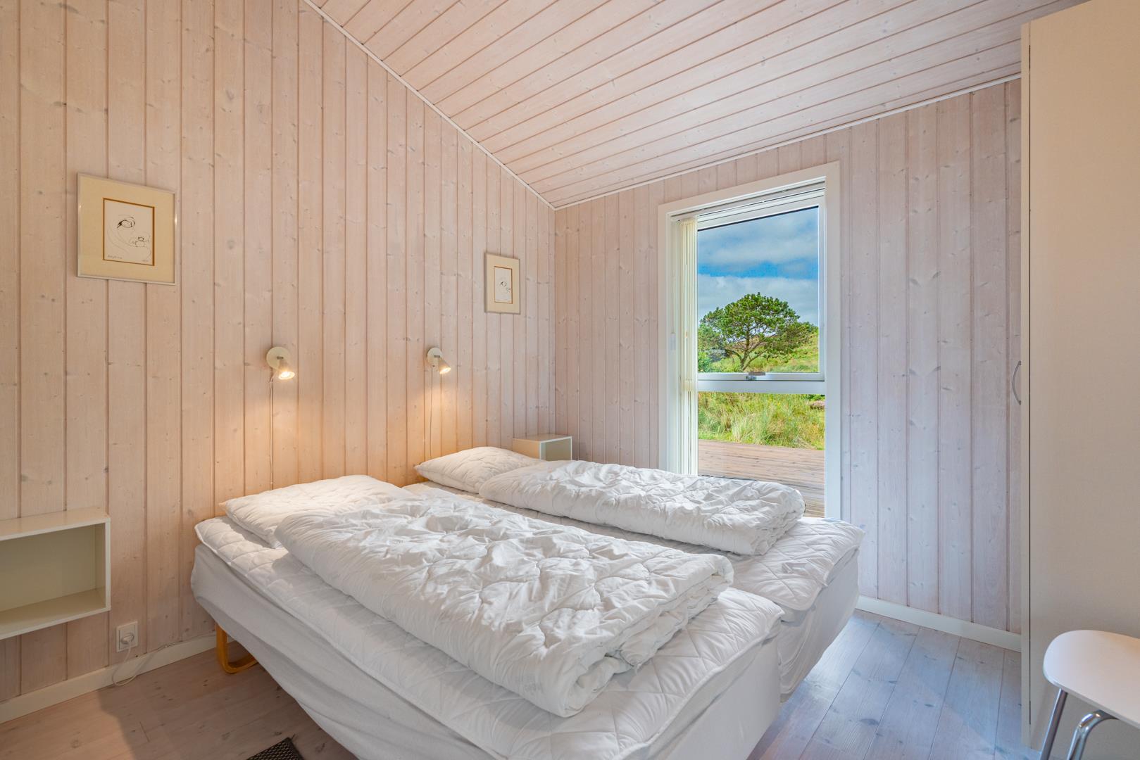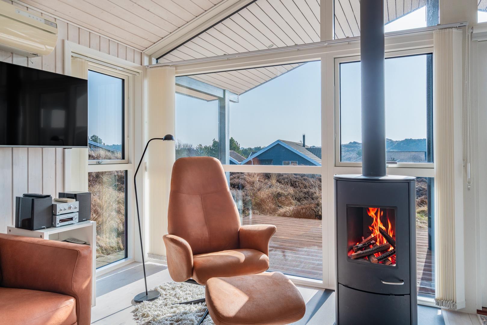 Große Fenster sorgen für viel Tageslicht und geben den Blick auf die Dünen frei. Der offene Wohnbereich mit Kamin schafft eine warme, einladende Atmosphäre, während die Wärmepumpe effizient für angenehme Temperaturen sorgt – ganz gleich zu welcher Jahreszeit. Euch erwarten insgesamt drei Schlafzimmer: zwei mit Doppelbetten & eines mit zwei Einzelbetten. Besonders praktisch ist der zusätzliche Hems – ein gemütlicher Schlaf- oder Rückzugsplatz, der vor allem bei Kindern beliebt ist.
