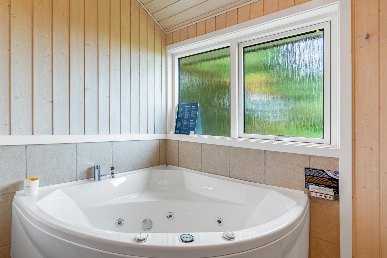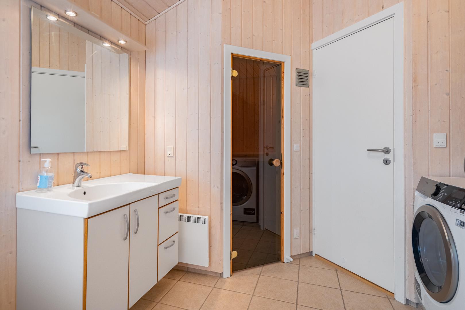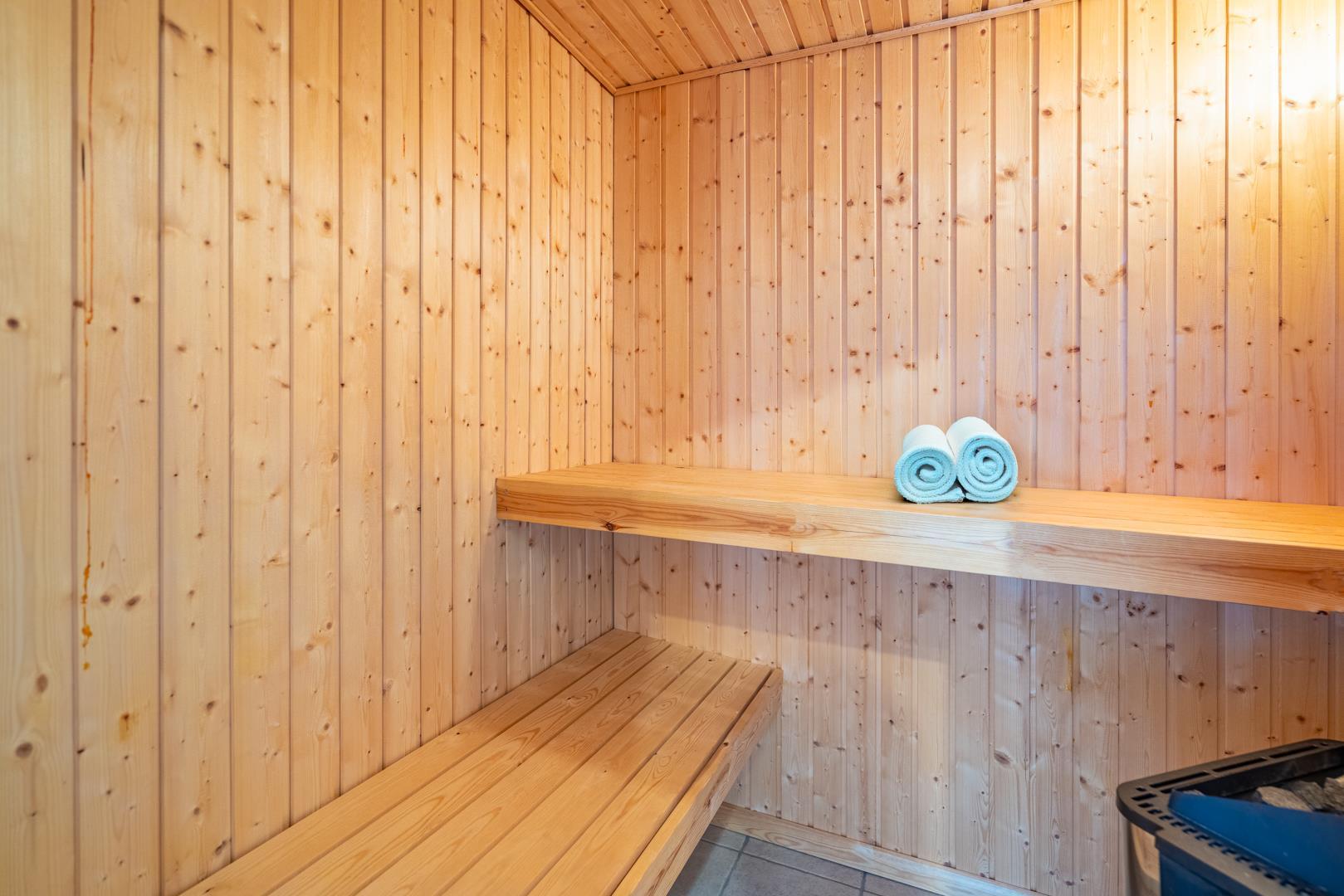 Das Badezimmer ist mehr als nur funktional: Hier erwartet euch eine kleine Oase mit eigener Sauna und einem Whirlpool – perfekt, um nach einem aktiven Tag in der Natur zu entspannen. Praktisch sind auch die Waschmaschine, Trockner und der Safe, die den Aufenthalt noch komfortabler machen.
