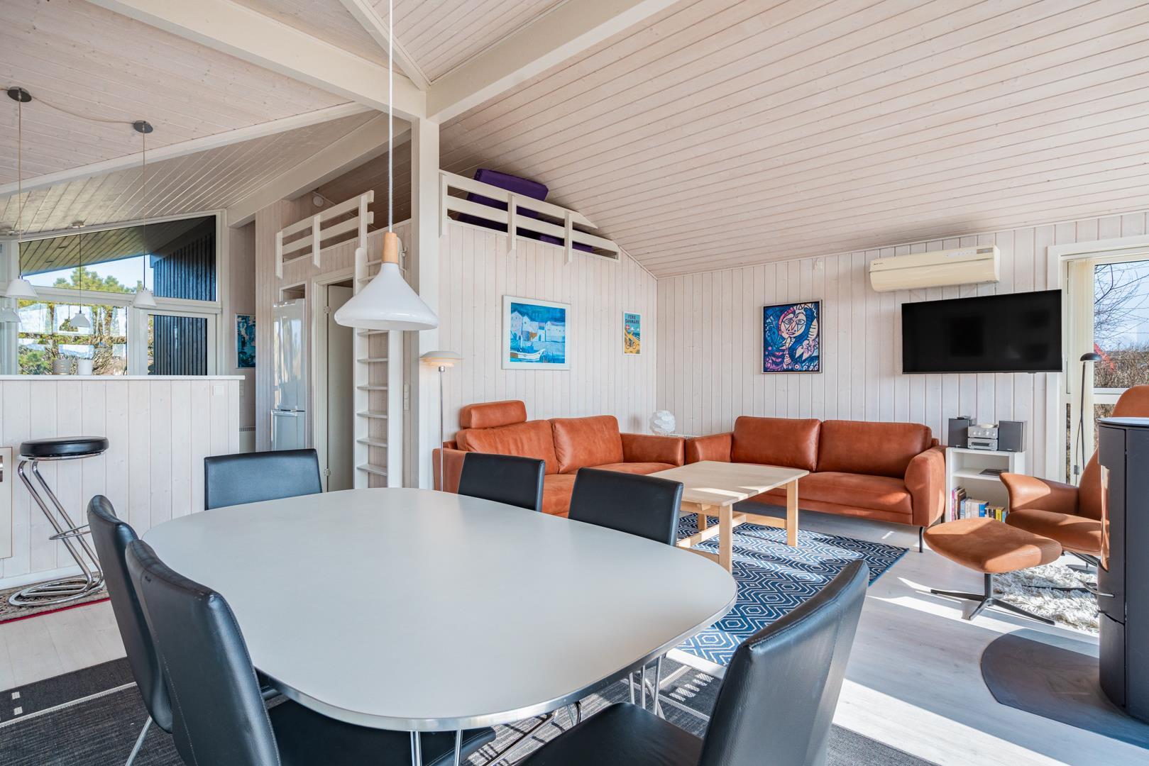Wer auf der Suche nach einem modernen, gut ausgestatteten Ferienhaus in Henne Strand für bis zu 6 Personen ist, wird sich in diesem charmanten Ferienhaus sofort zuhause fühlen. Die 92?m² Wohnfläche sind optimal auf Erholung und skandinavische Gemütlichkeit ausgelegt – mit Kamin, Sauna, Whirlpool und einem traumhaften Blick in die Dünen.