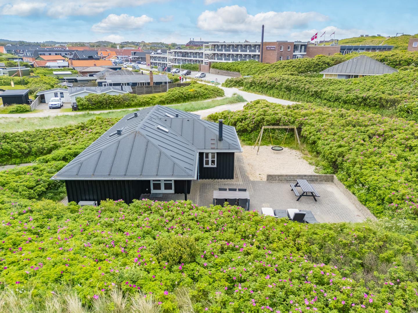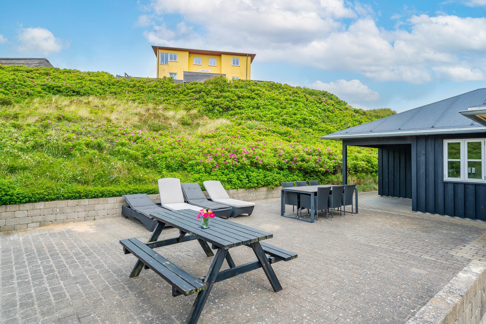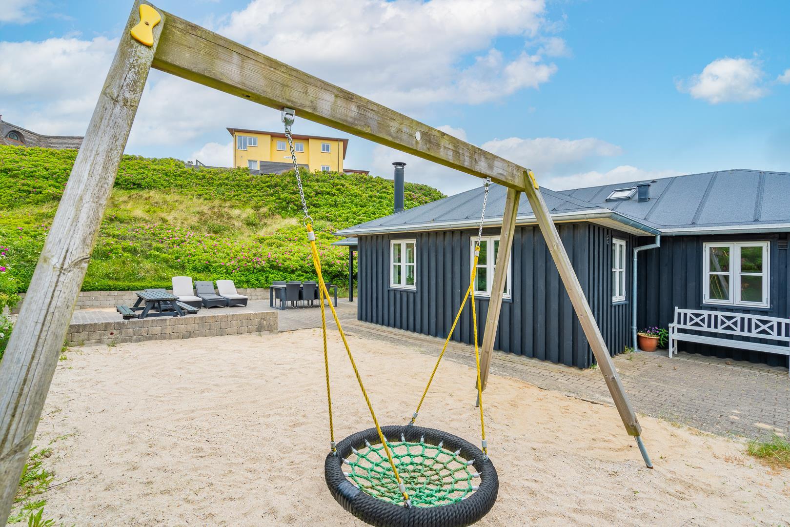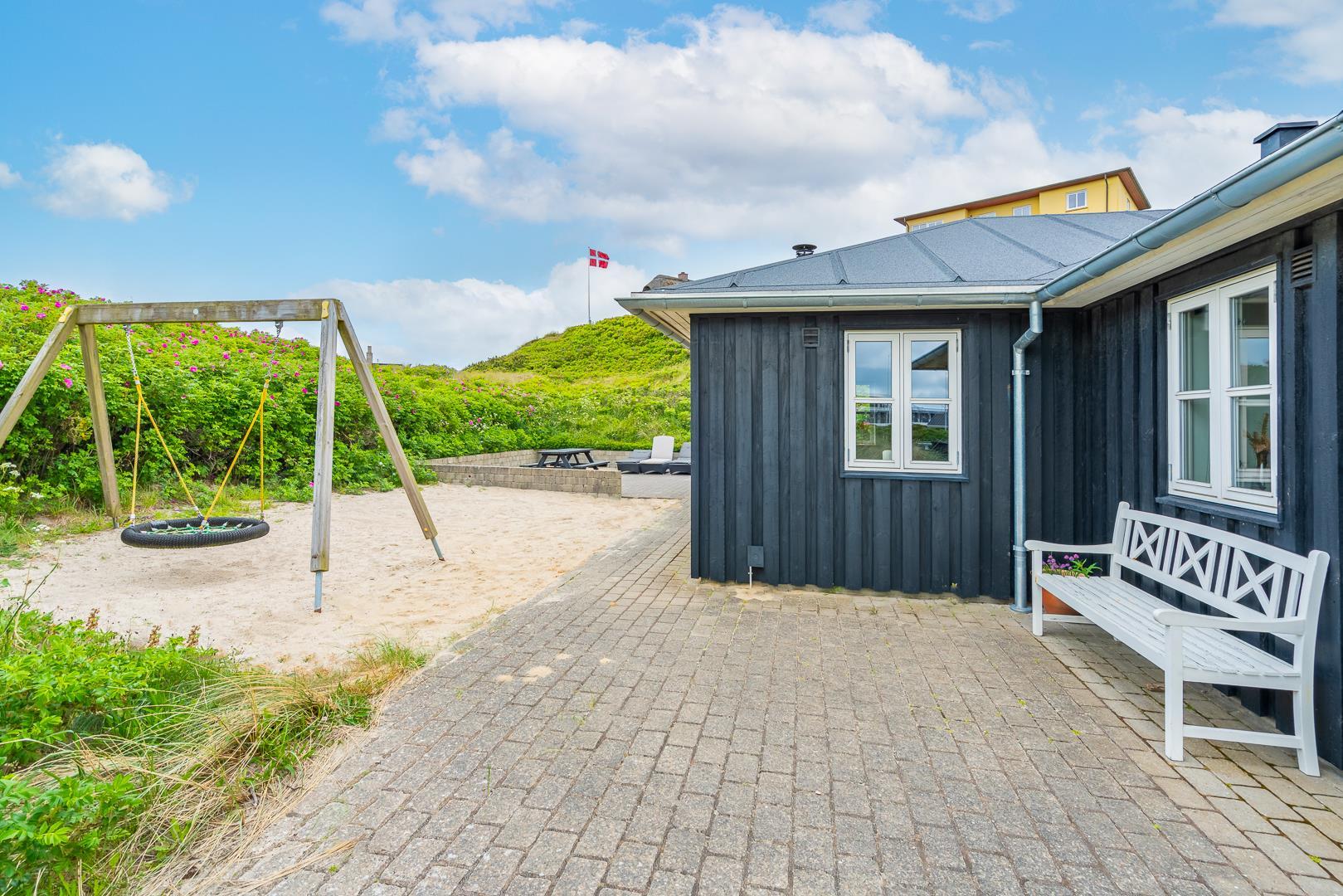 Willkommen in diesem wunderbaren und gemütlich eingerichteten Ferienhaus in Henne Strand, dass die perfekte Kombination aus Stil und Funktionalität bietet. Ganz in der Nähe des Strandes und des Zentrums von Henne Strand gelegen, ist dieses Ferienhaus der ideale Rückzugsort für Ihren nächsten Urlaub. Jedes Zimmer hat eine gemütliche Atmosphäre und sorgt für ein angenehmes Urlaubserlebnis. Das gemütliche Wohnzimmer mit Holzofen und die herrliche Küche sind offen miteinander verbunden, und von hieraus aus man Zugang zu mehreren schönen Terrassen hat. Hier gibt es einen wirklich schönen Außenbereich, in dem Sie von morgens bis abends die Sonne genießen und die frische Luft tanken können. Von den Liegestühlen aus können Sie die Kinder beim Spielen im großen Sandkasten mit Schaukel und Schaukeltieren beaufsichtigen – perfekte Unterhaltung für die Kleinsten.