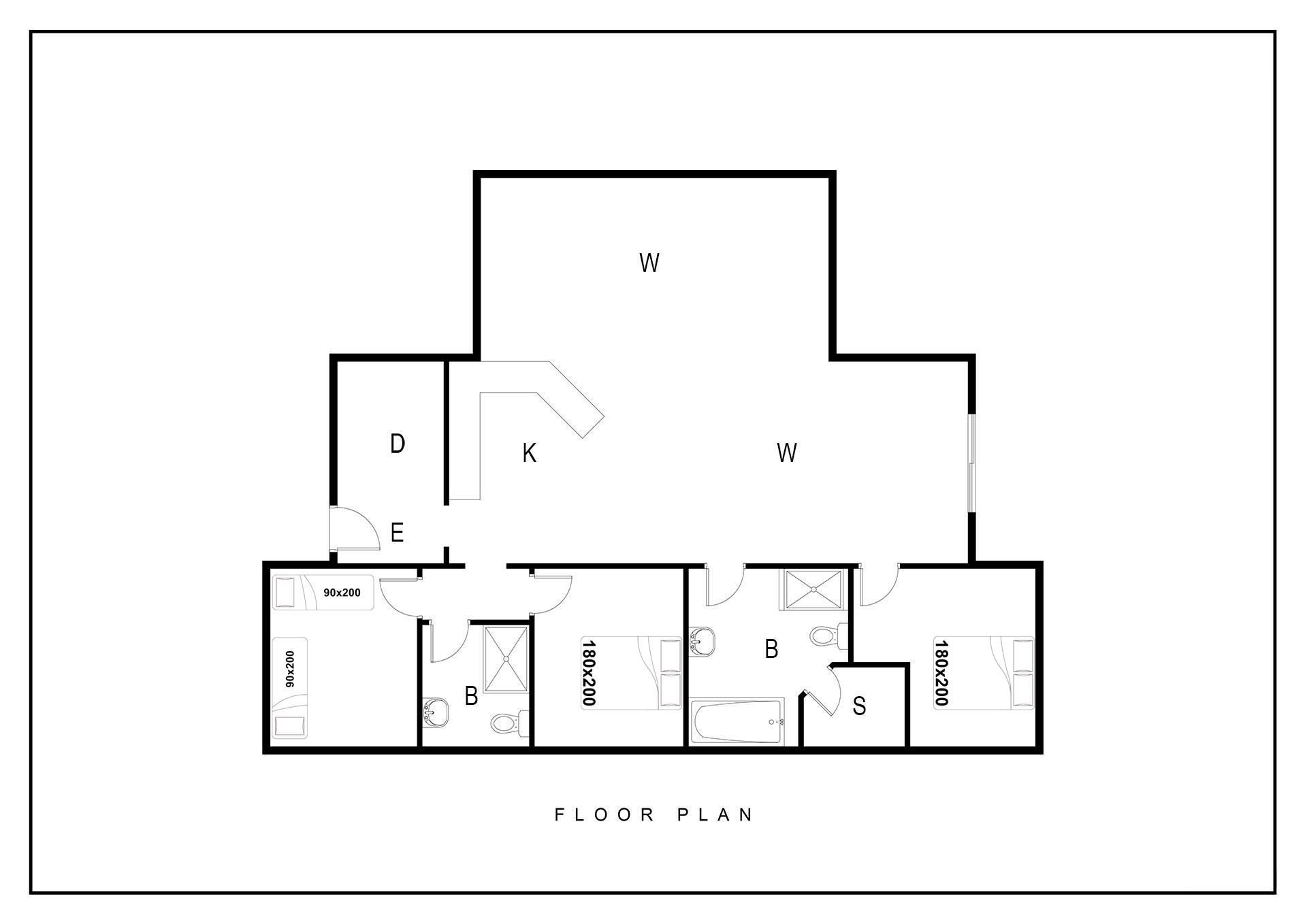Bettengrösse: 2 Doppelbetten 180 x 200 cm + 2 Einzelbetten 90 x 200 cm.