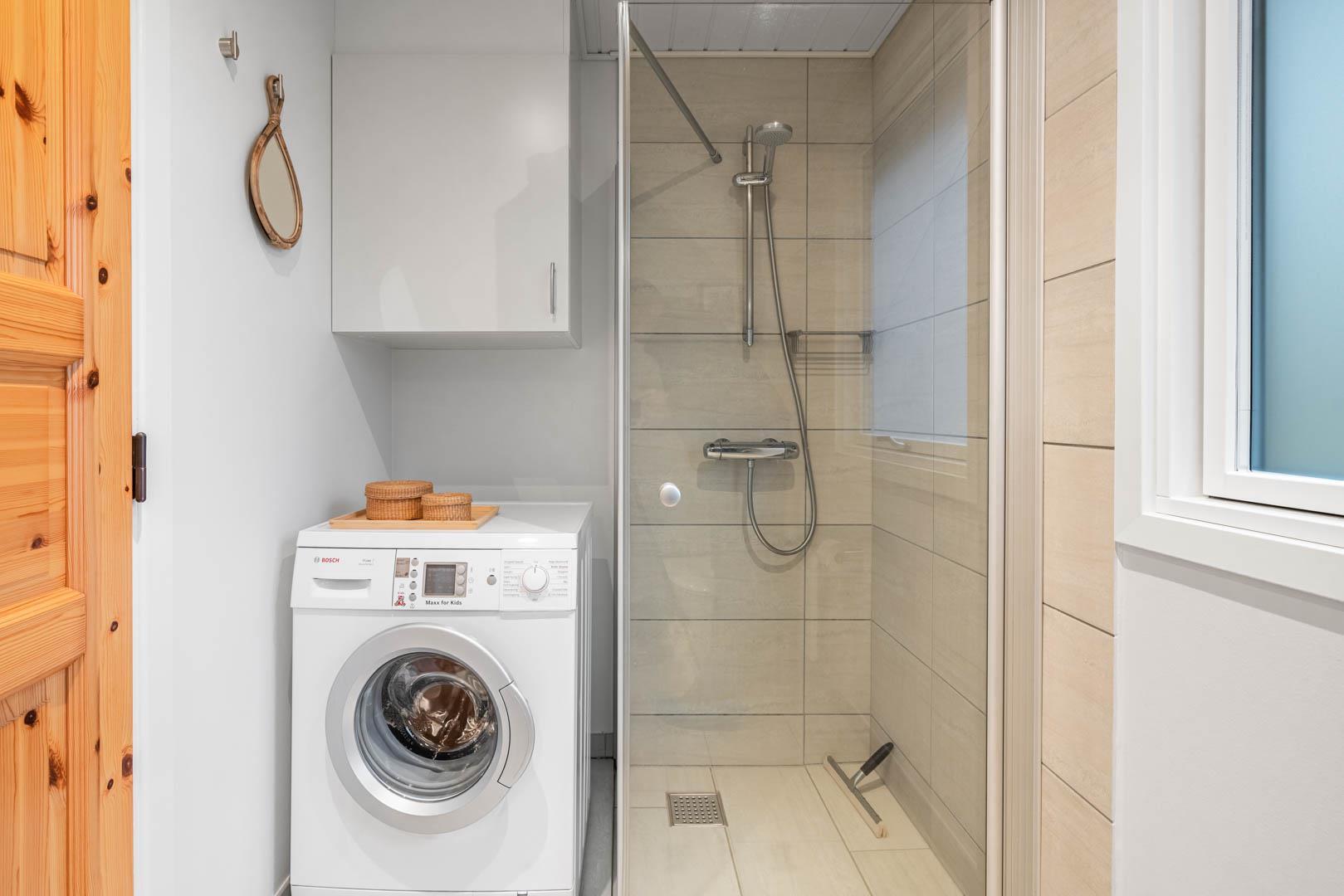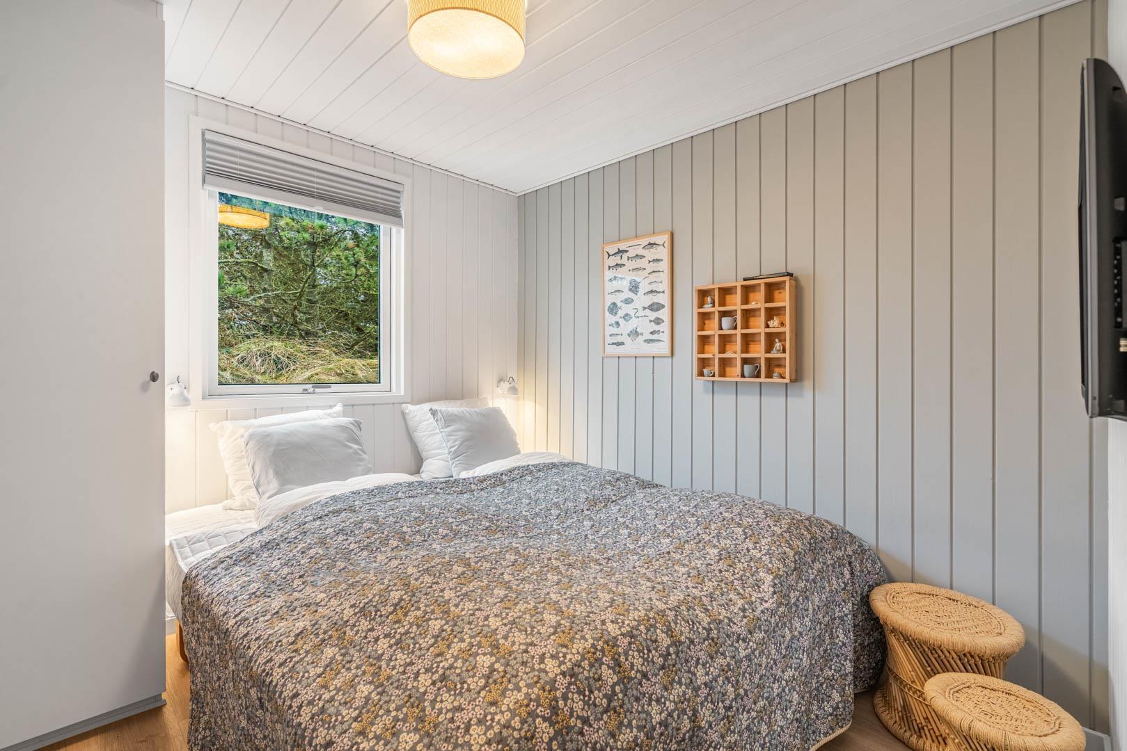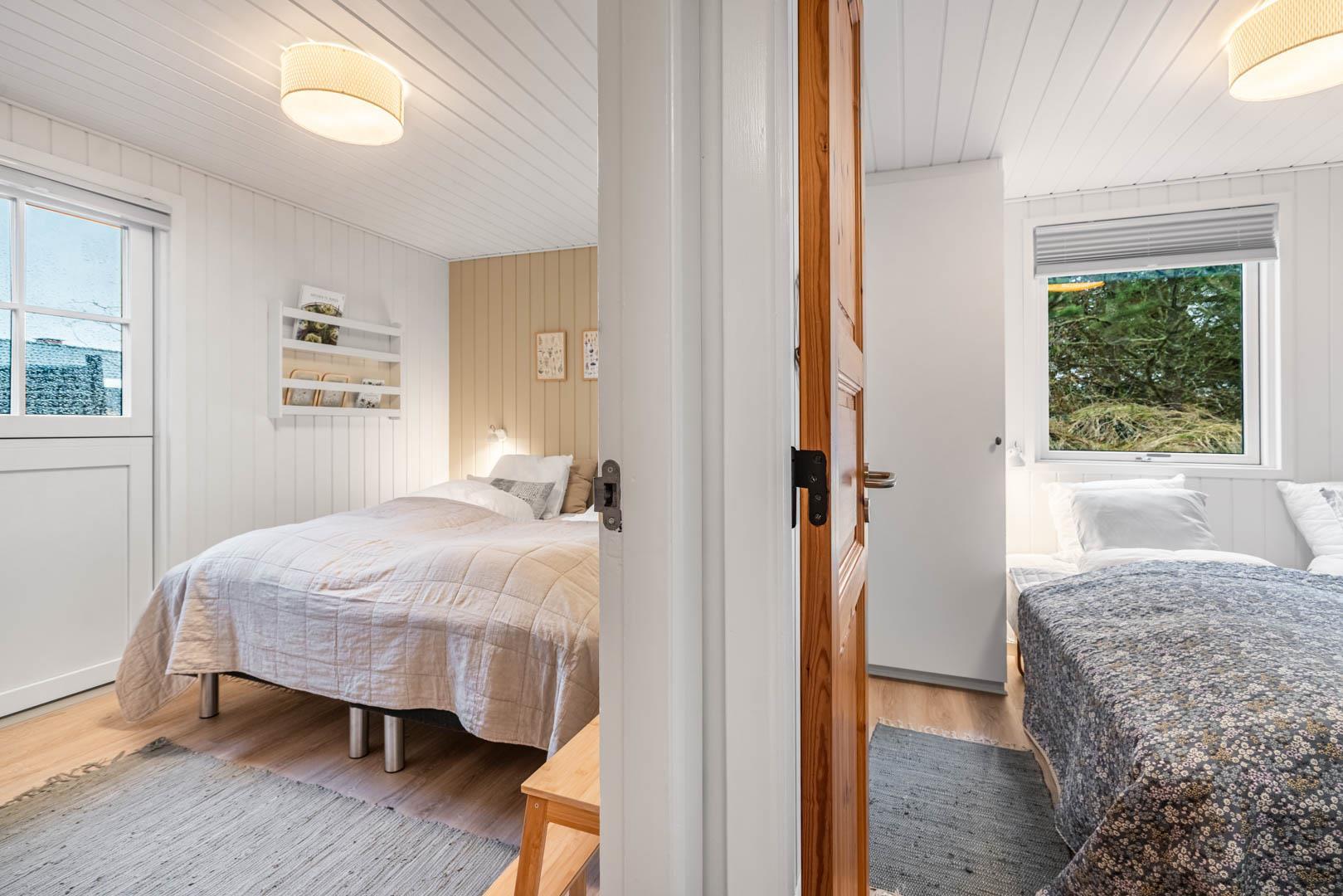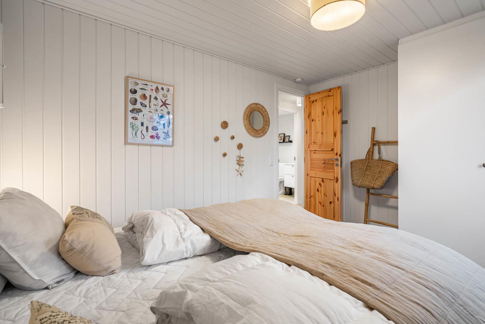 Das Ferienhaus verfügt über drei schöne Schlafzimmer. Zwei der Zimmer sind mit geräumigen Doppelbetten (180x200 cm, jeweils mit einer großen Matratze) eingerichtet, die viel Platz zum Entspannen bieten. Das dritte Zimmer ist mit zwei Einzelbetten (80x200 cm) ausgestattet, perfekt für Kinder und Erwachsene. Das Ferienhaus verfügt außerdem über ein funktionales Badezimmer, das alles Nötige enthält, einschließlich einer Waschmaschine, die den Aufenthalt praktisch und bequem macht.