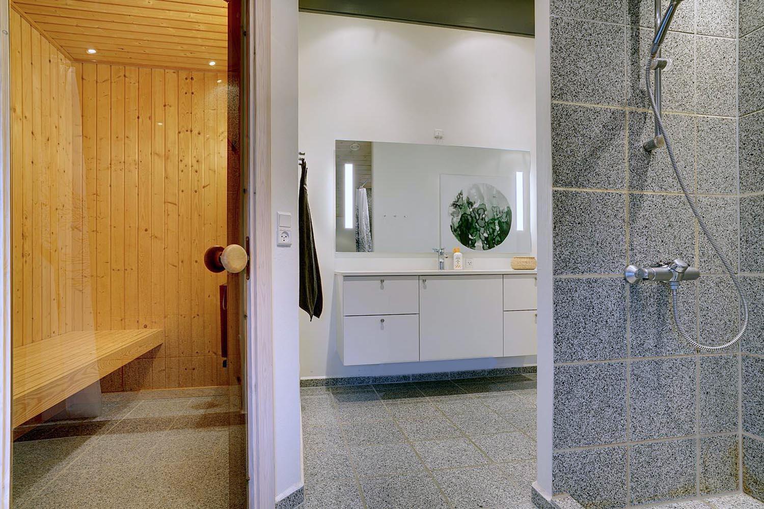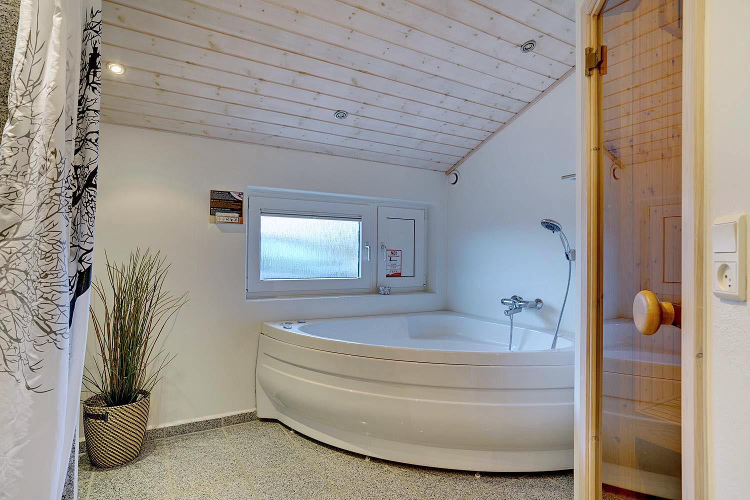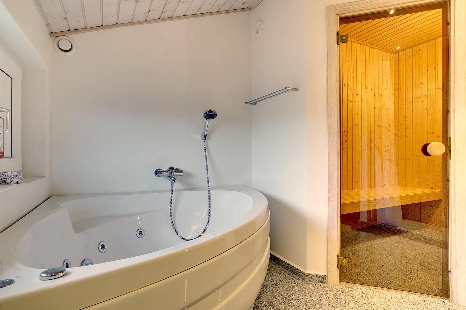Großes, schönes Badezimmer mit Whirlpool und Sauna sowie ein zusätzliches WC.