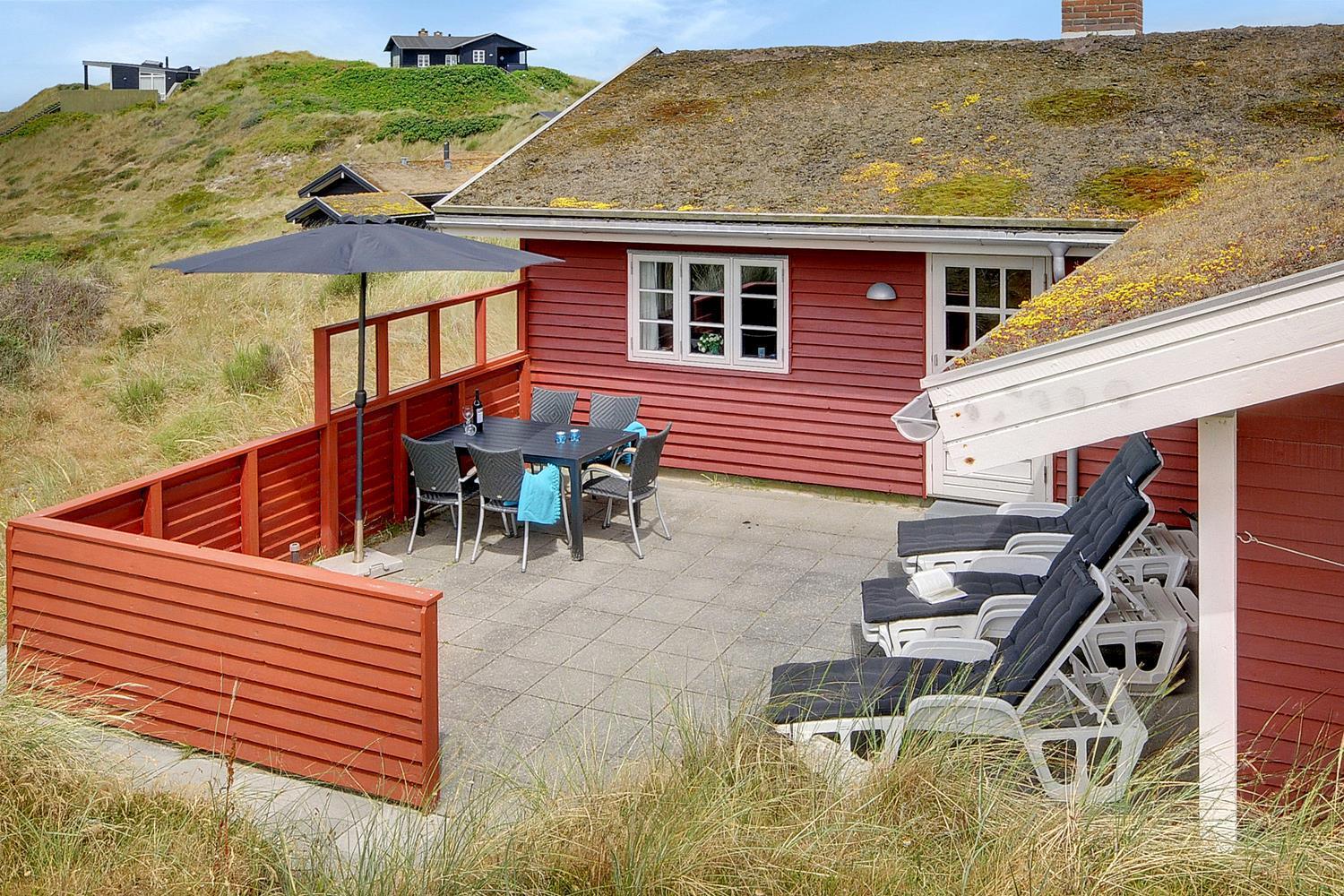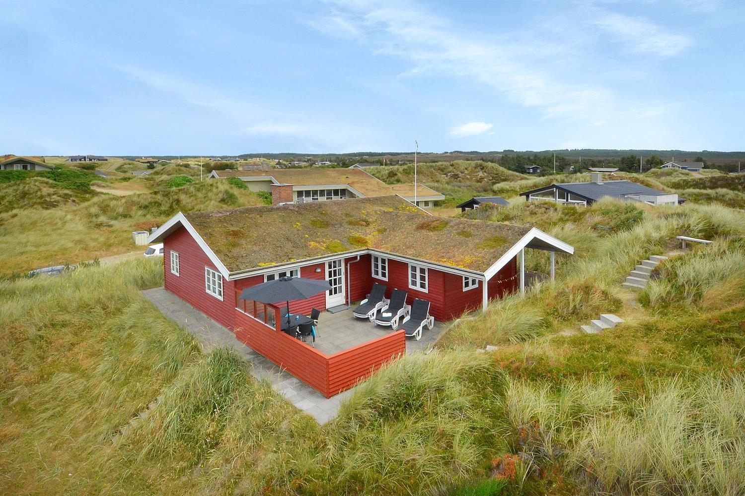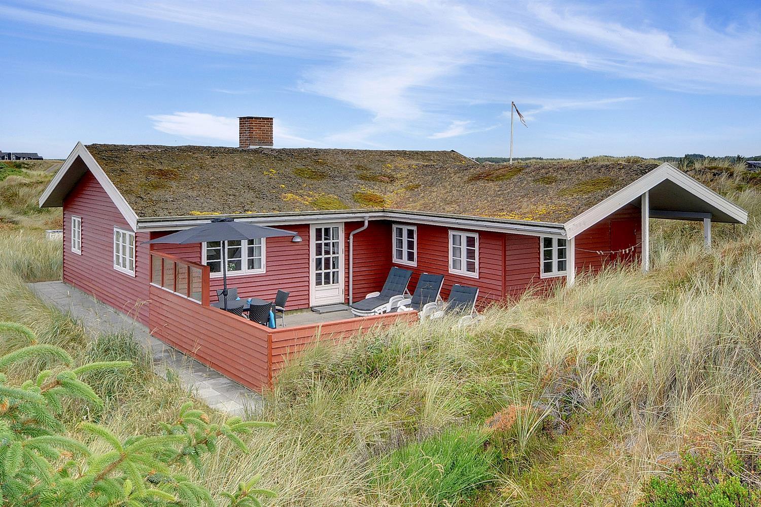 Auf einem prachtvollen, hügeligen Dünengrund dicht am Meer liegt dieses schöne, helle und nett eingerichtete Ferienhaus. Das Haus wurde laufend renoviert. Es verfügt über ein schönes Badezimmer mit Sauna sowie einen geräumigen mit der Küche kombinierten Wohnbereich. Vom Wohnzimmer aus hat man direkten Zugang zur schönen Terrasse, von der aus man die phantastische Aussicht über die Dünenlandschaft genießen kann.