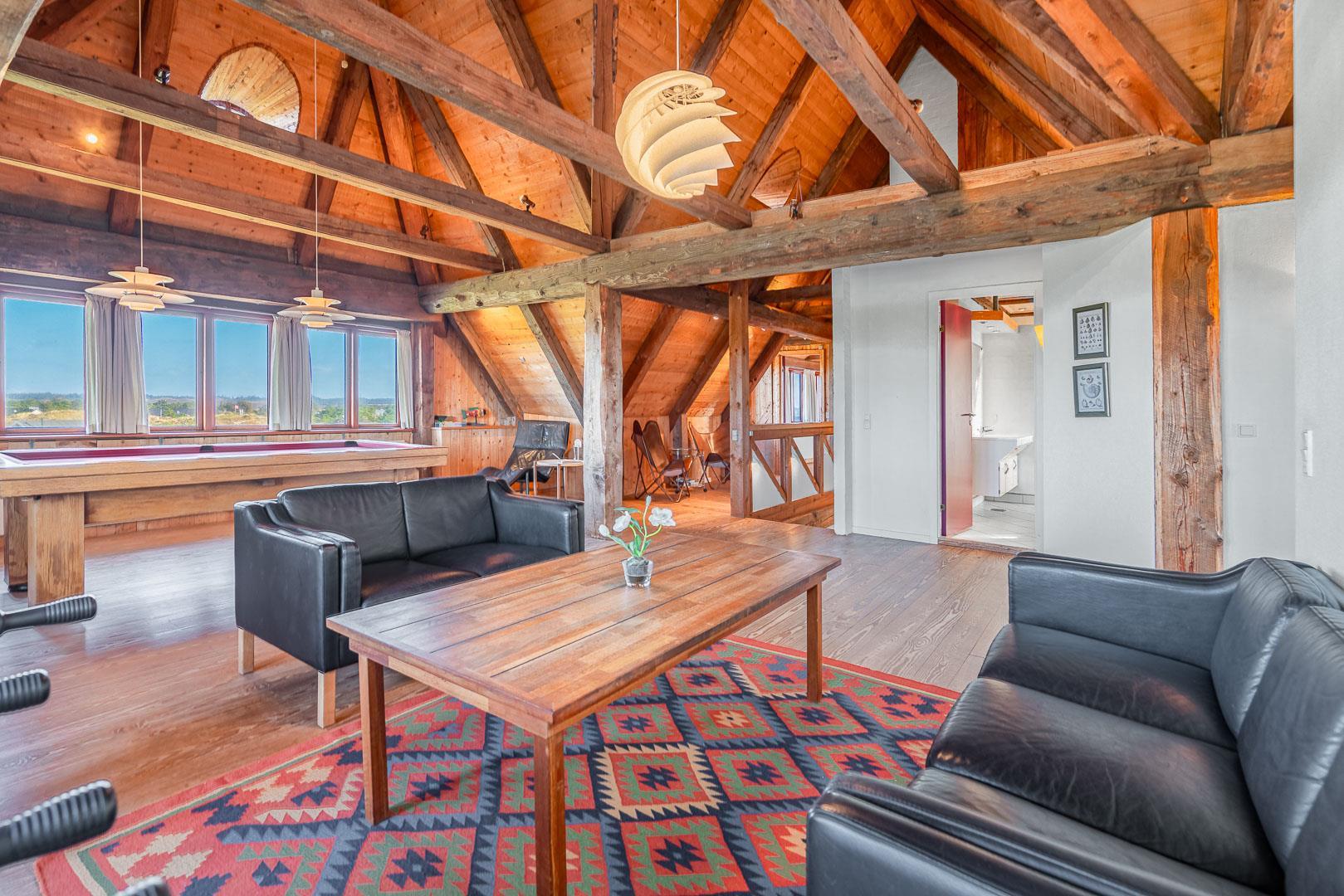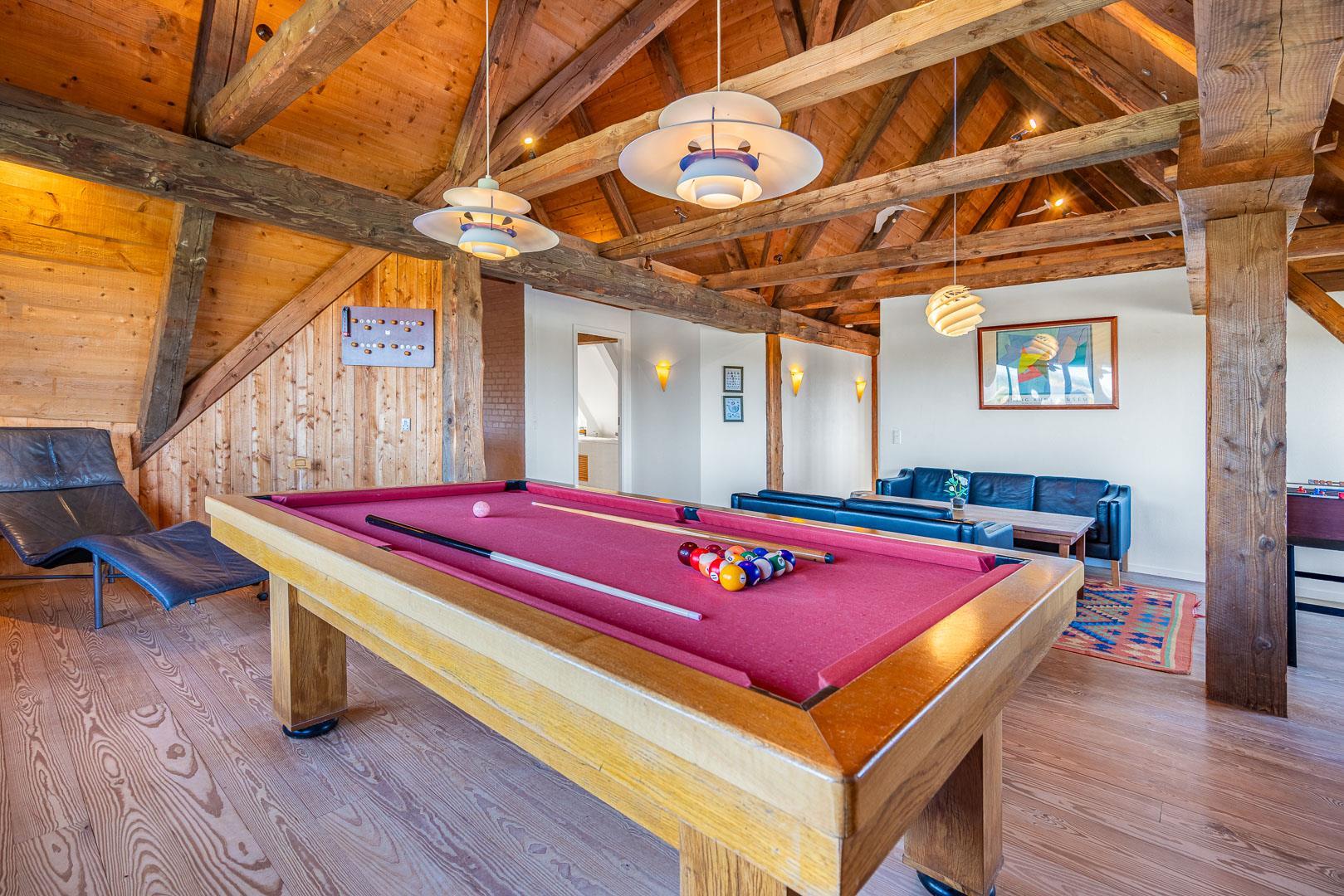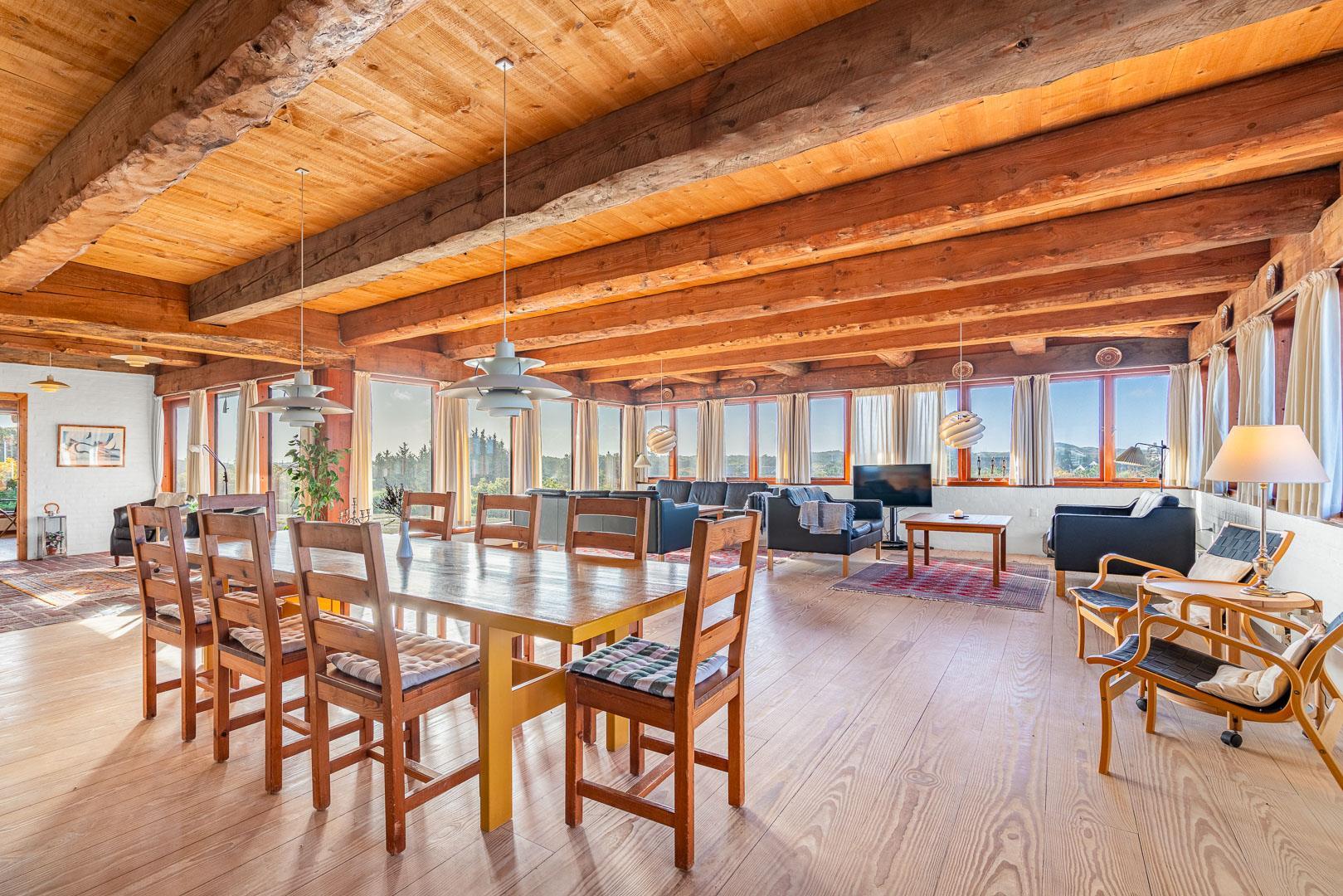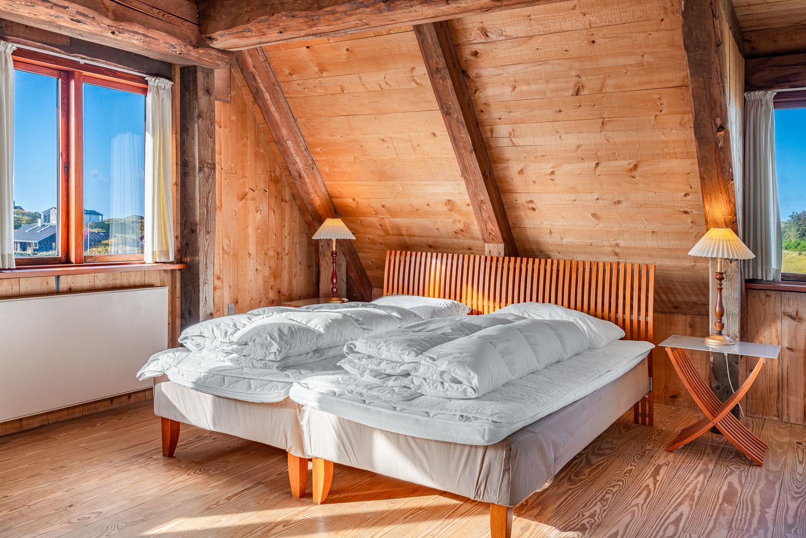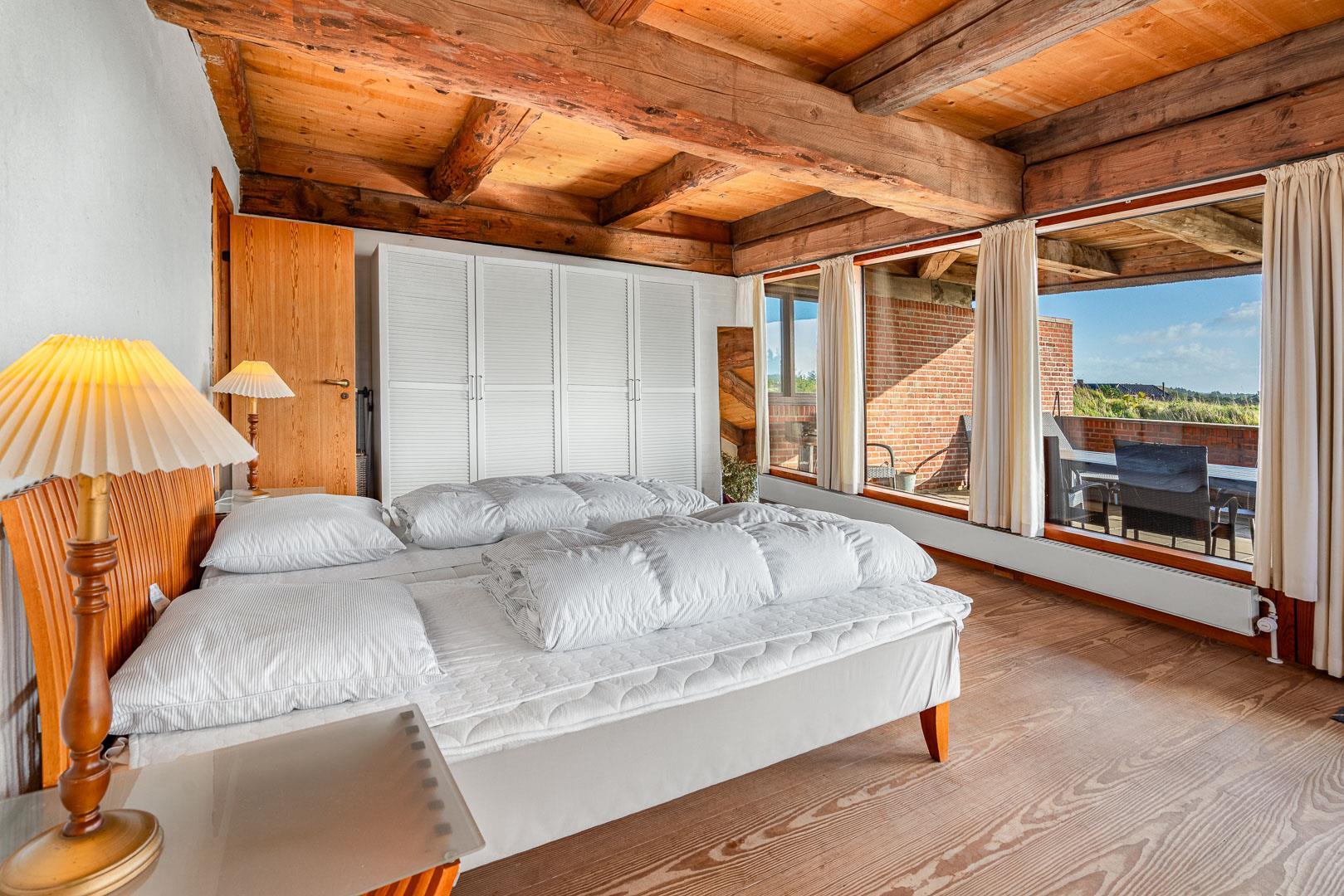 Dieses einzigartige Luxusferienhaus liegt auf einer Düne mit fantastischer Panoramaaussicht über Henne Strand und Blåbjerg Plantage. Im Erdgeschoss gibt es eine große tolle Küche (2017), die in offener Verbindung zur Stube liegt, die mit guten Möbeln ausgestattet ist. Es gibt ein großes Master Schlafzimmer mit eigenem Badezimmer mit Dusche und Ausgang zur schönen überdachten Terrasse. Auf der 1.Etage hat man ein schönes Badezimmer mit Whirlpool und eine große Stube mit Sicht zum Wasser, die eingerichtet ist mit schönen Möbeln, Billardtisch und Tischfußball. Auf der 1.Etage befinden sich auch die restlichen Schlafzimmer, die alle sehr geräumig sind und gute Betten haben. Es gibt mehrere fantastische Terrassen, wo man die Ruhe, Sonne und super Aussicht genießen kann. Ein Ferienhaus, das in der Lage und Ausstattung sehr selten ist.