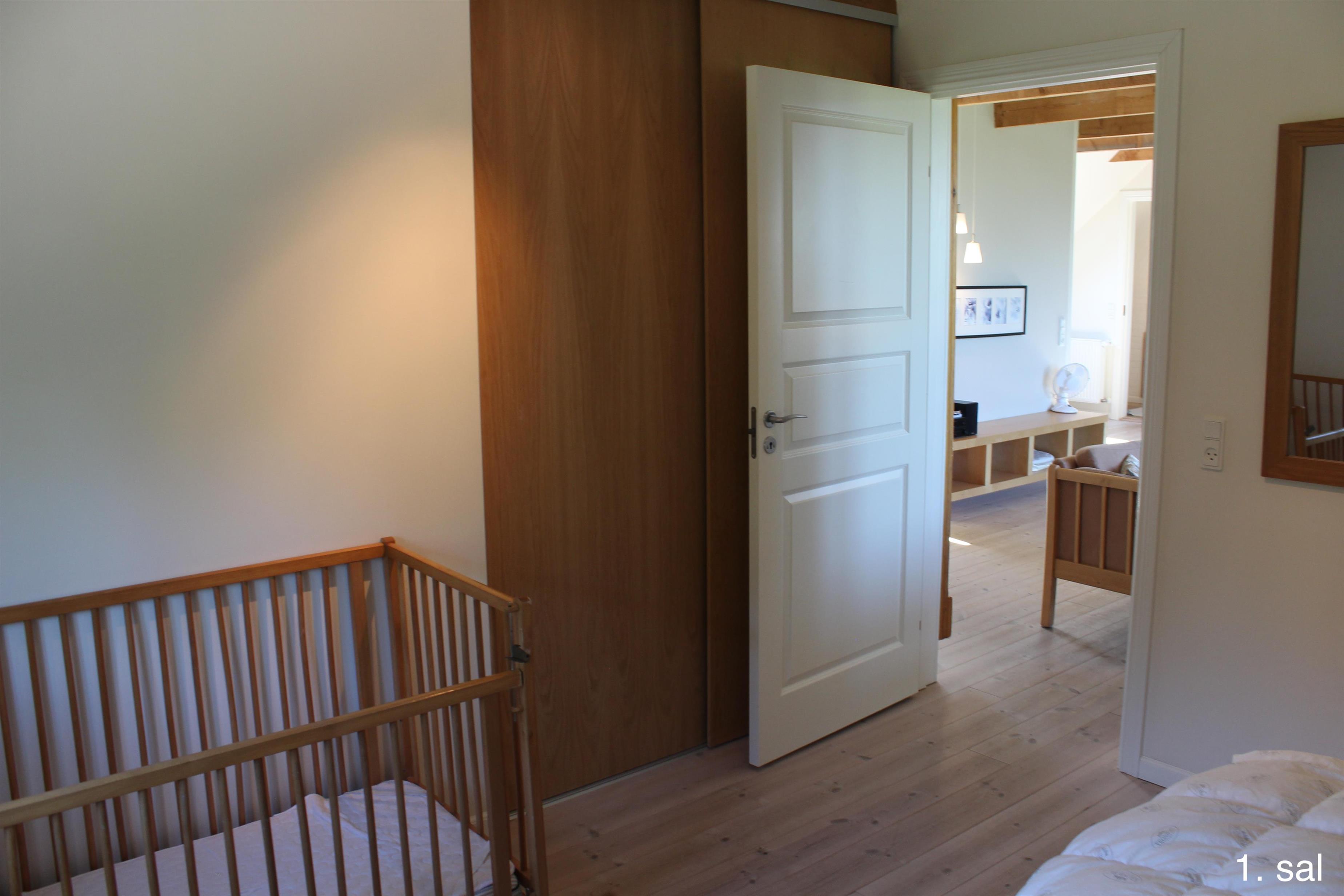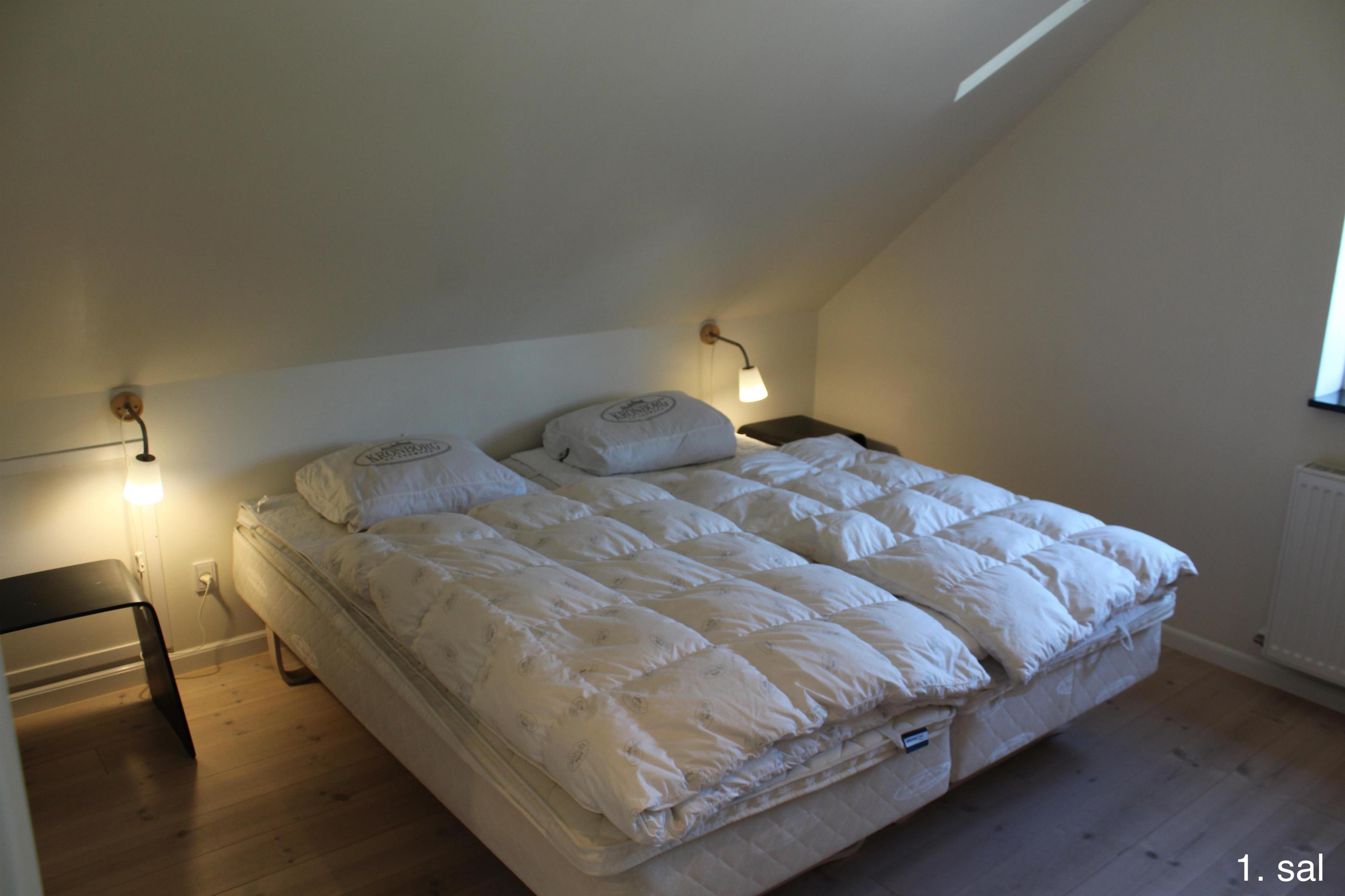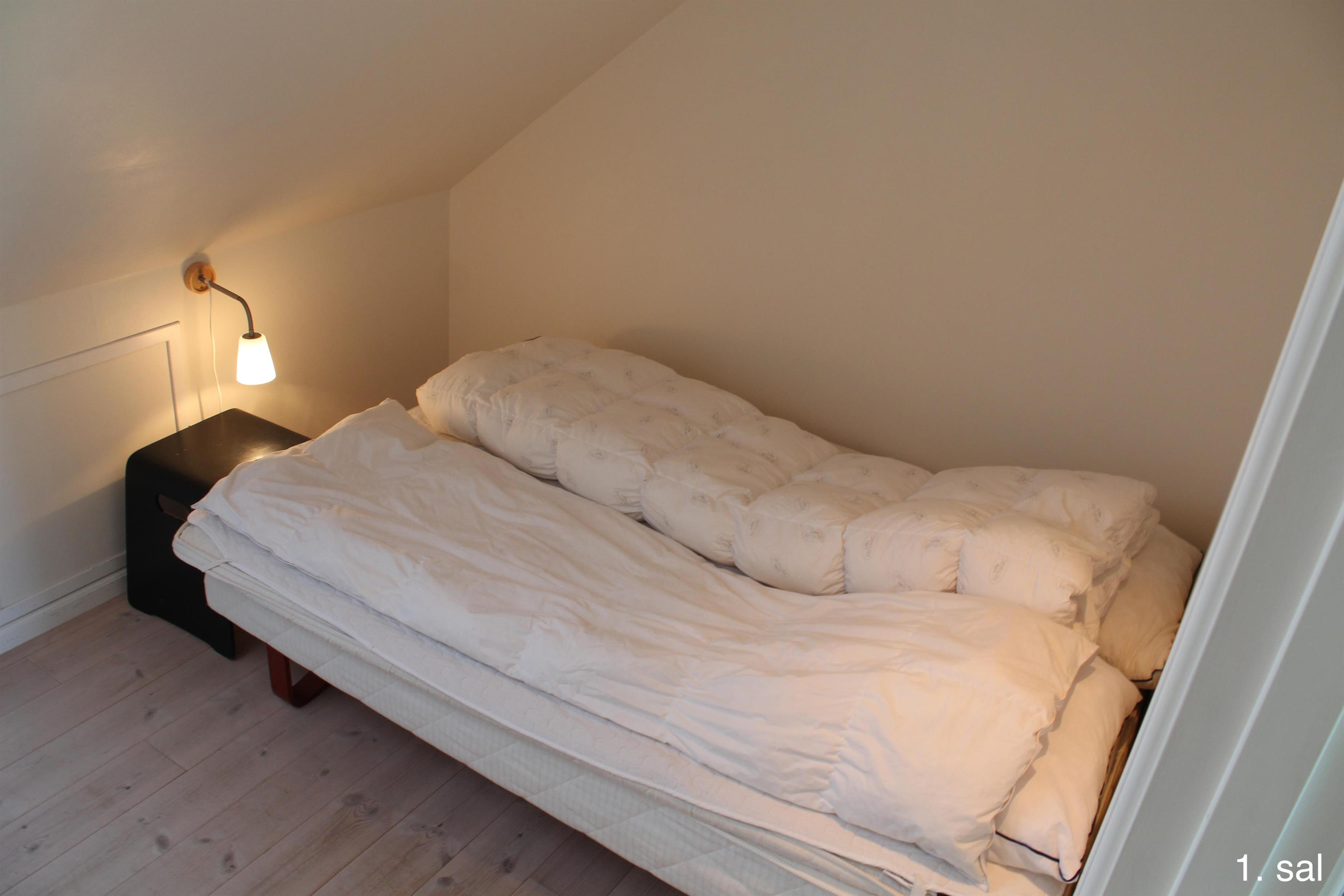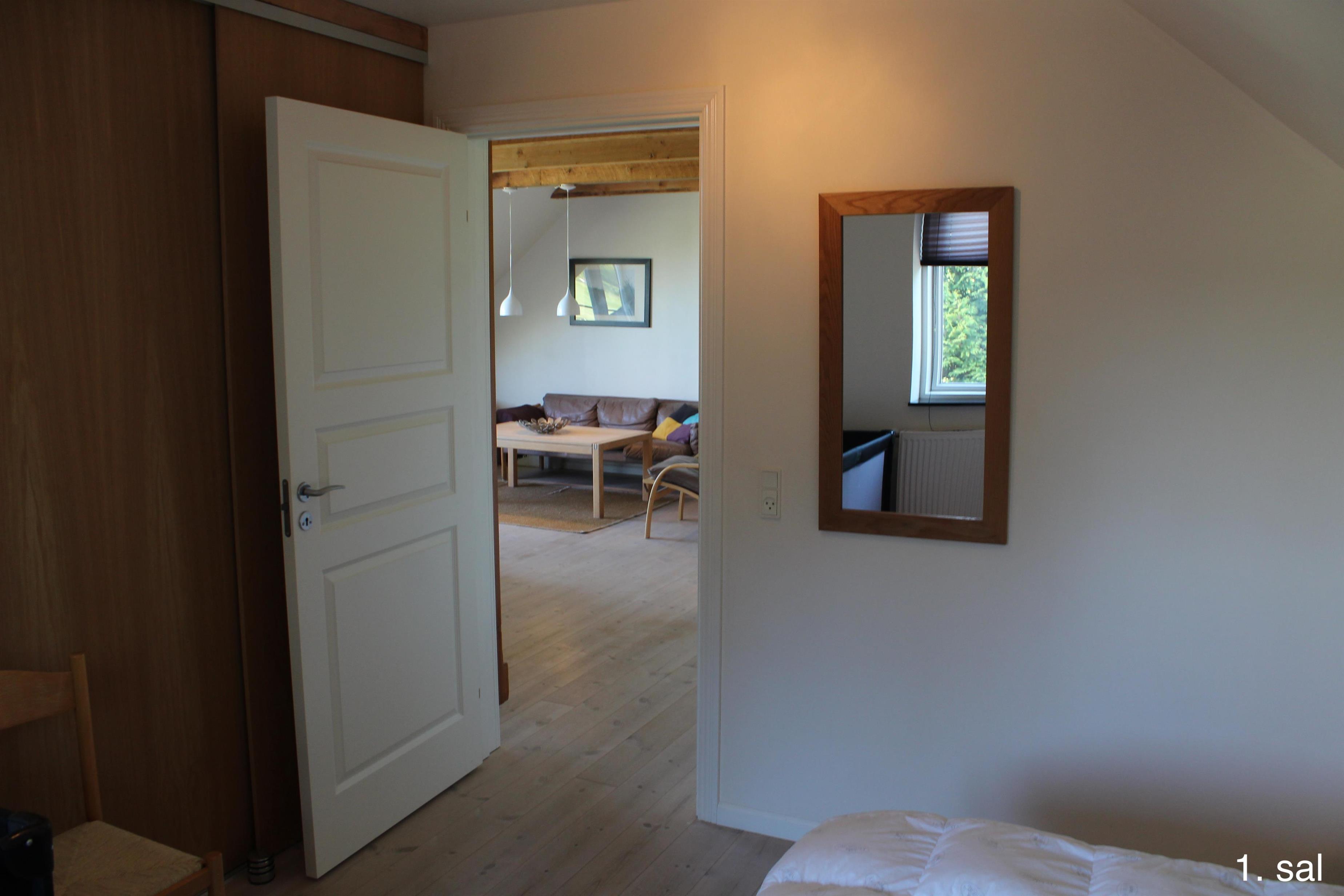 Im 1. Stock des Haupthauses befinden sich 2 Apartments mit 5 Doppelzimmern und 2 ausgebauten Dachböden mit insgesamt 8 Schlafplätzen sowie einem Badezimmer. Von beiden Wohnungen aus haben Sie Zugang zu einem kleinen Balkon mit Aussicht über den Filsø-See.